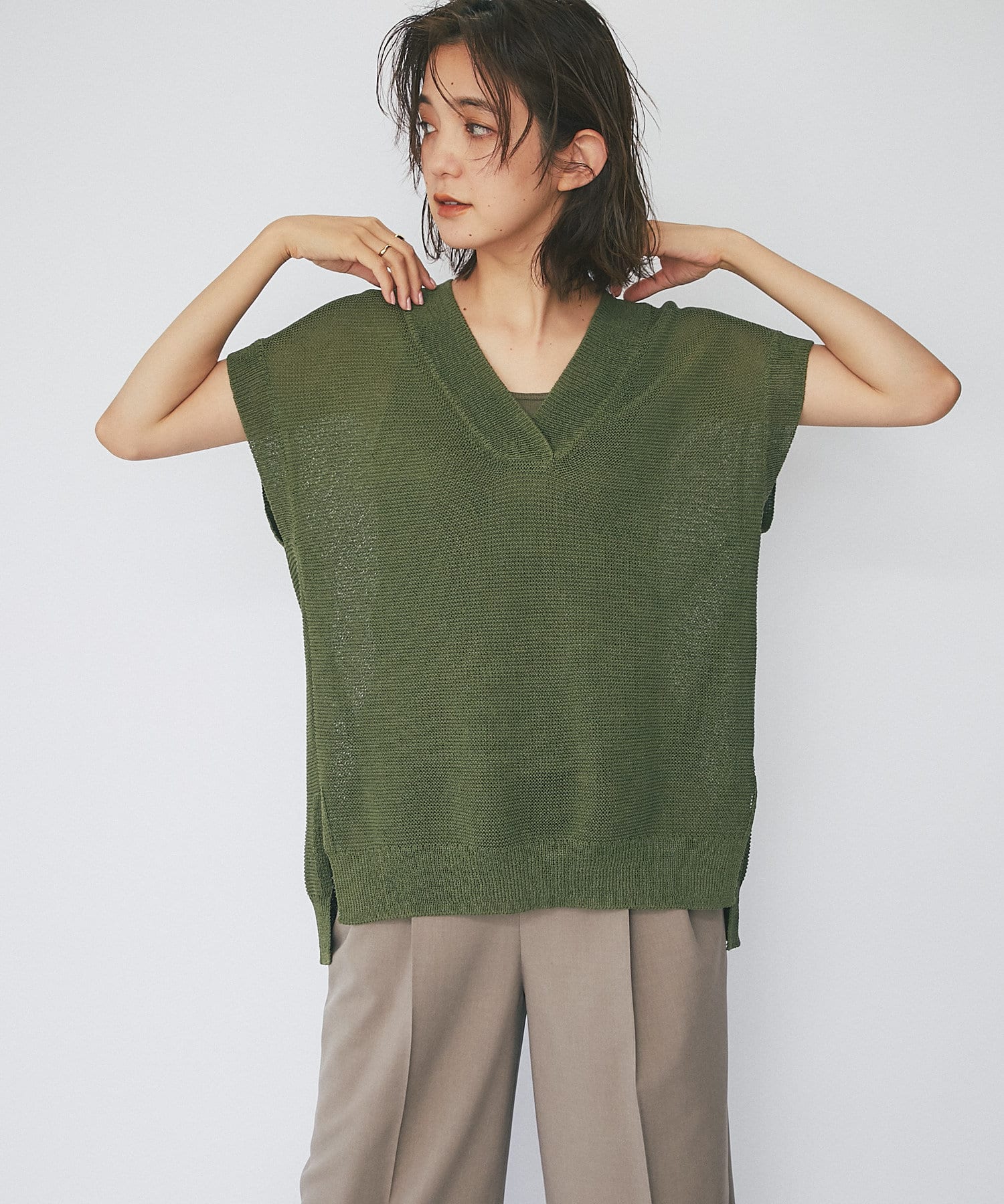 【緩さのあるシルエットが魅力】ペーパーヤーンオーバーフレンチニット