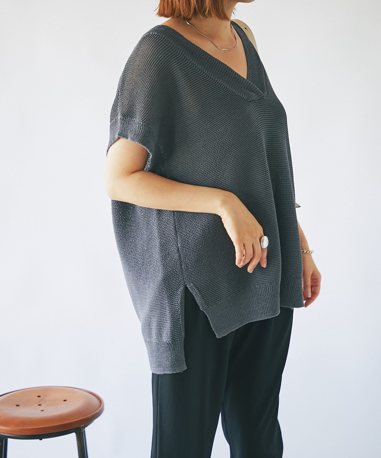 ぺーパーヤーンを使用したシャリ感のある独特な風合いで軽やかさがグッとUPします。