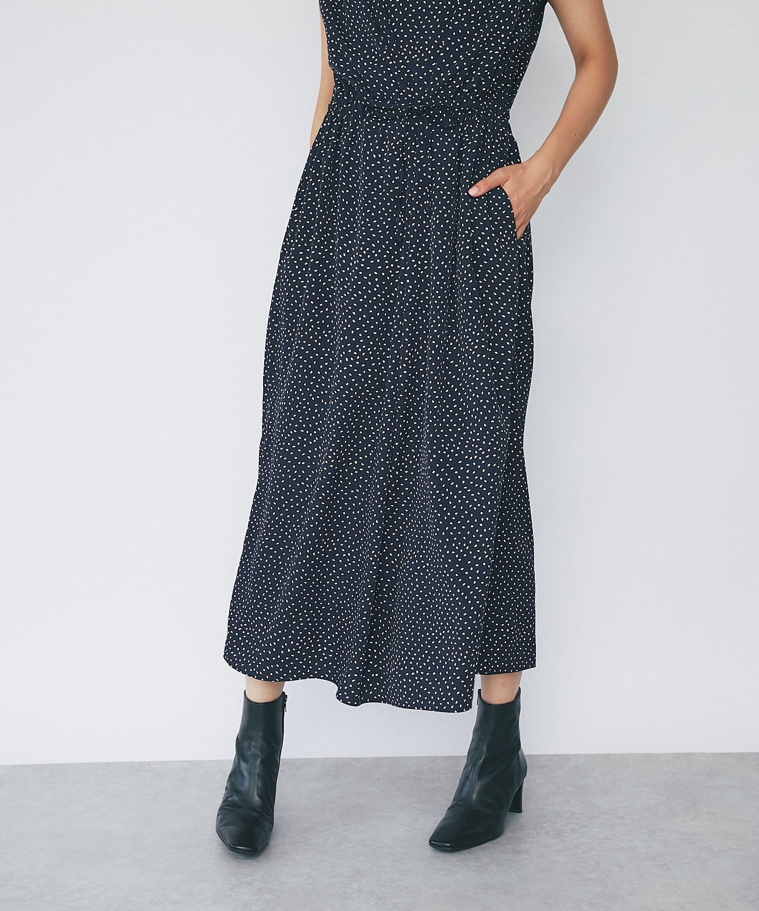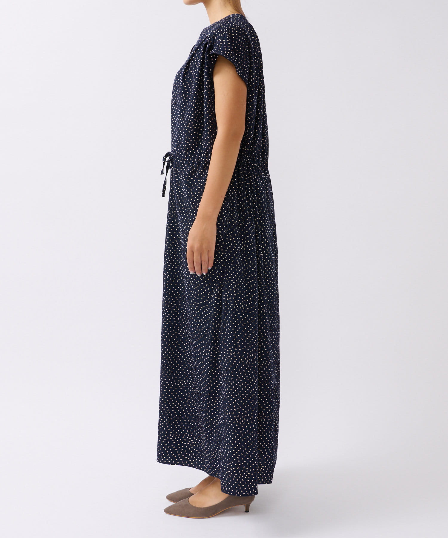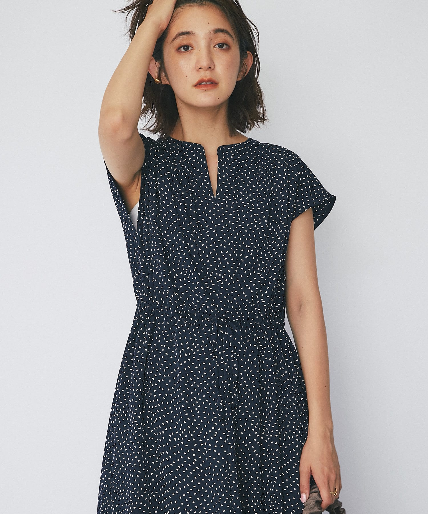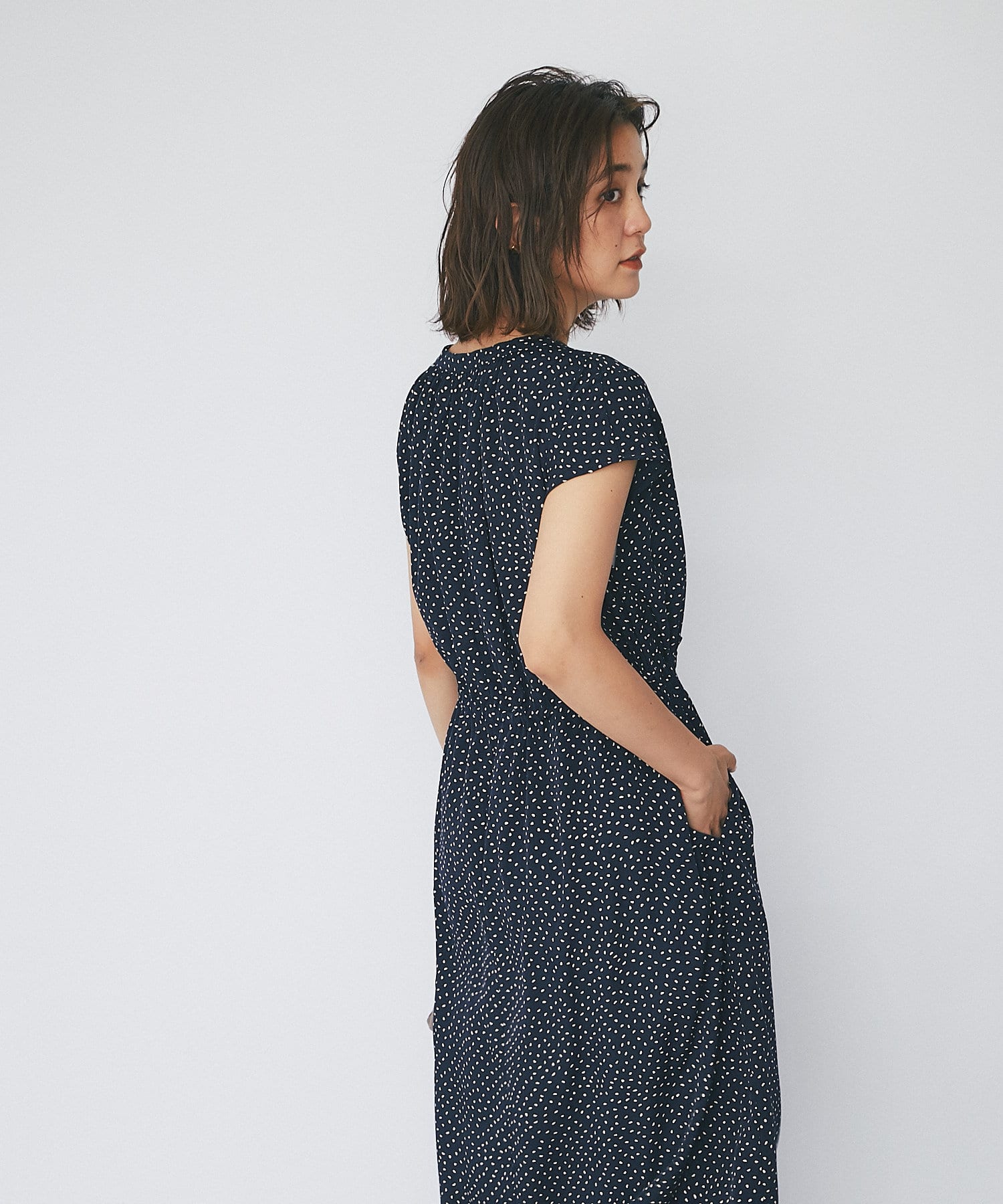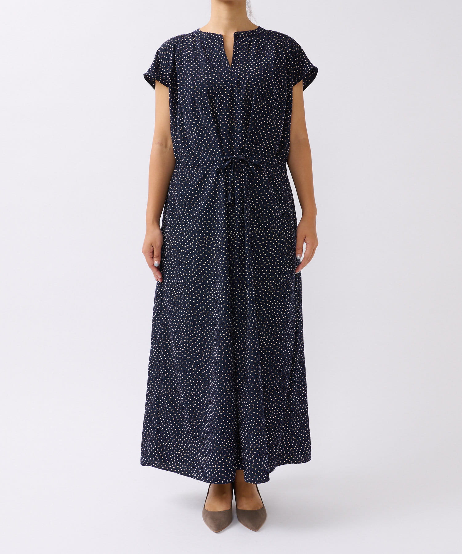 細かく散りばめられたドットがさりげなくクラシカルな印象の上品ワンピース。