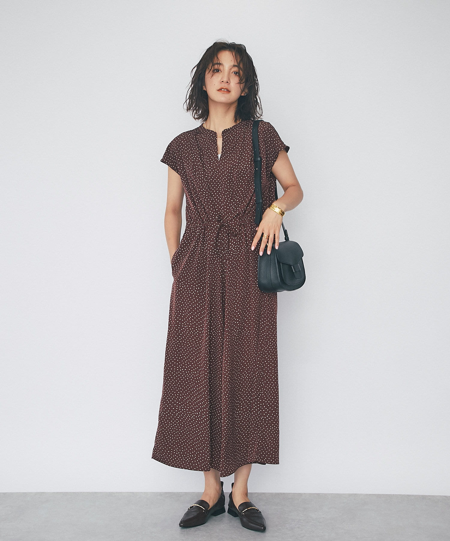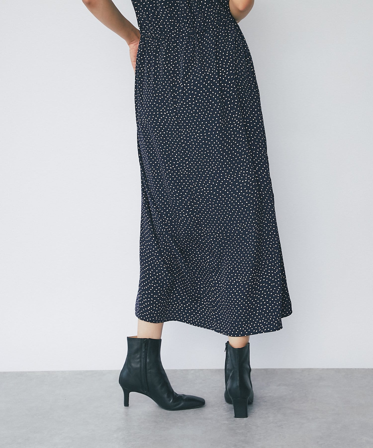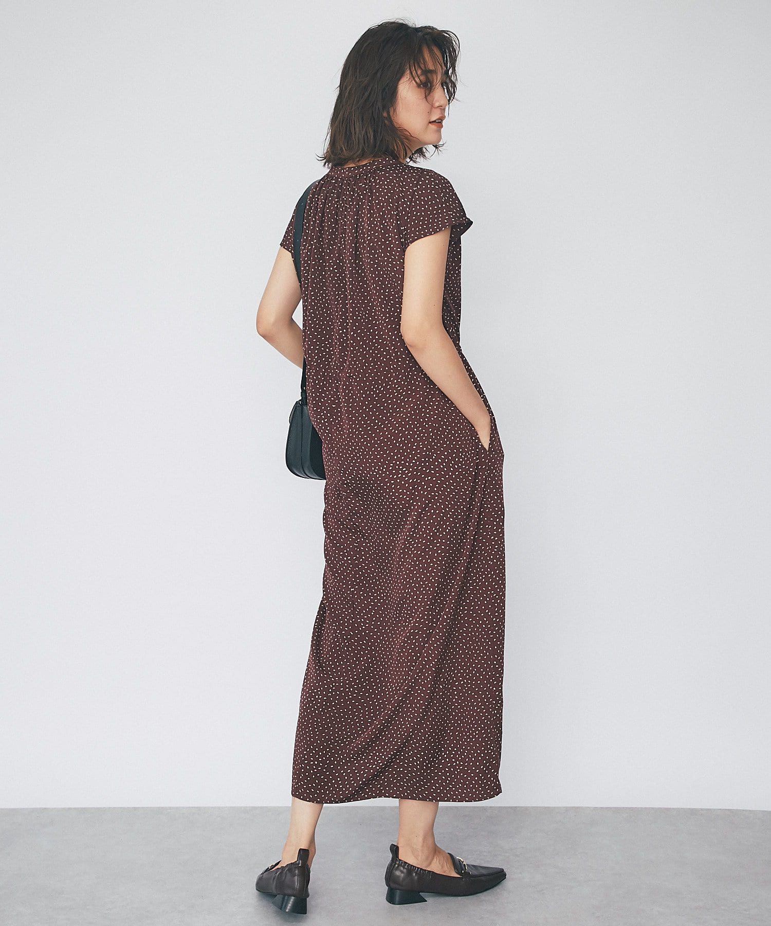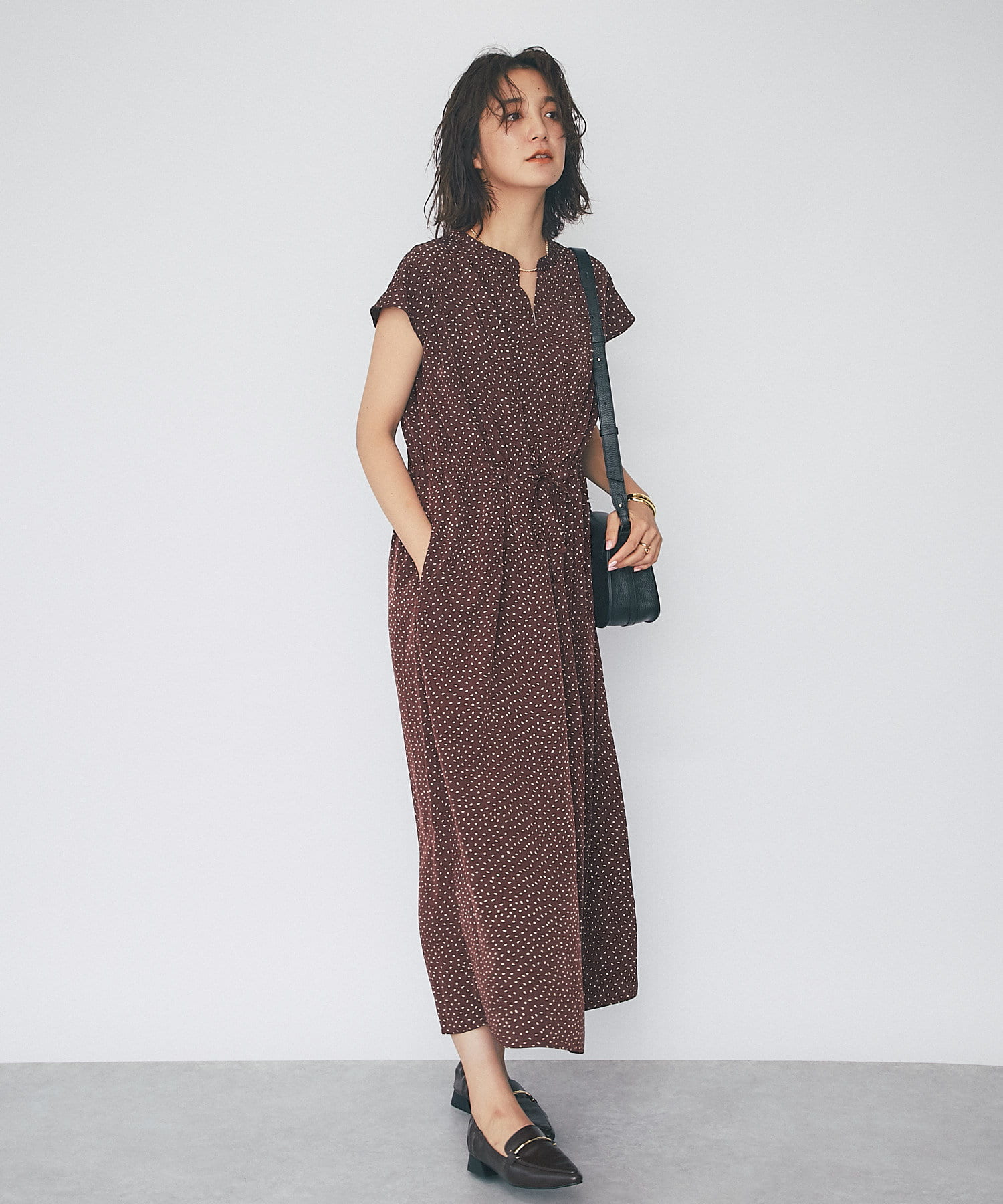 細かく散りばめられたドットがさりげなくクラシカルな印象の上品ワンピース。