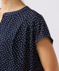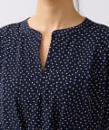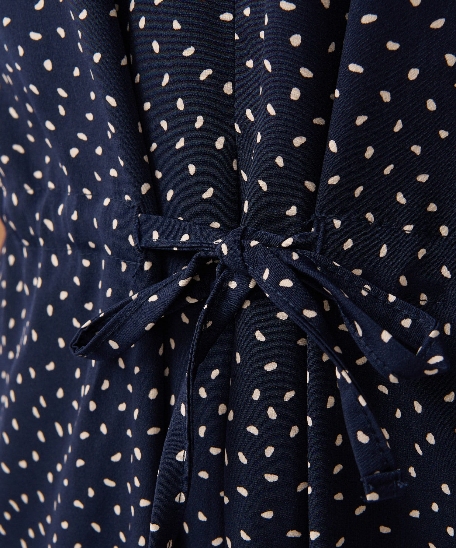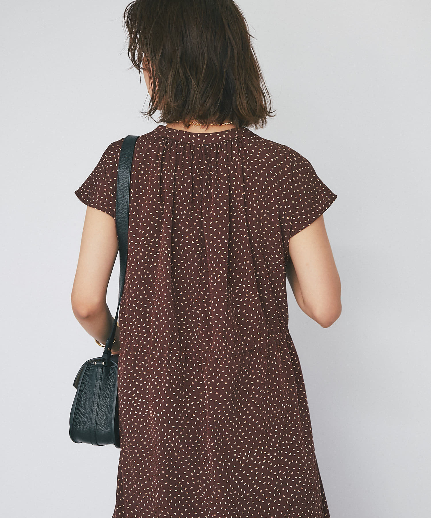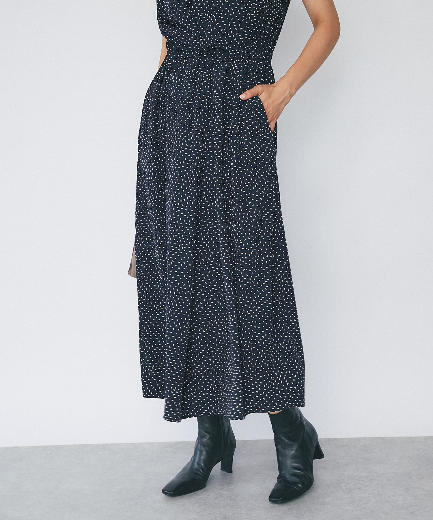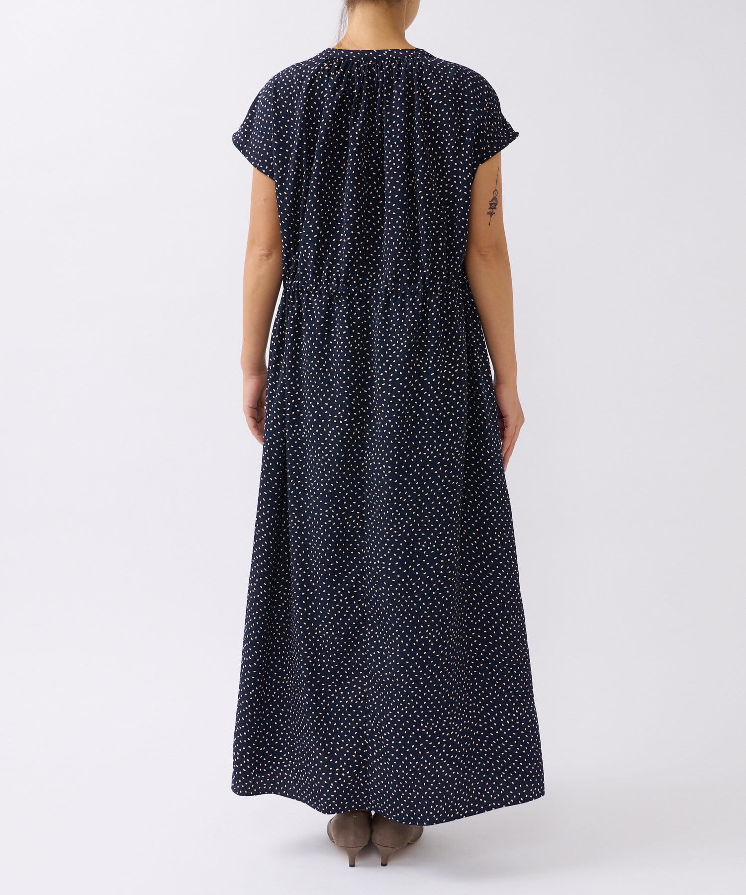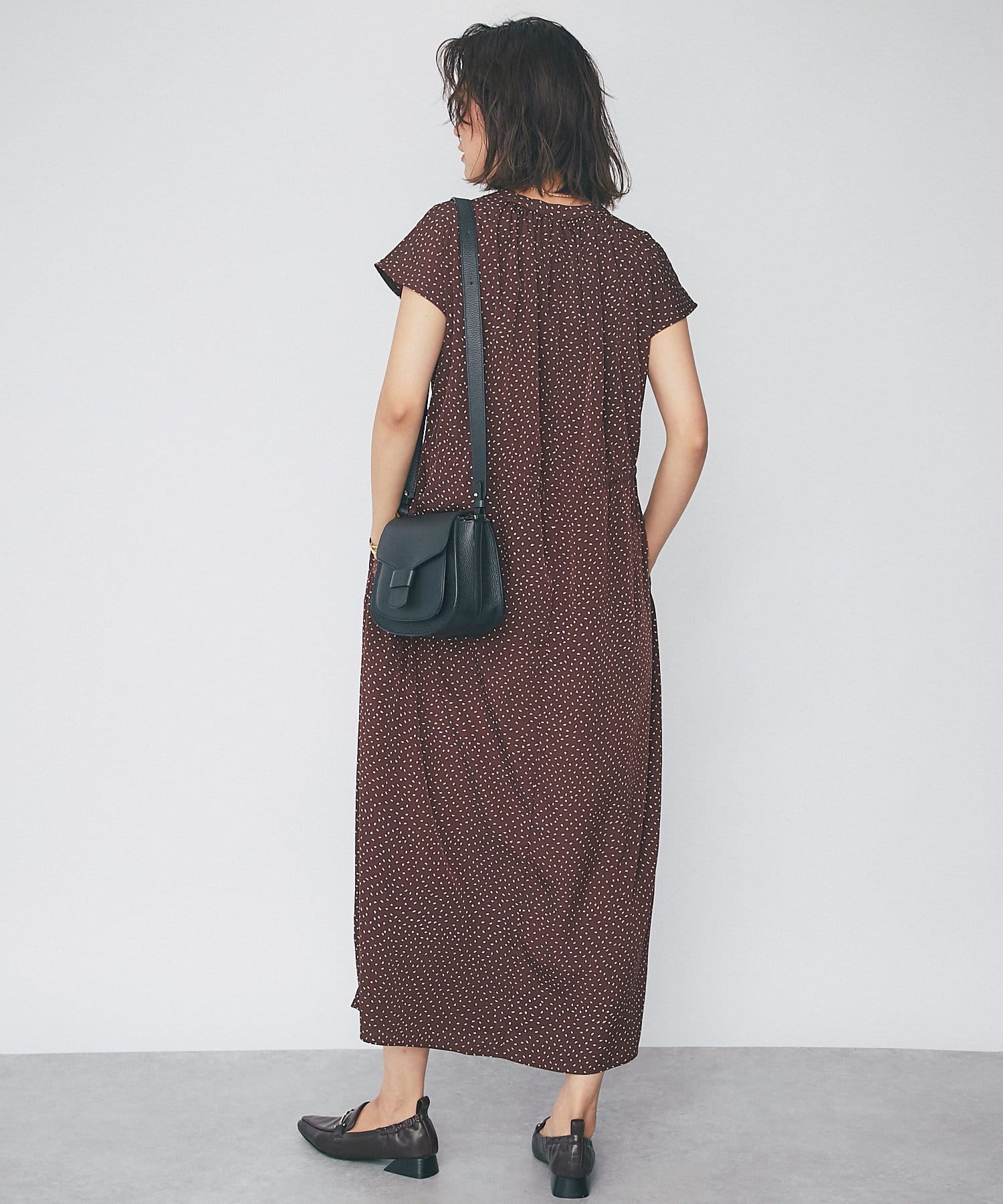 細かく散りばめられたドットがさりげなくクラシカルな印象の上品ワンピース。