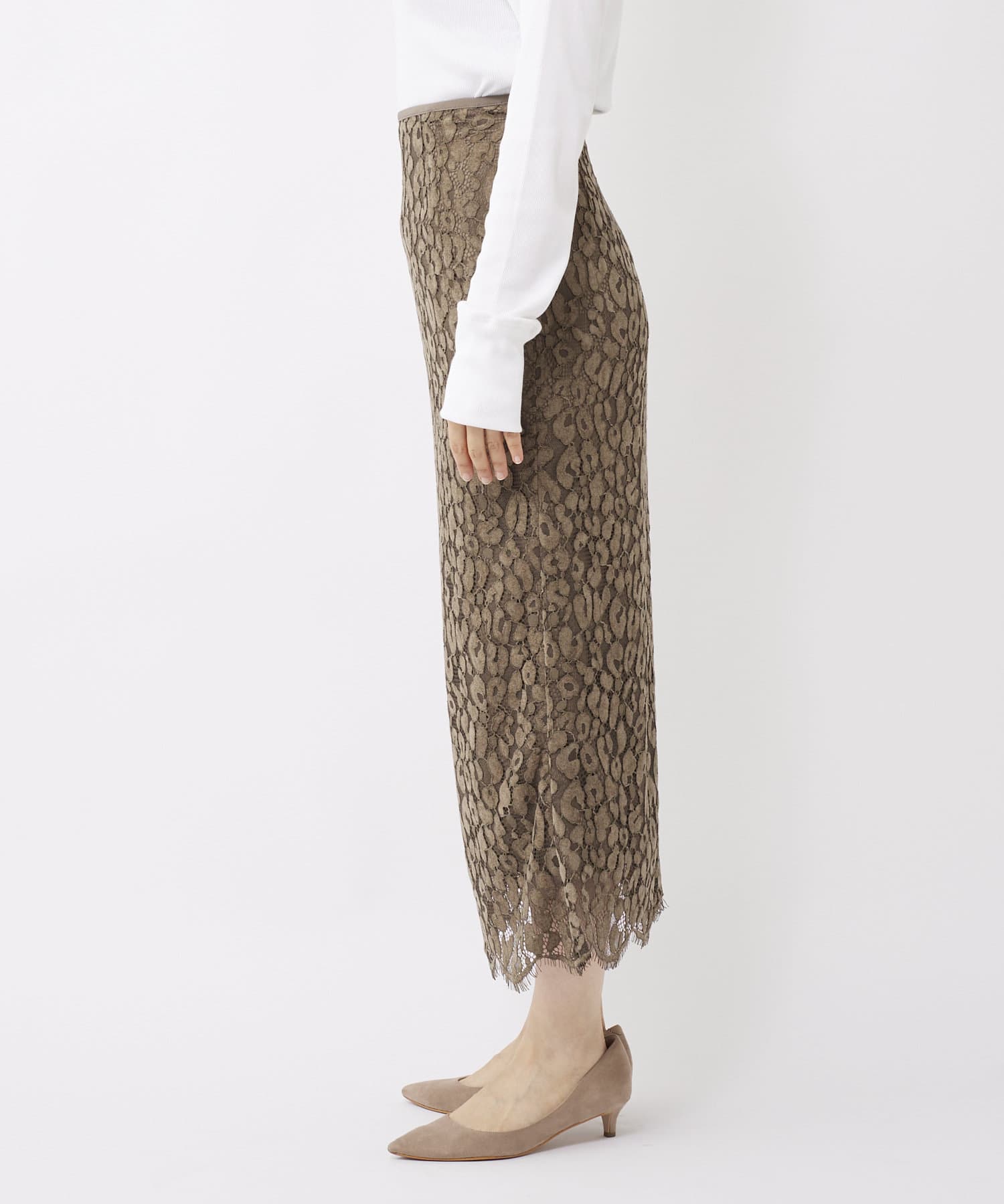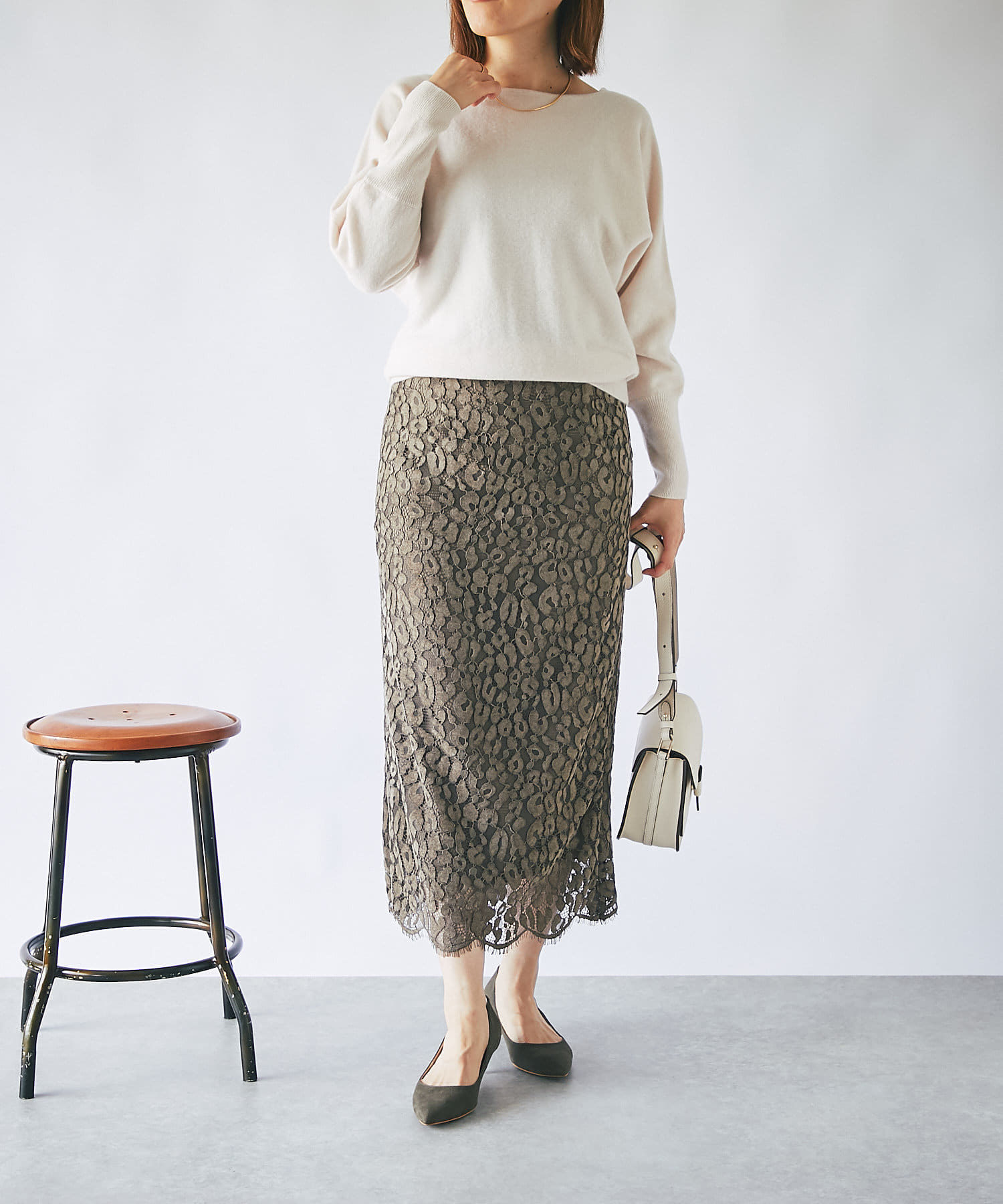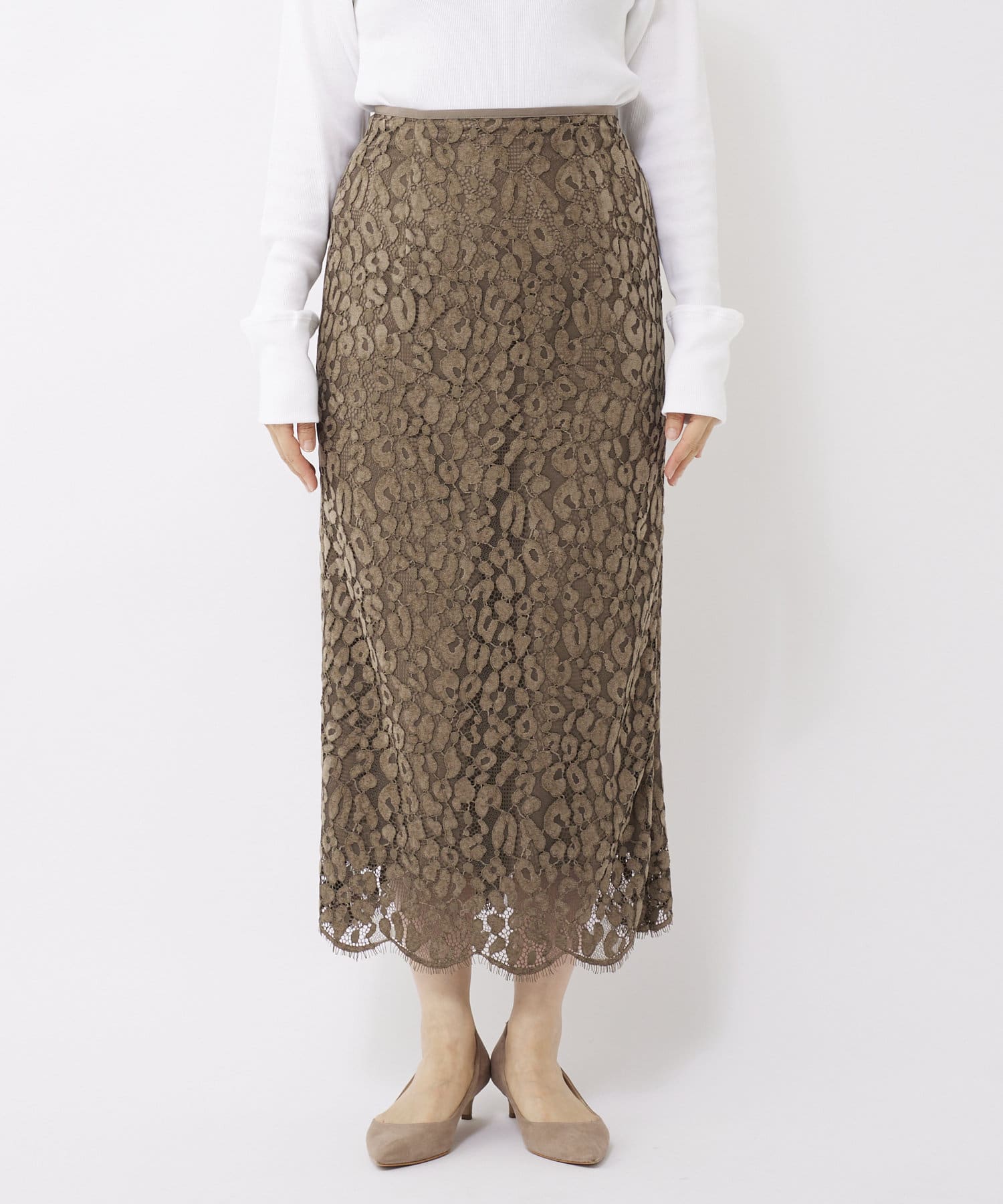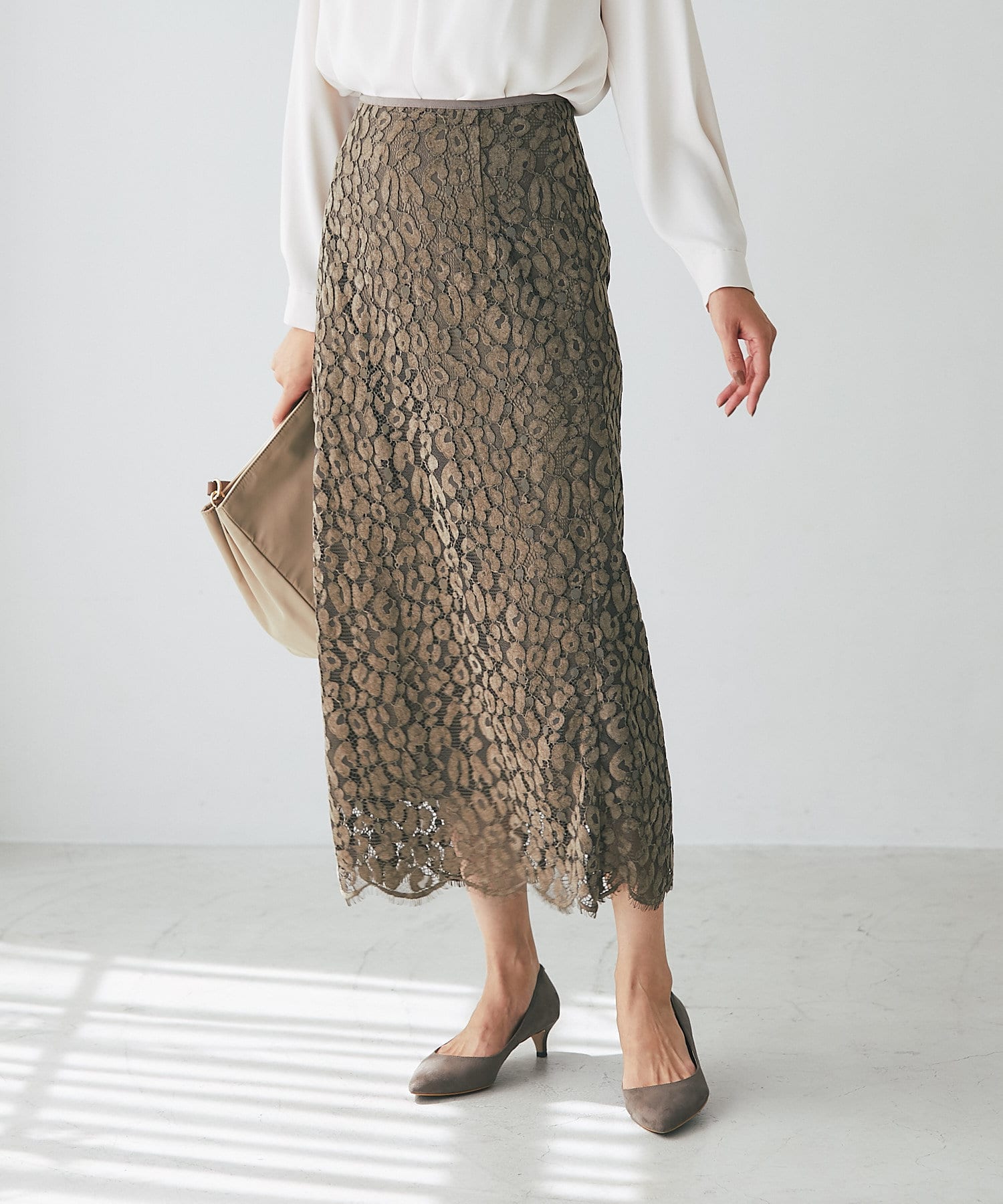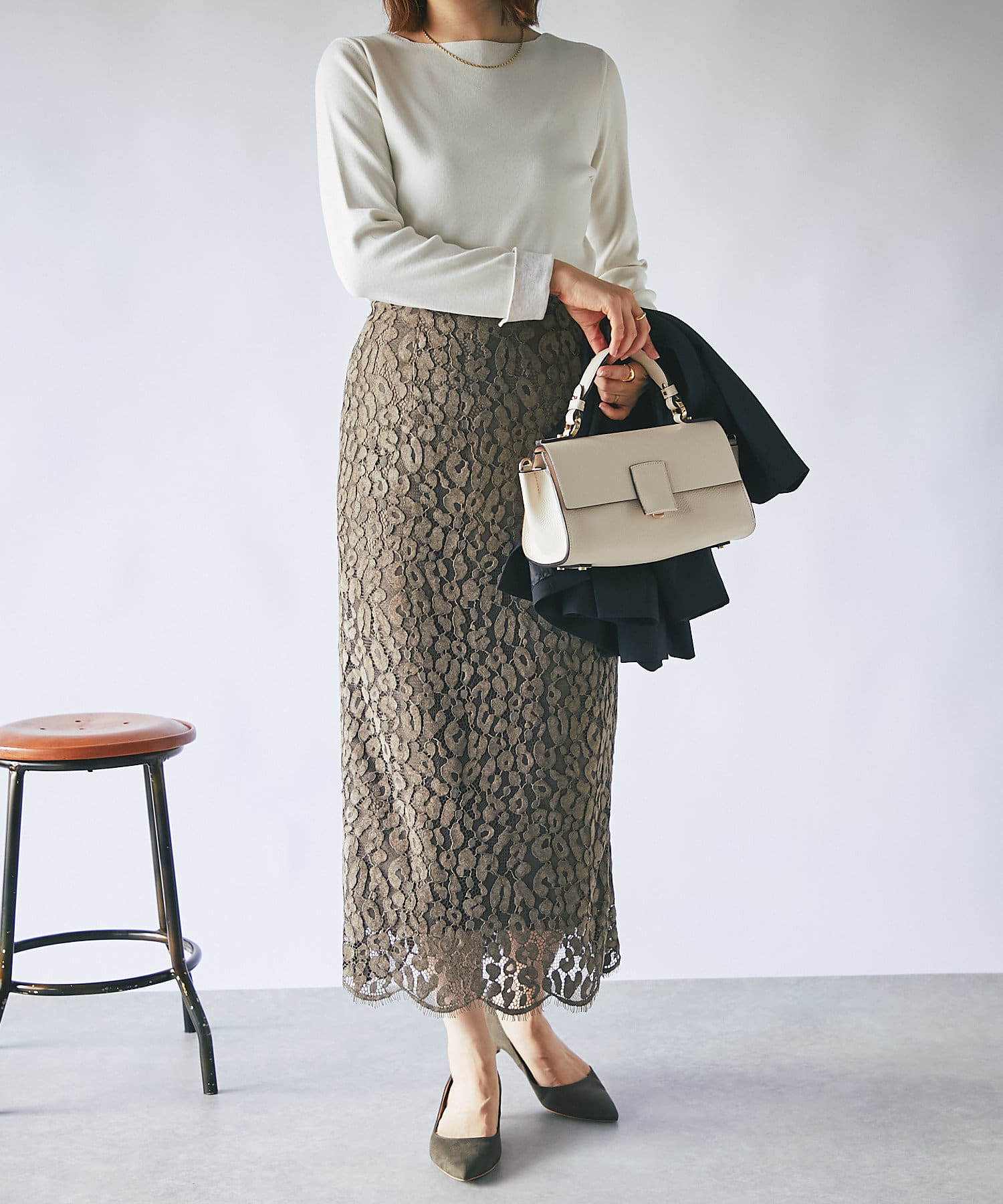 一枚で着映えするレース使いが品のあるエレガントさを演出してくれるタイトスカート。