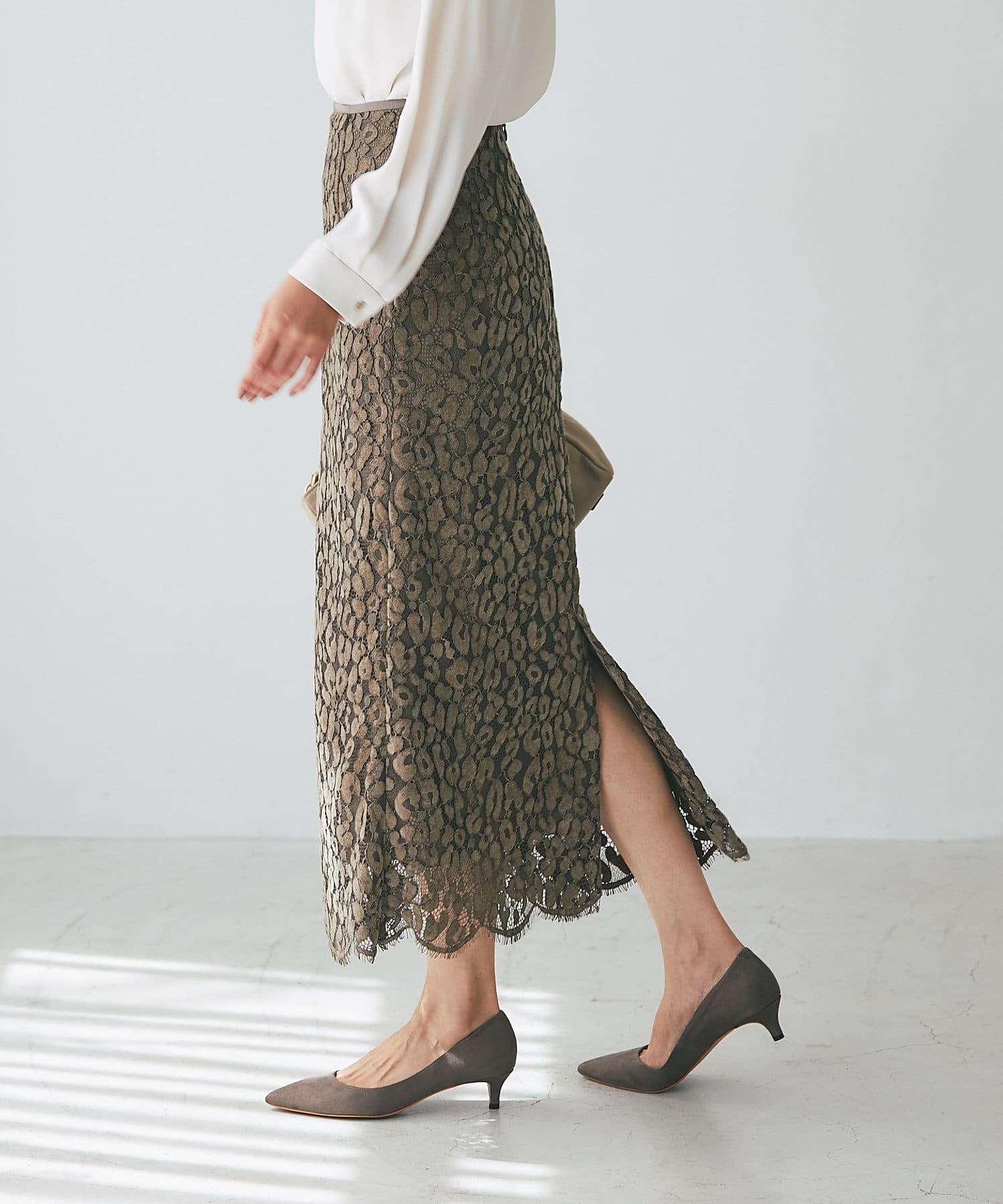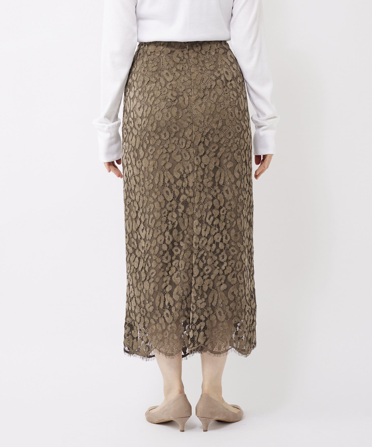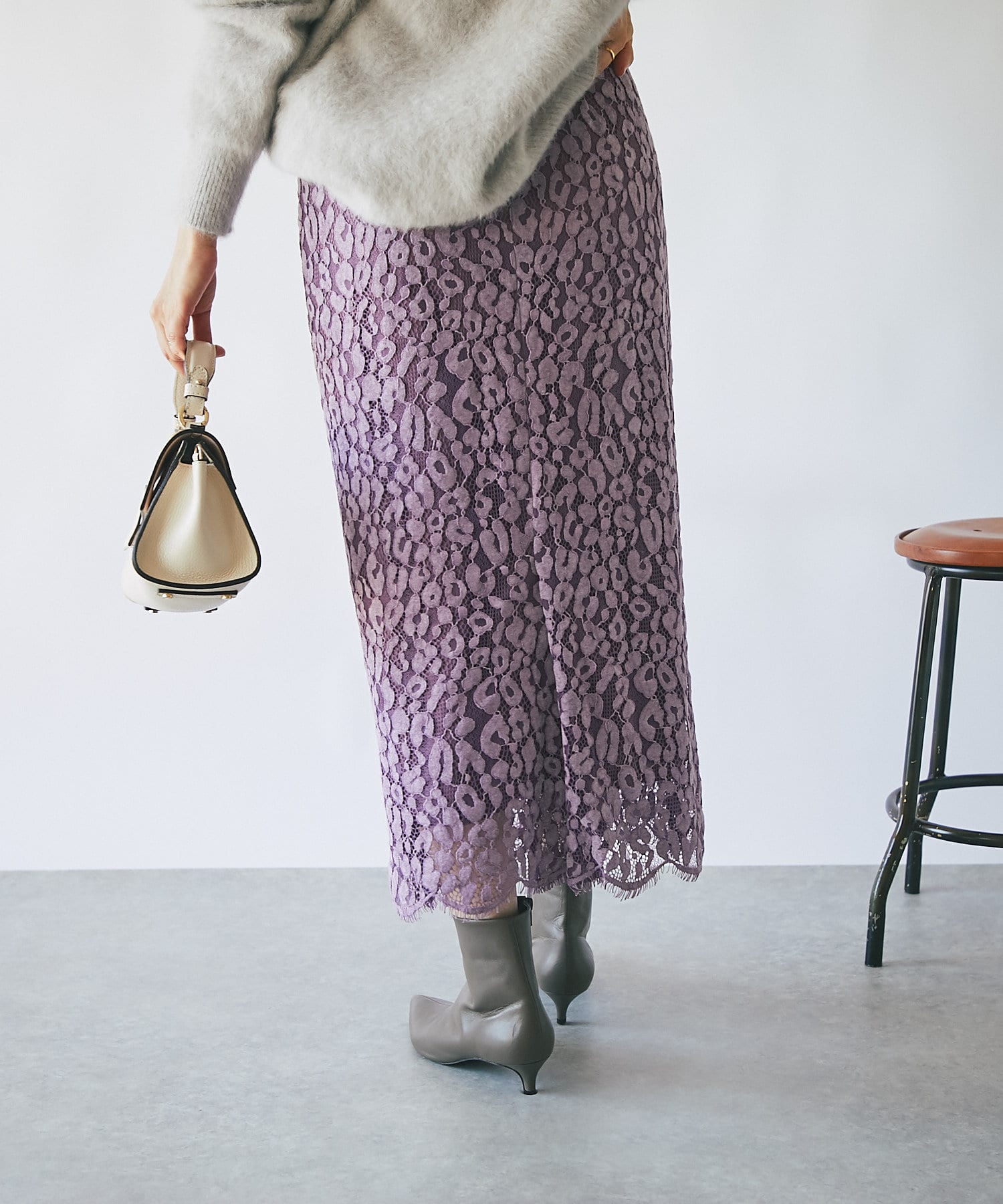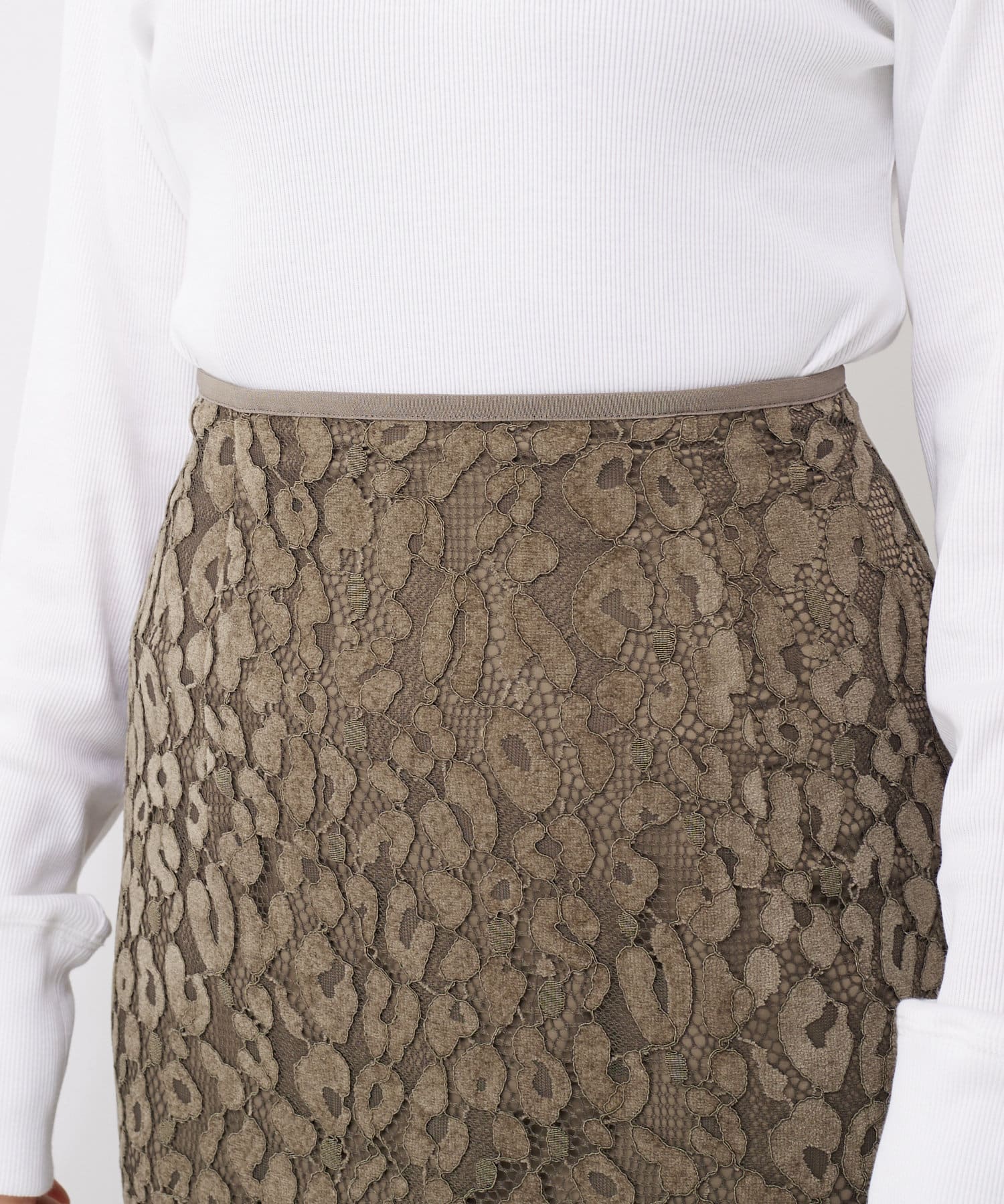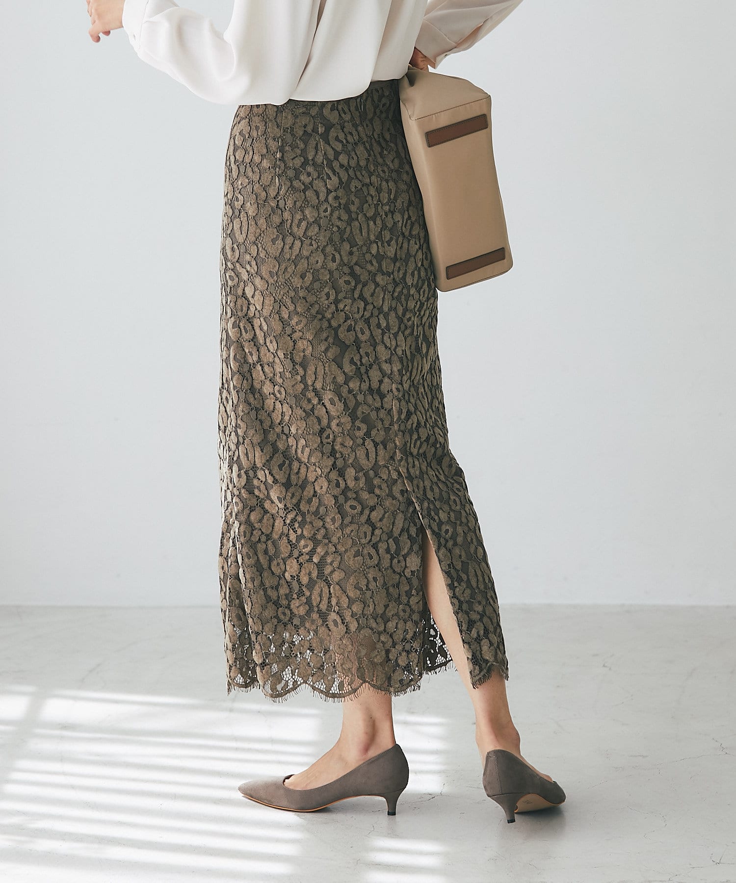 一枚で着映えするレース使いが品のあるエレガントさを演出してくれるタイトスカート。