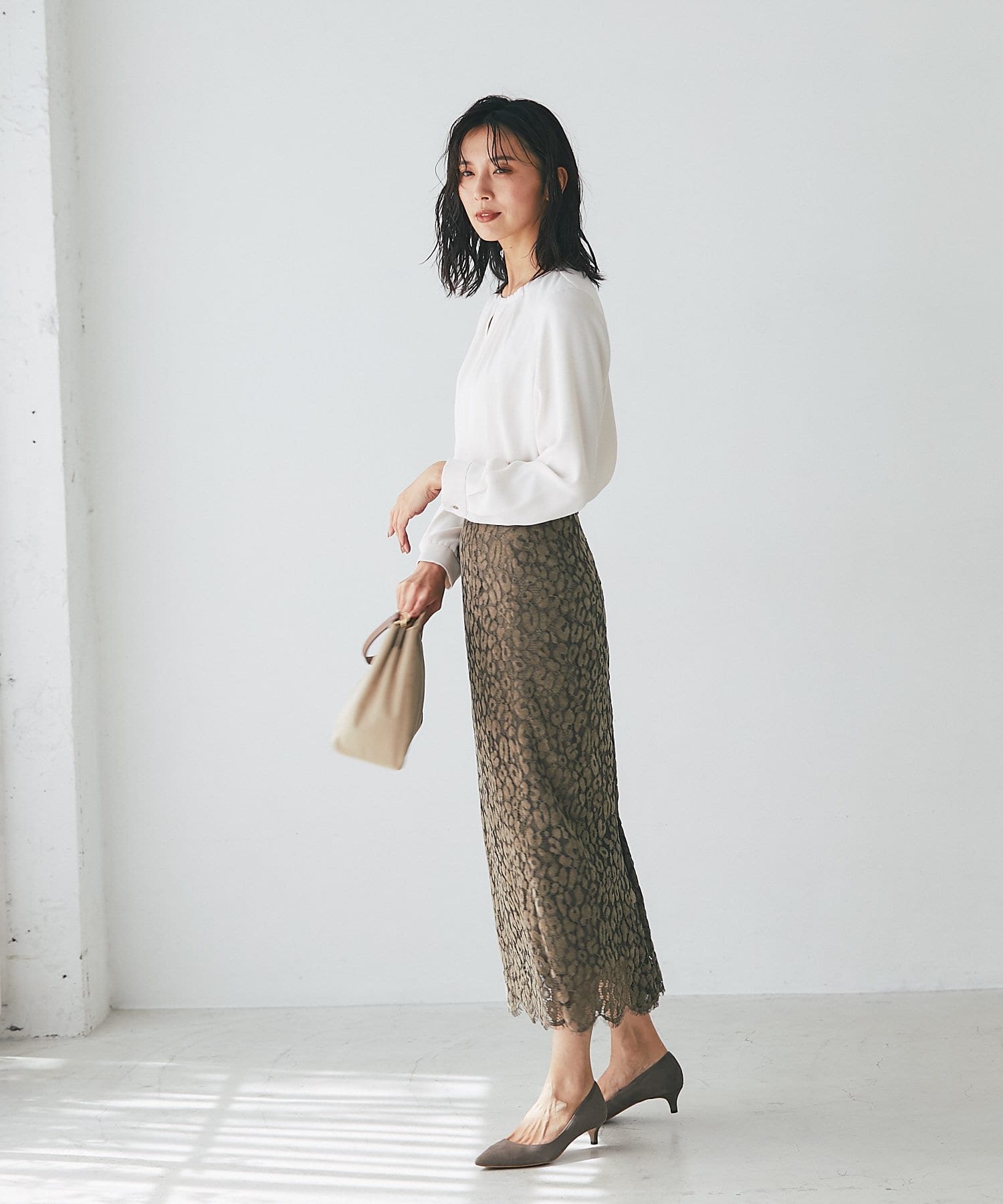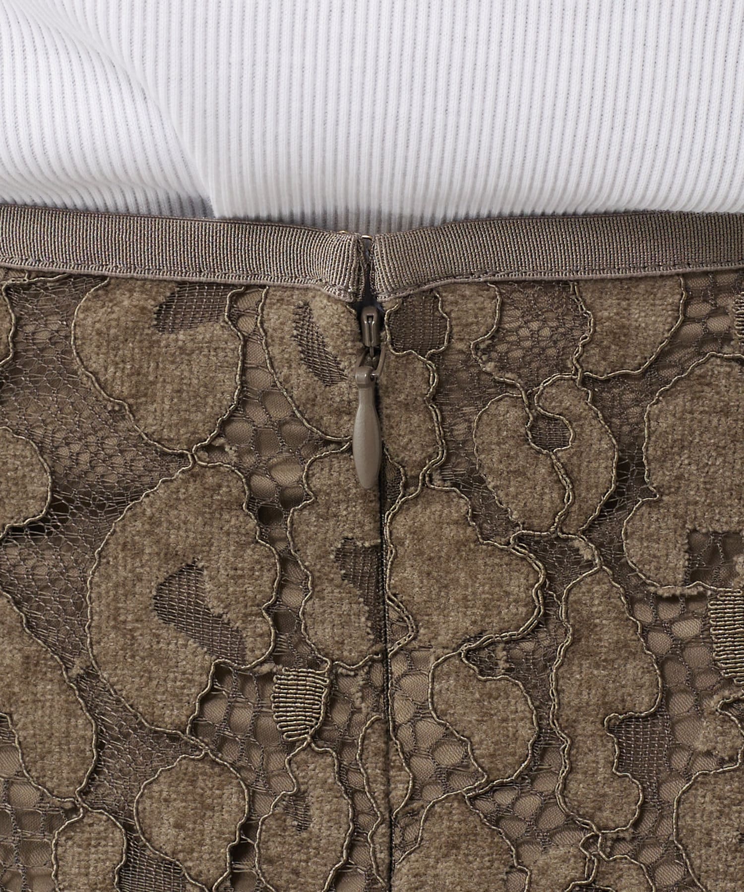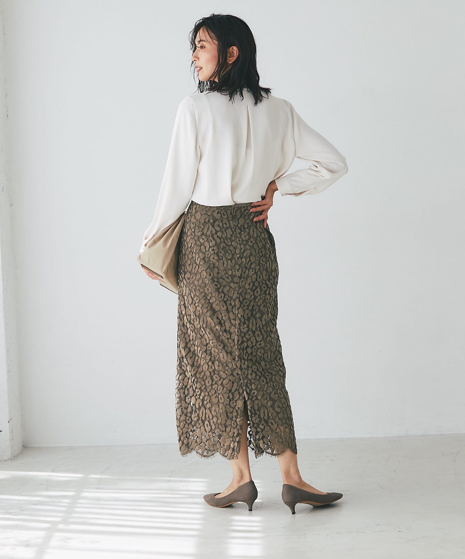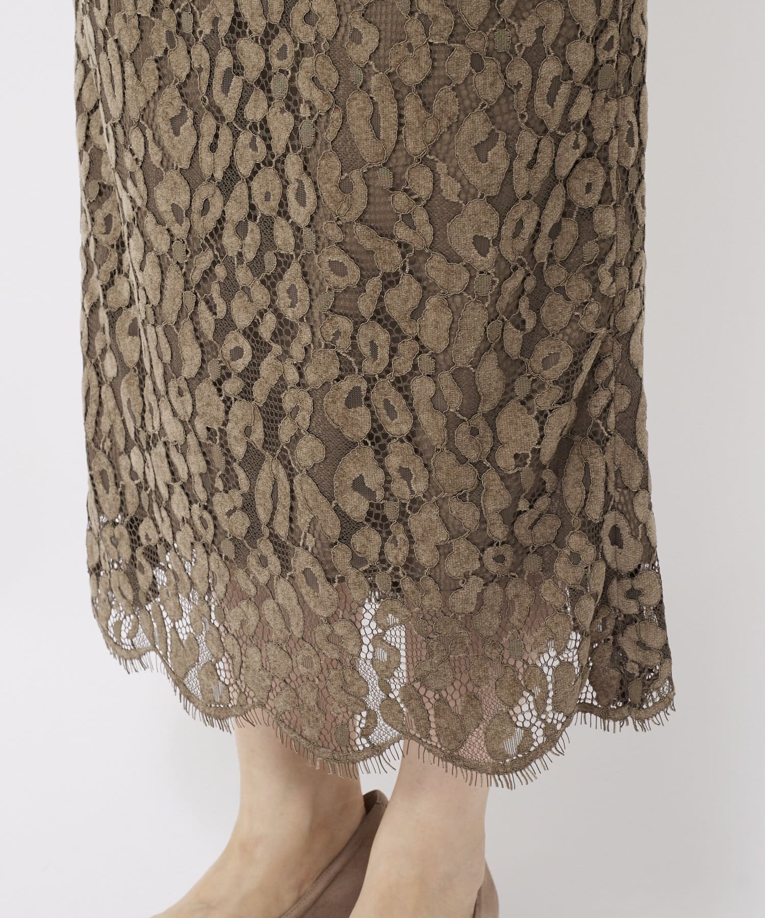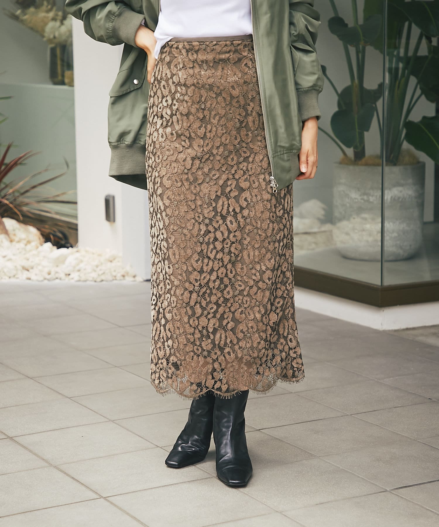 一枚で着映えするレース使いが品のあるエレガントさを演出してくれるタイトスカート。
