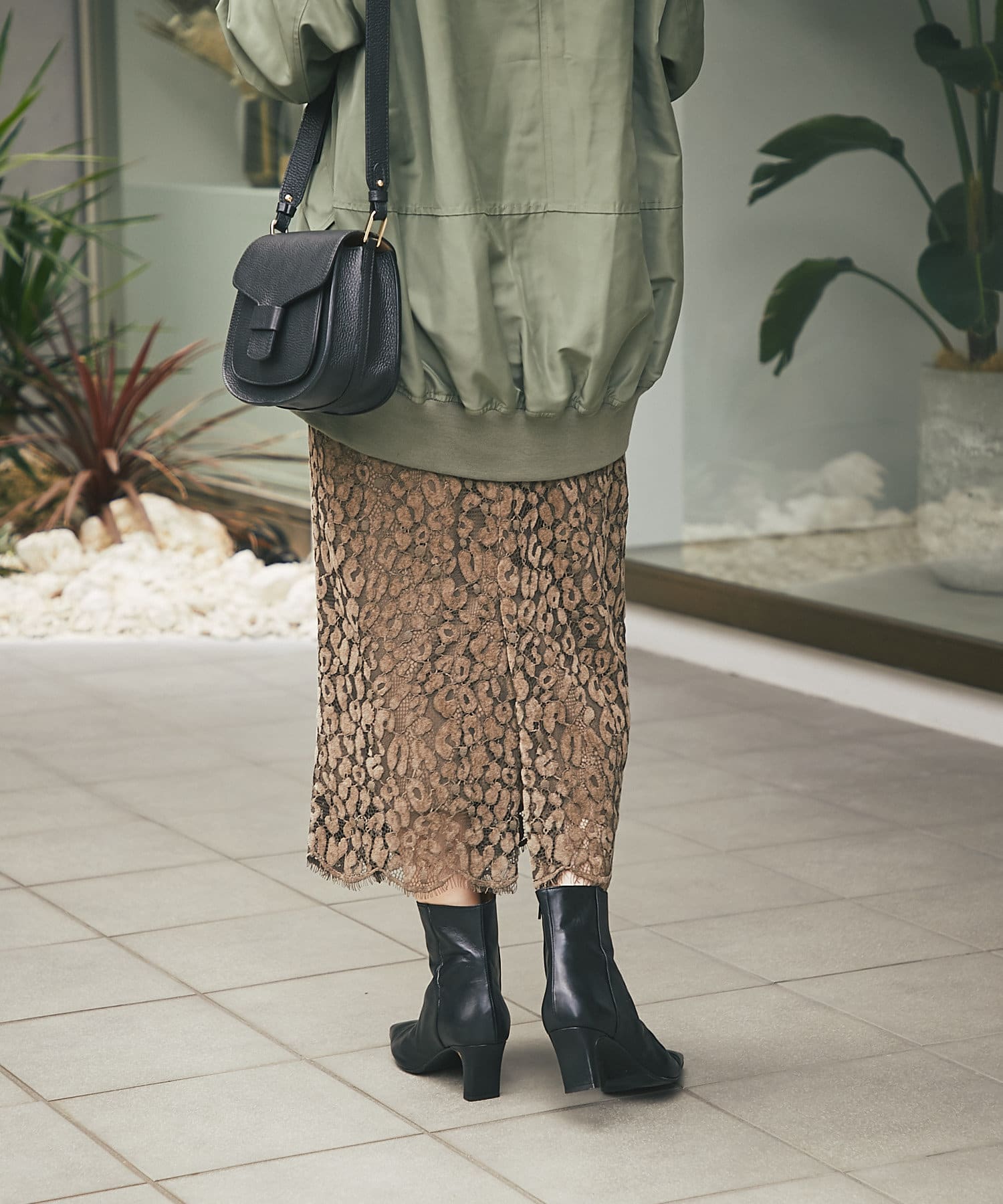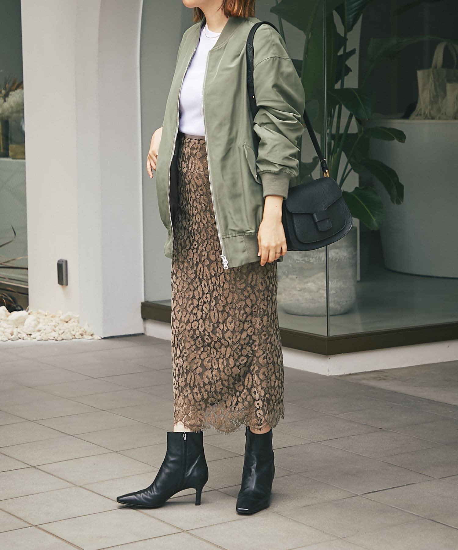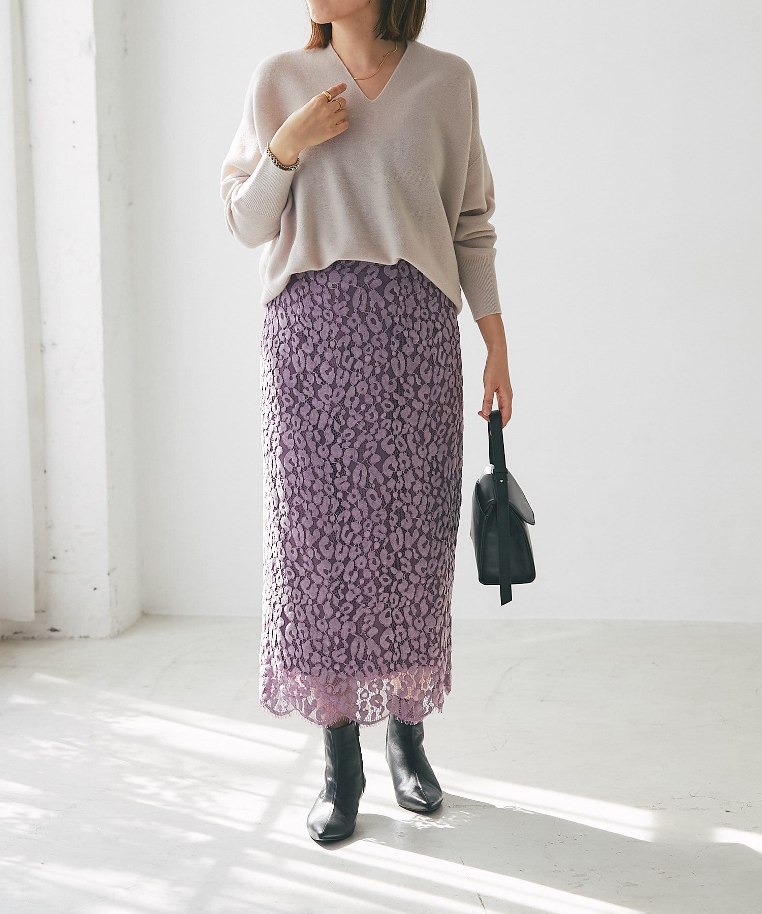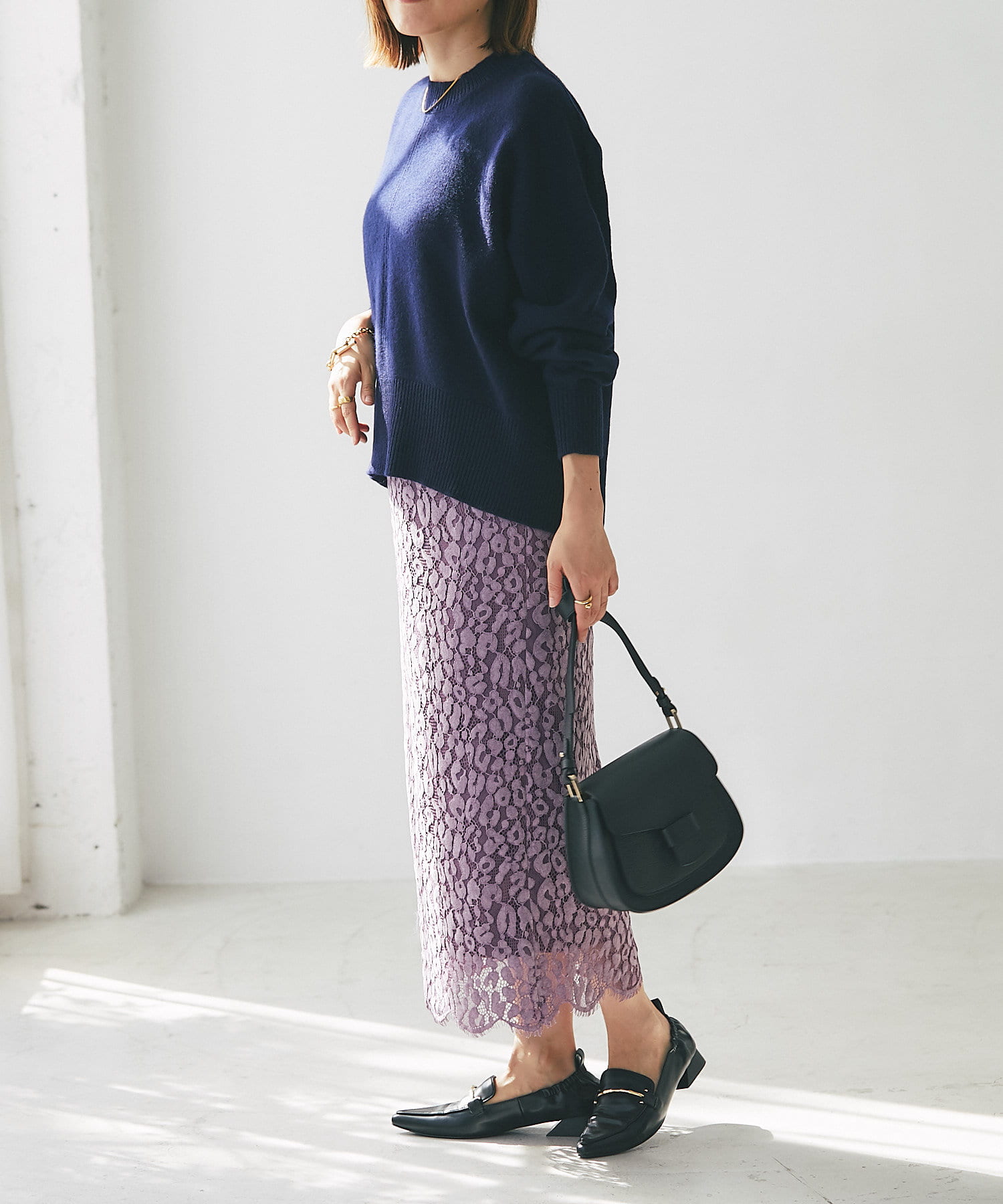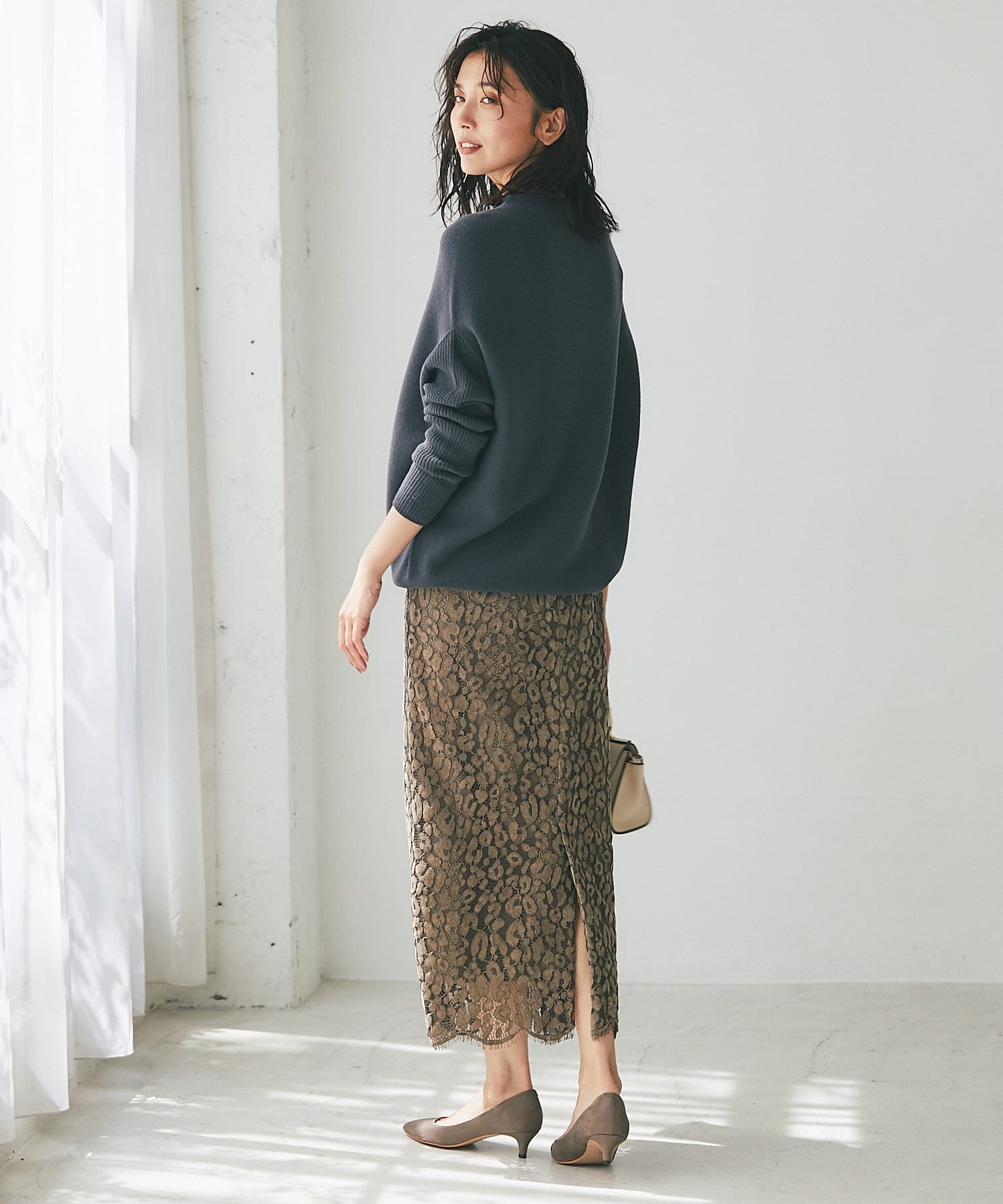 一枚で着映えするレース使いが品のあるエレガントさを演出してくれるタイトスカート。