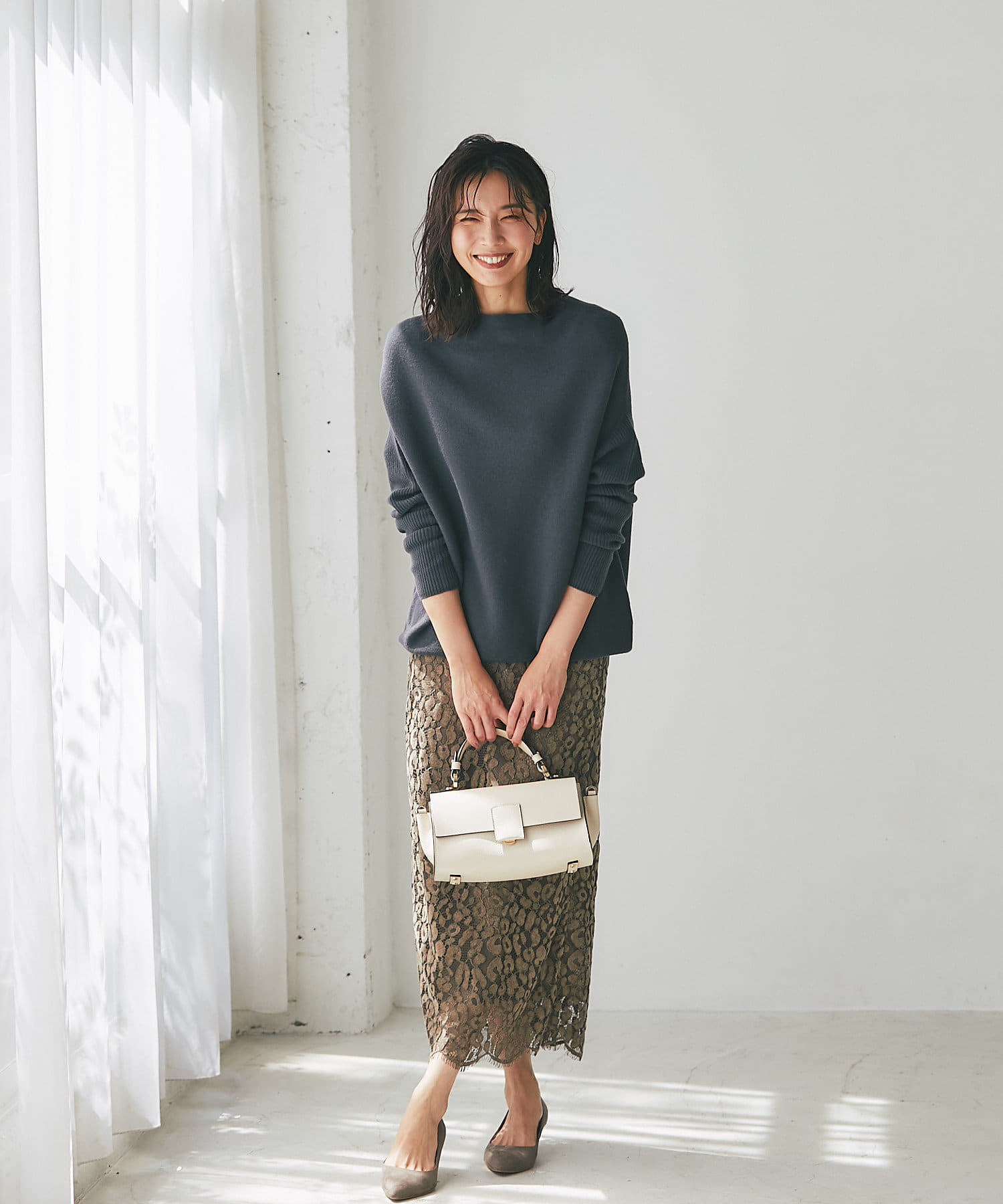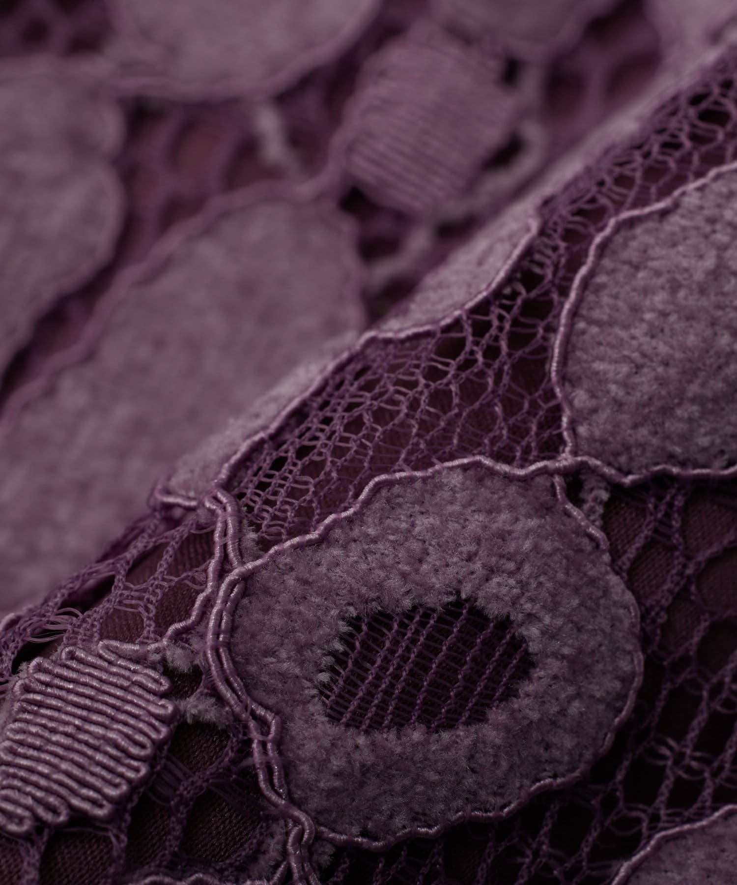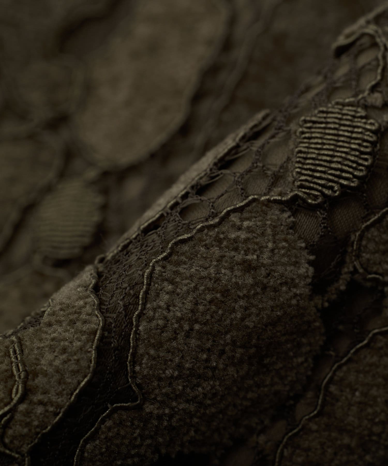 秋冬らしいスモーキーなカラー展開で甘くなりがちなレースを知的な印象で楽しめるように仕上げています。