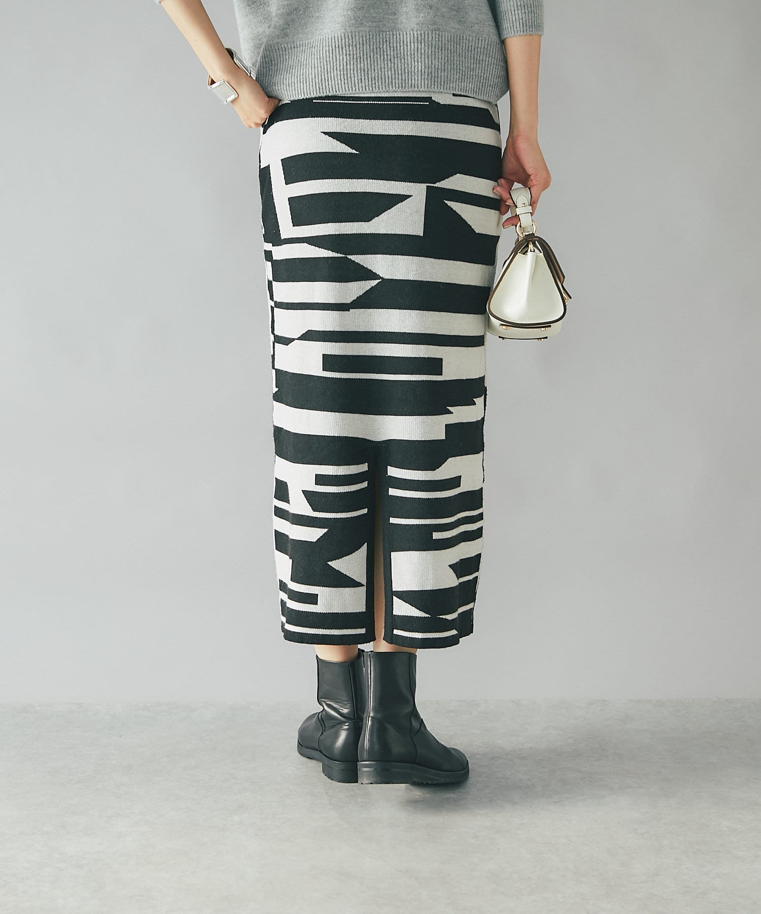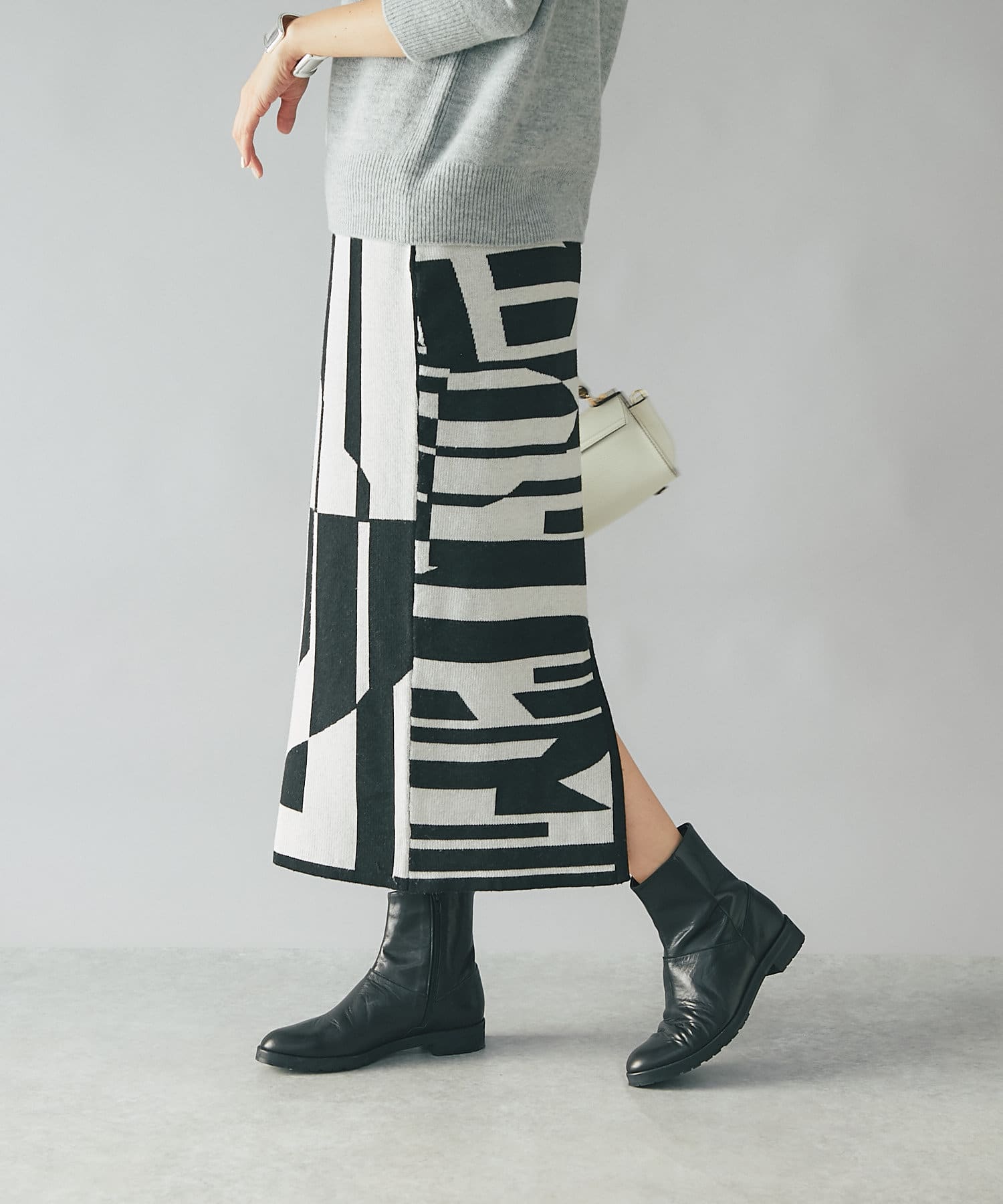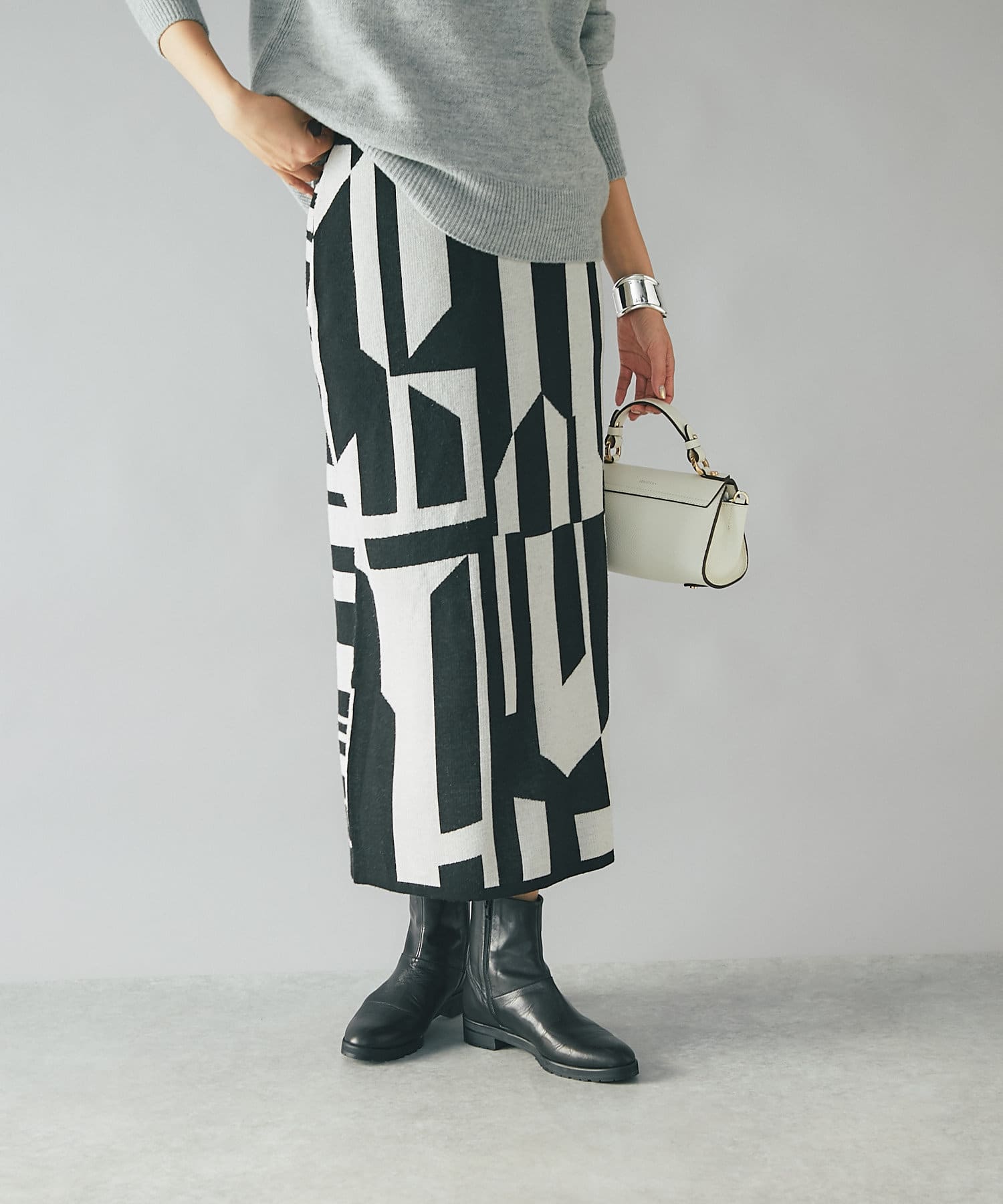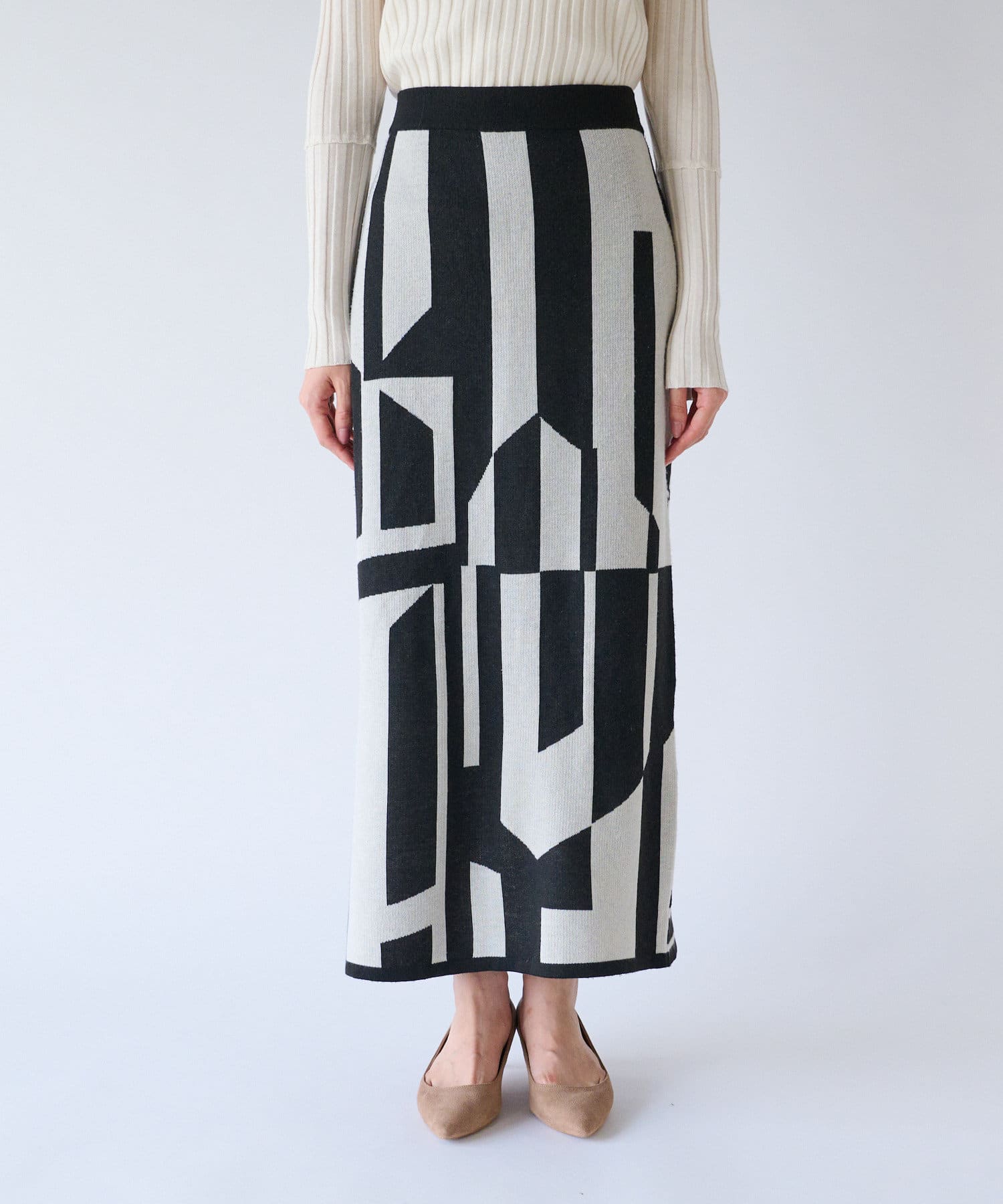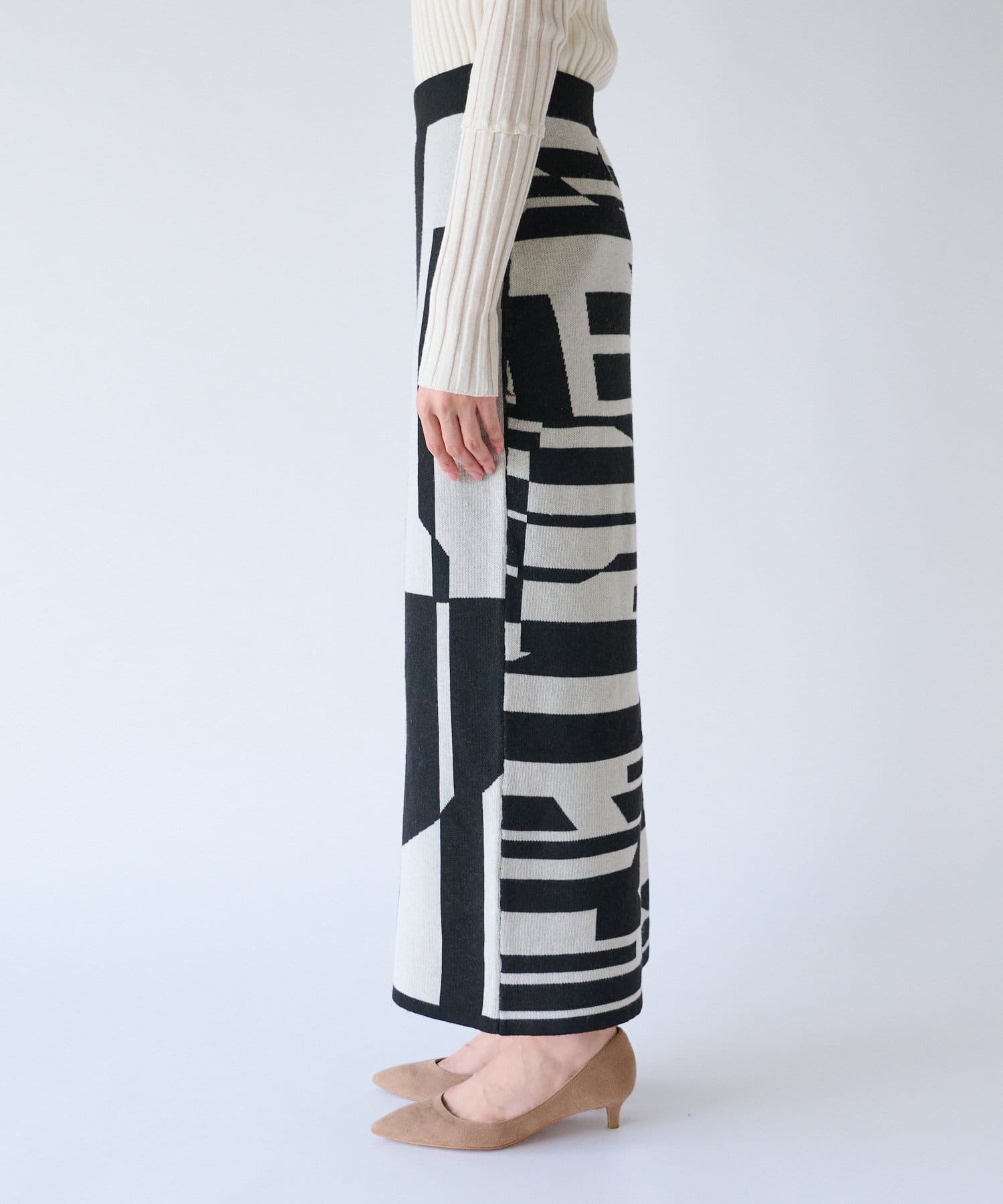 インパクトのあるジャガードが目を惹く今季らしいニットスカート。