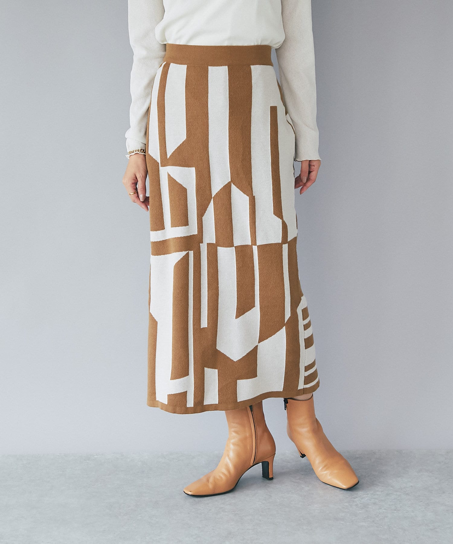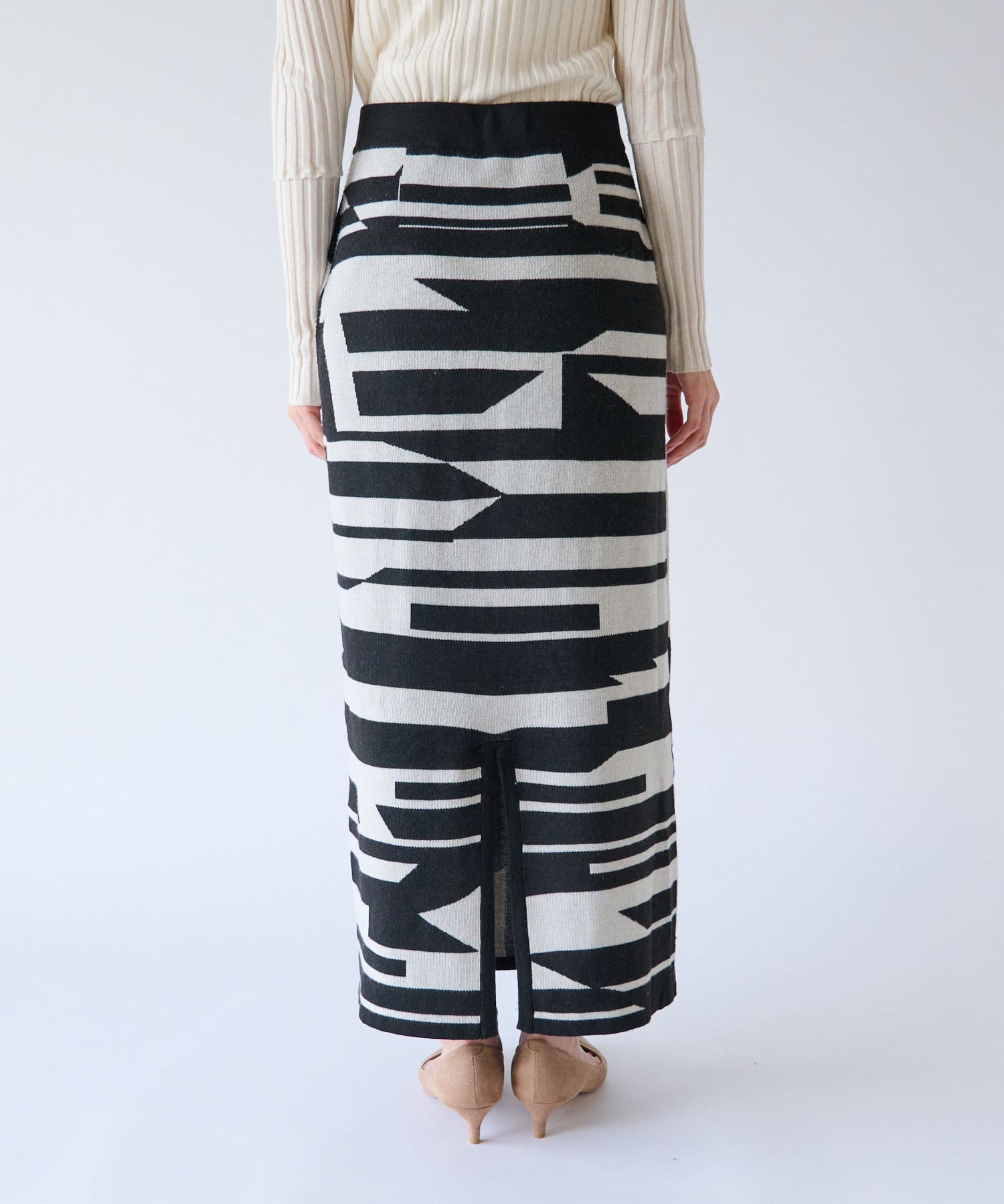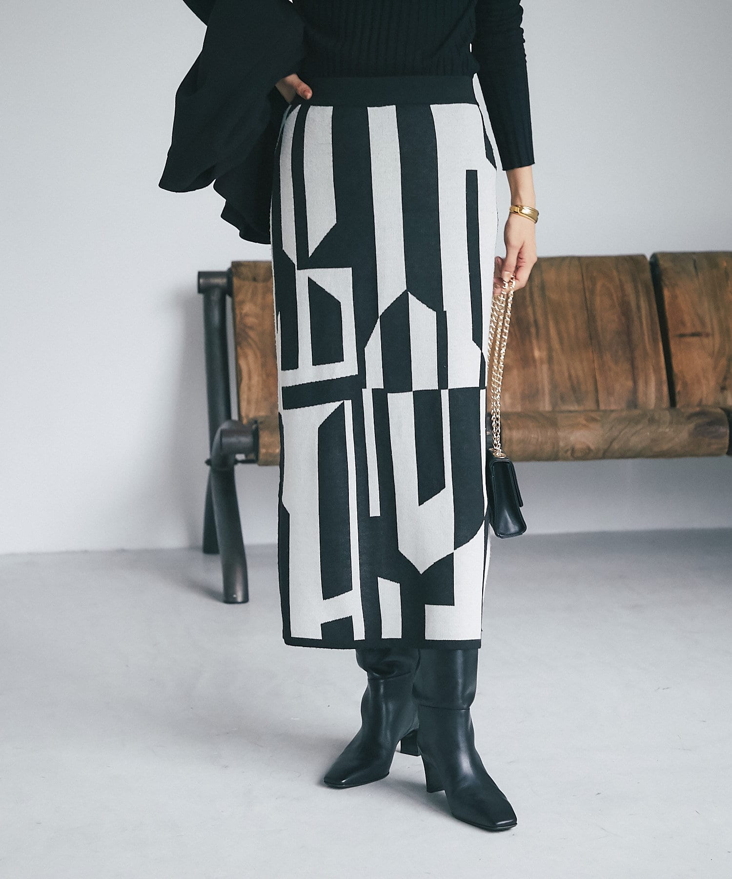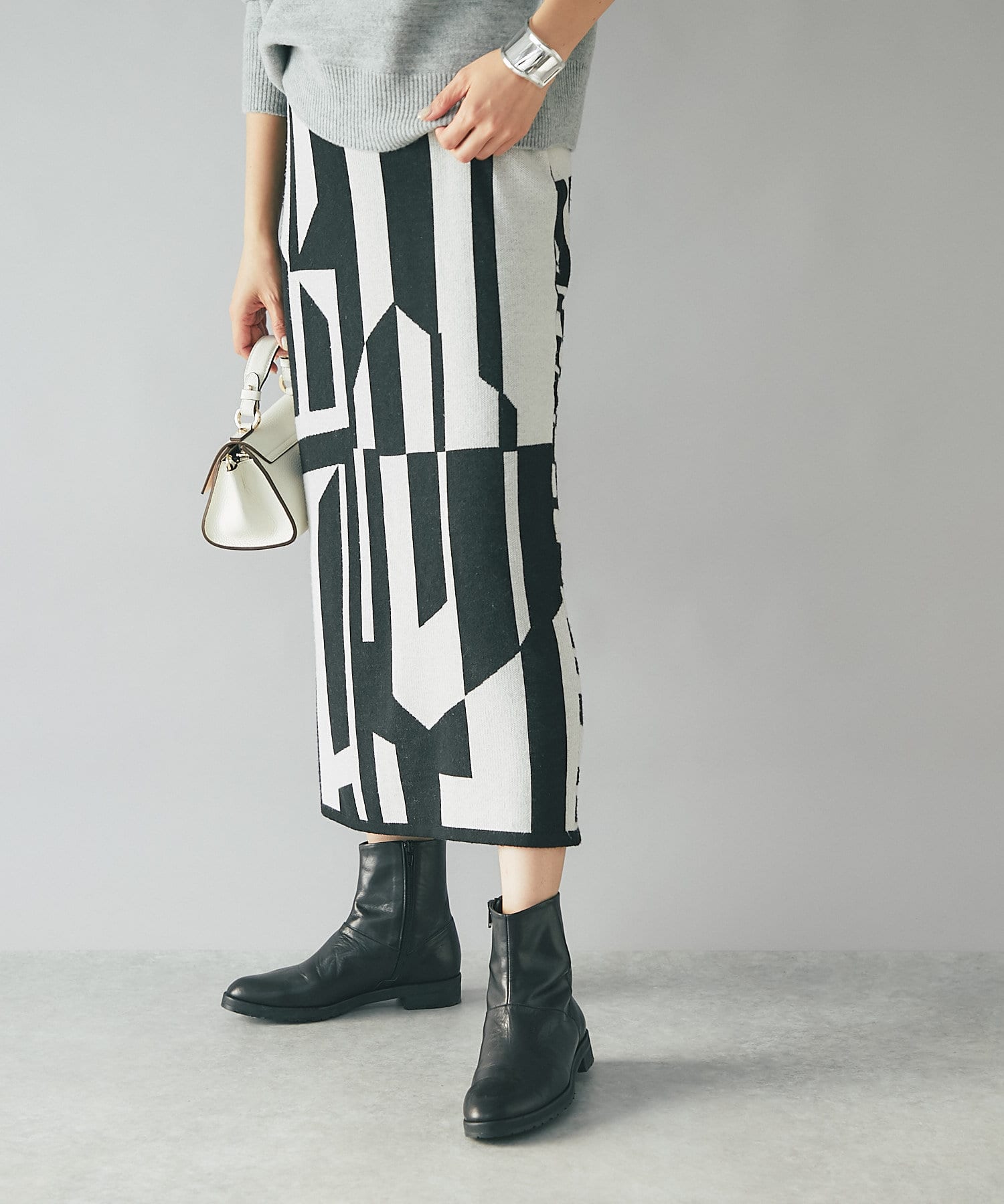 インパクトのあるジャガードが目を惹く今季らしいニットスカート。