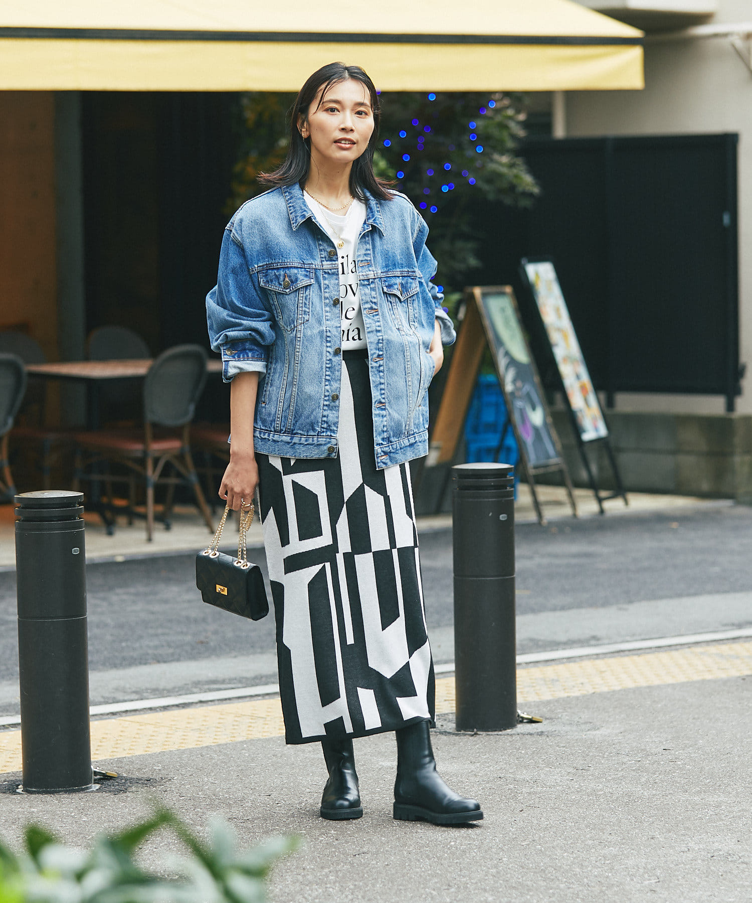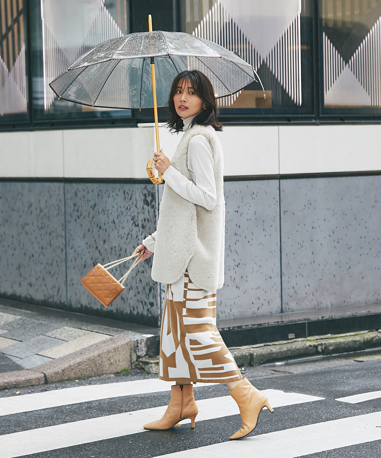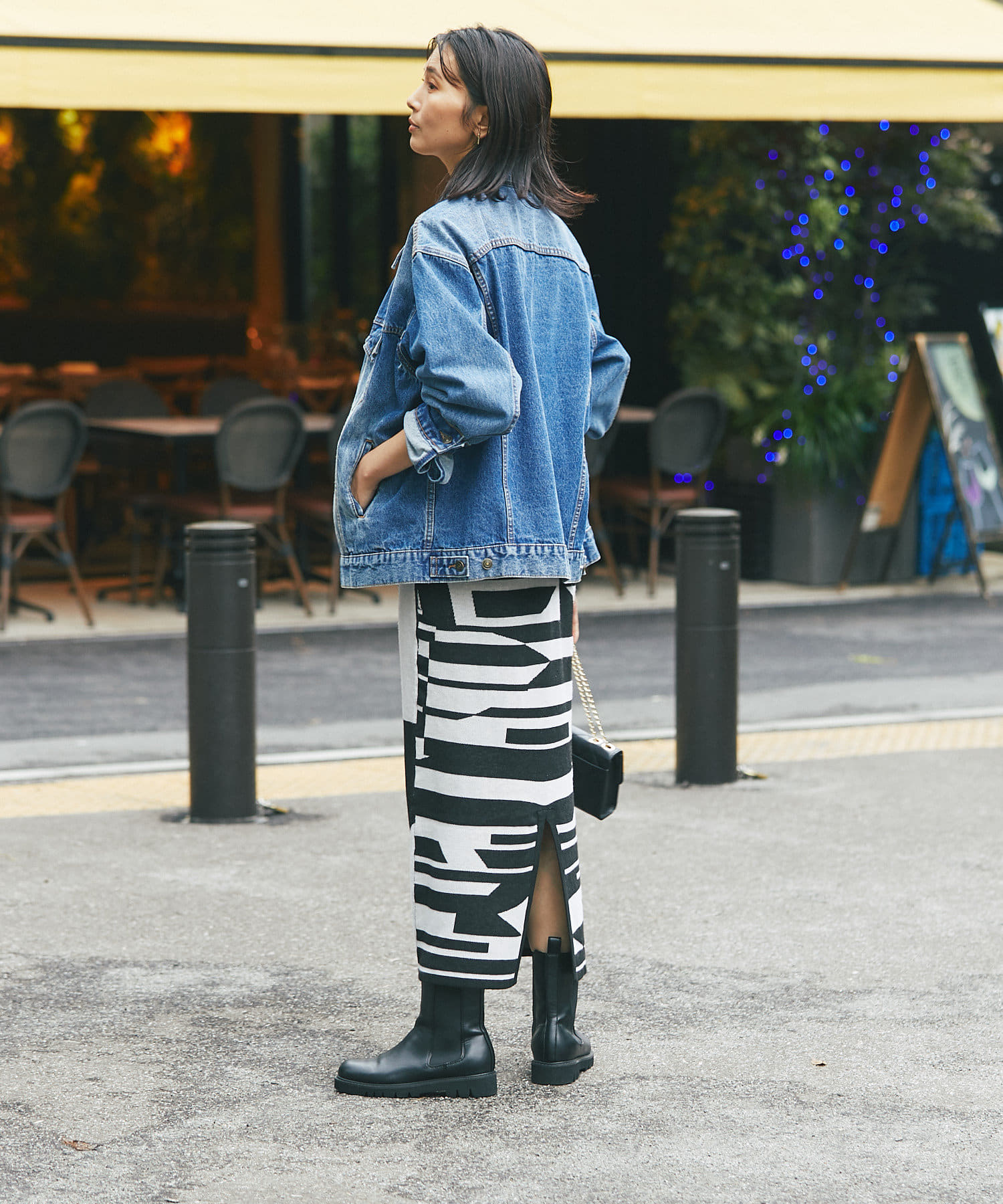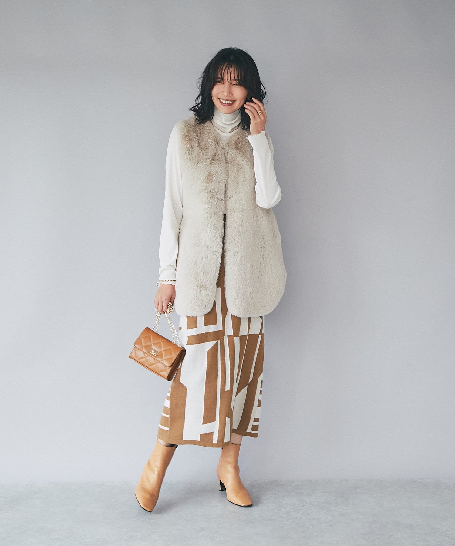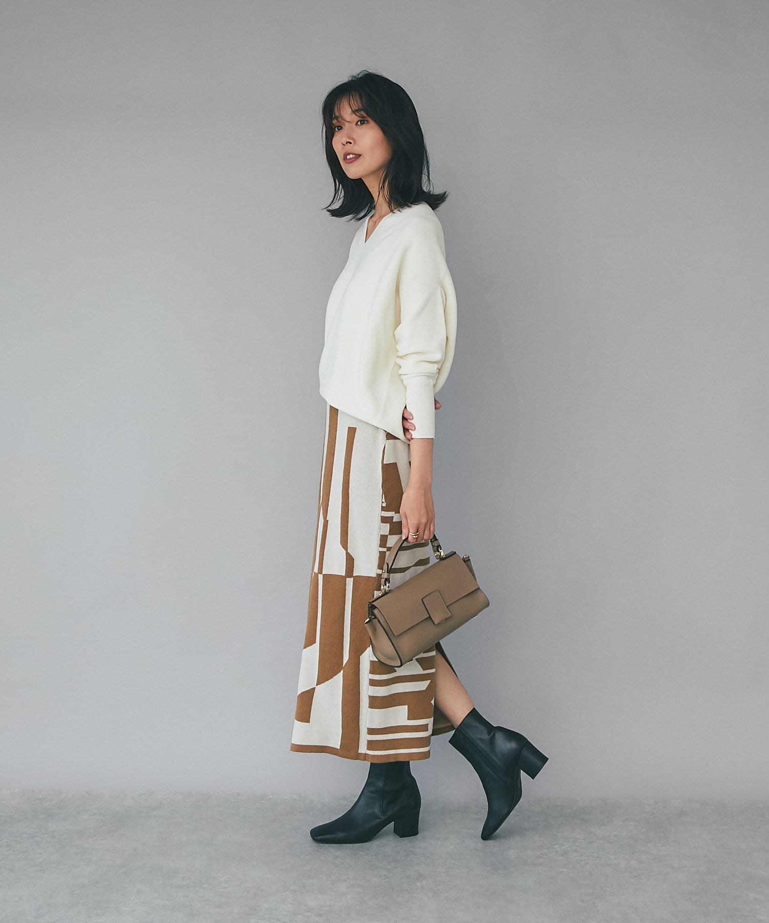 インパクトのあるジャガードが目を惹く今季らしいニットスカート。