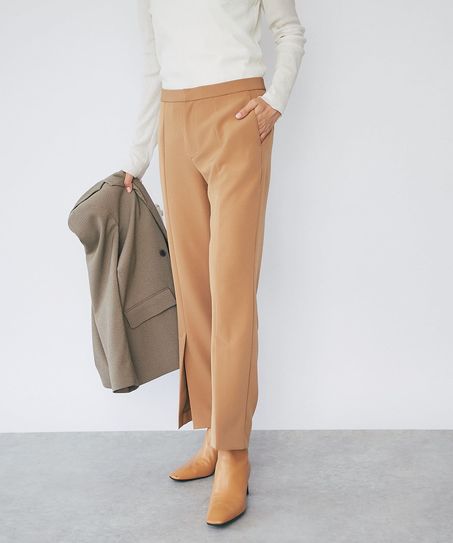【エラスティックなハンサムパンツ】フロントスリットパンツ