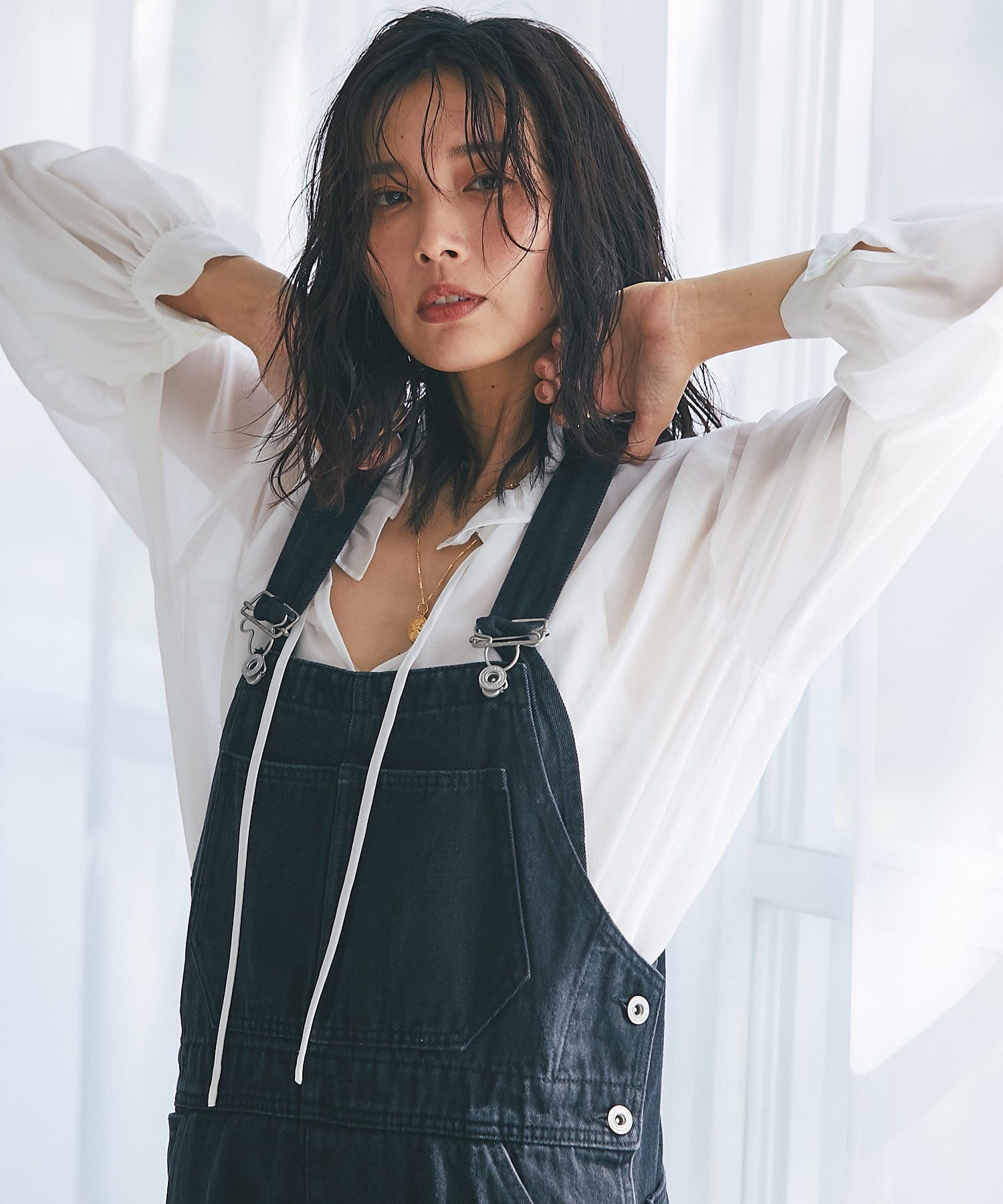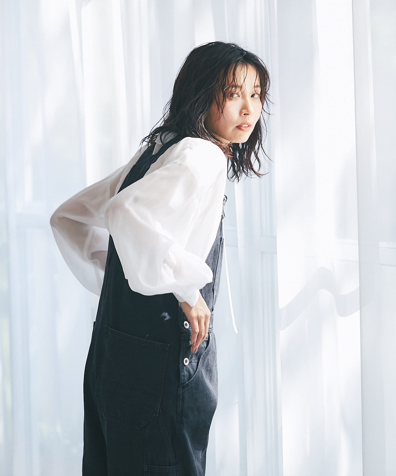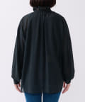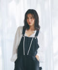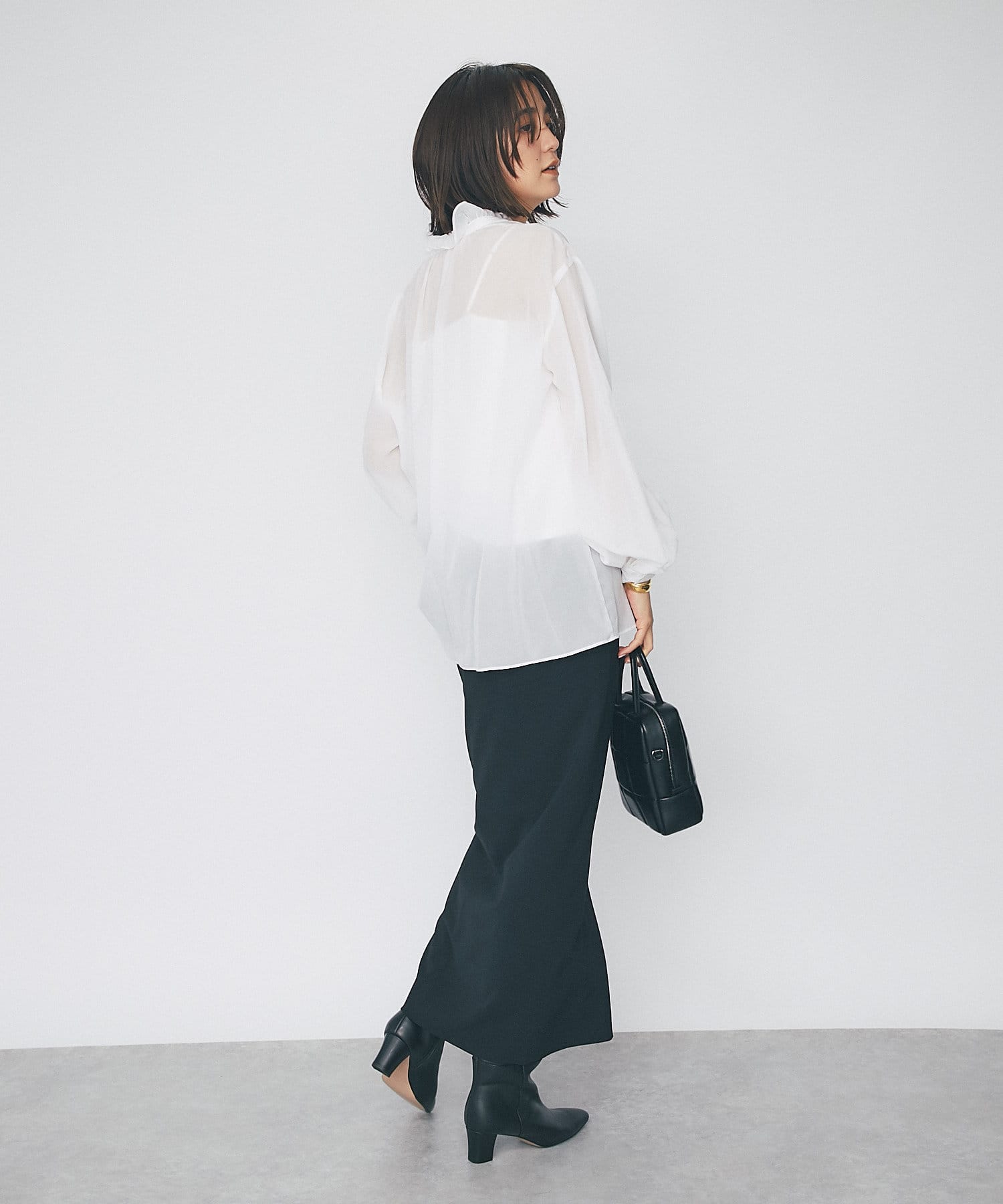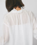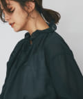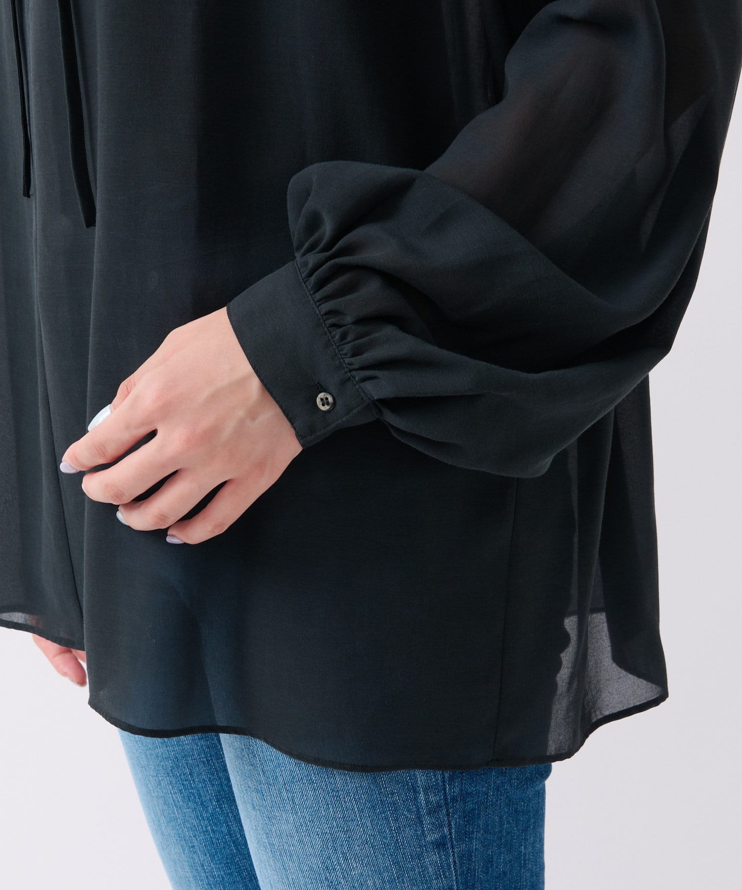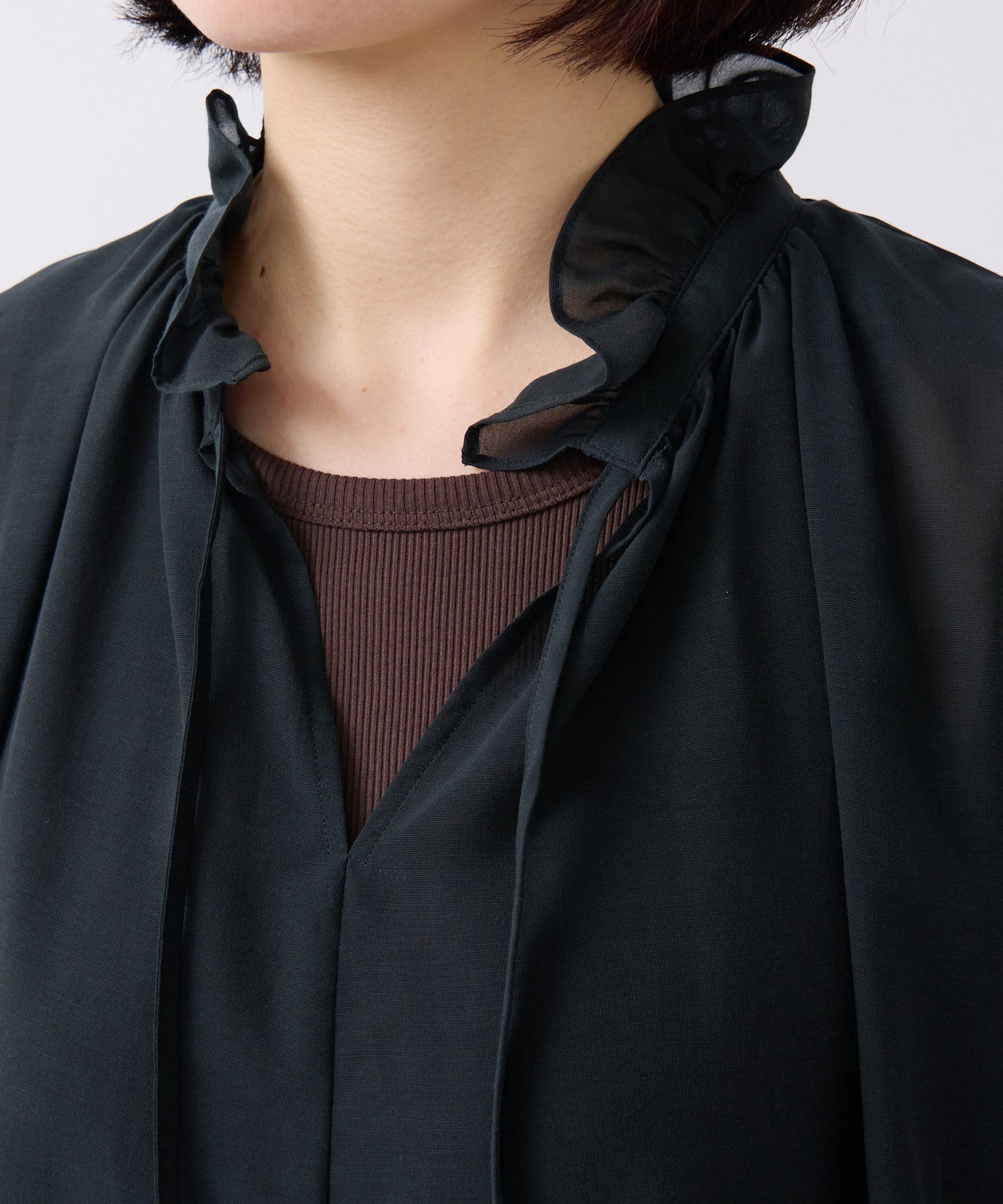 スリットネックと襟元のリボンが抜け感を演出してくれるデザインです。 キュプラコットンを使用したシアーボイルは上品な透け感で肌離れが良く快適な着心地。