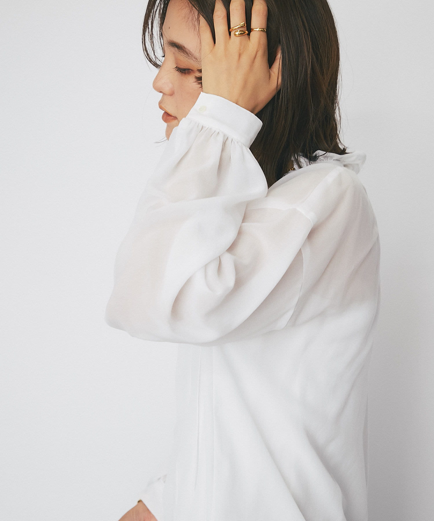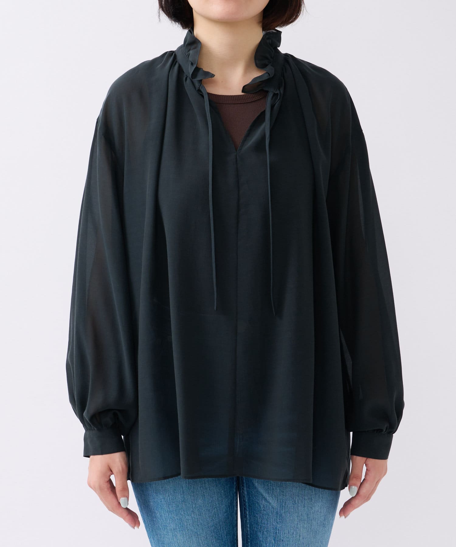 【繊細さと甘さのバランスが◎】ソフトボイルフリルカラーブラウス