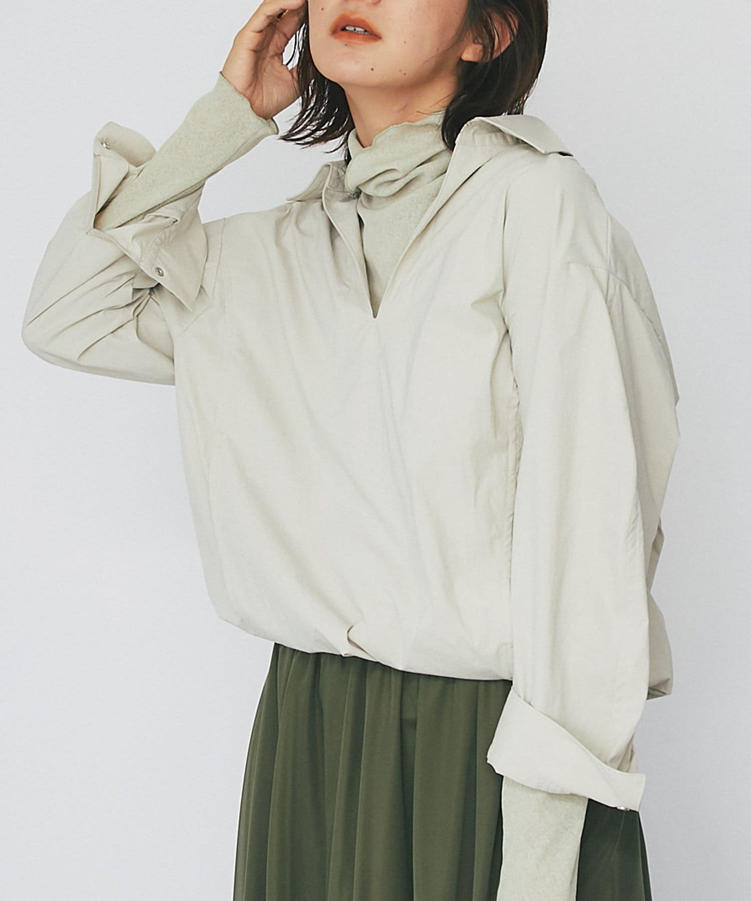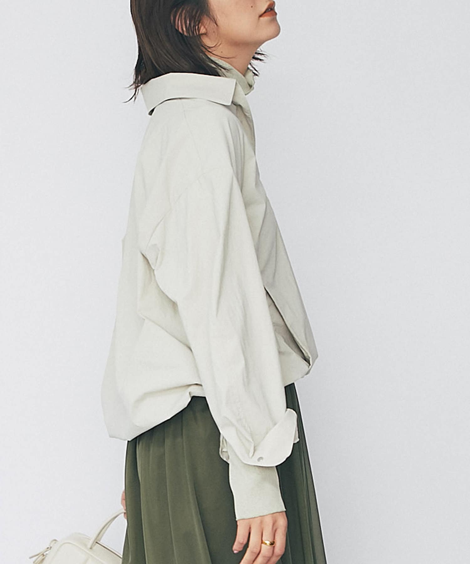 タプっとしたバックフォルムとバランスの良いバナナスリーブは、カジュアルにたくし上げボリューム感を出すのがポイントです。 ドロストはギュッと絞ったマンパ風のシルエットでも着用可能。
