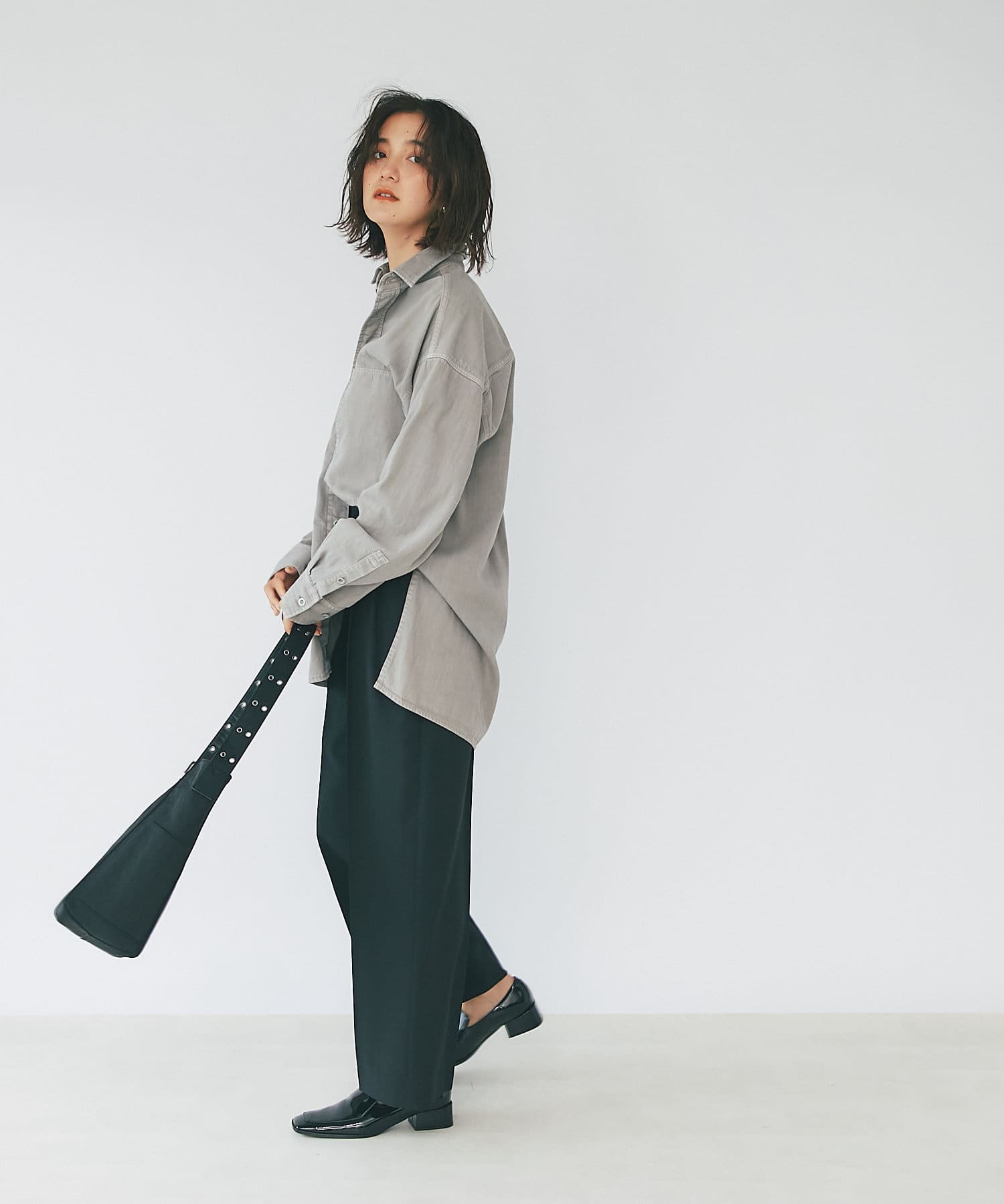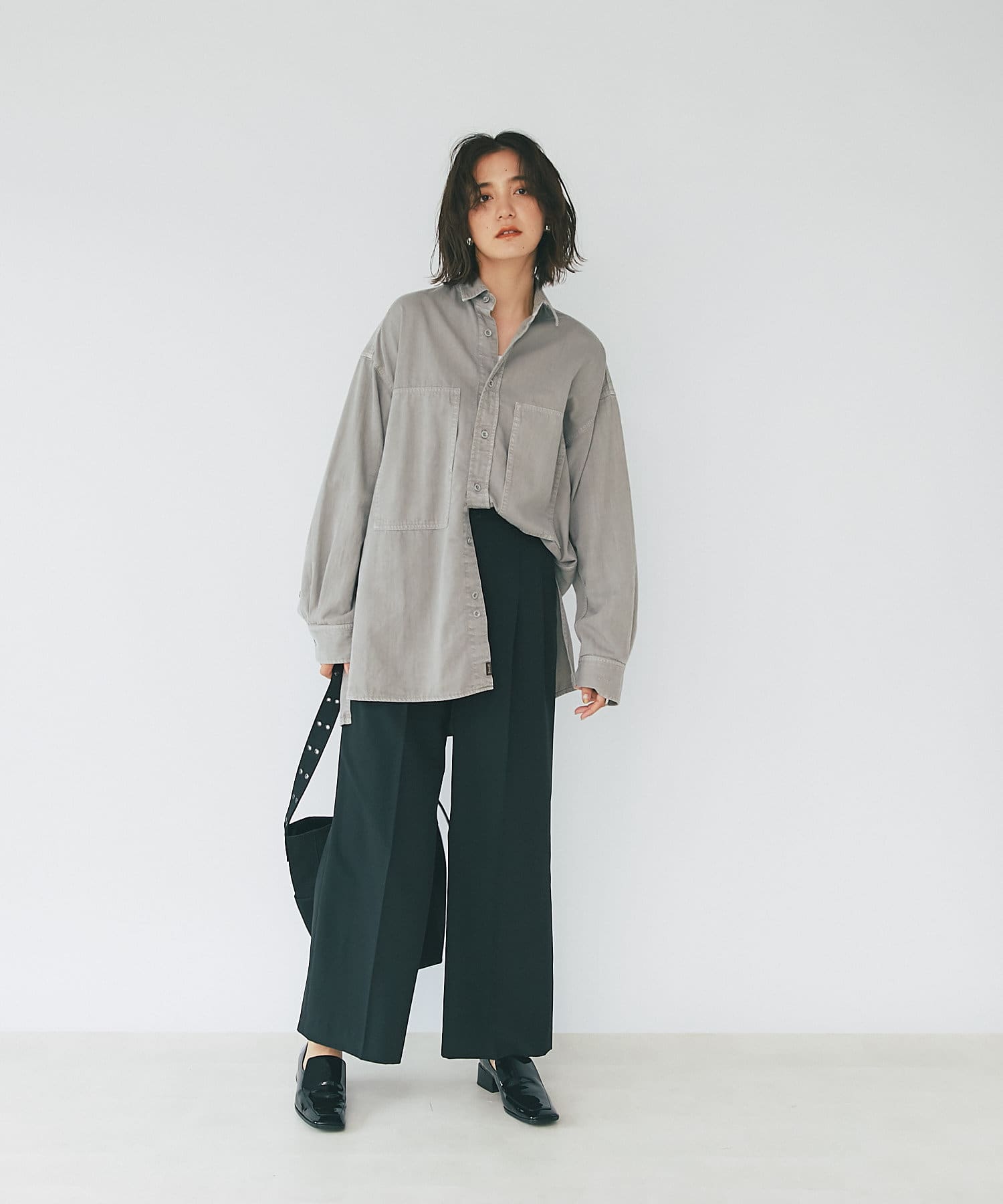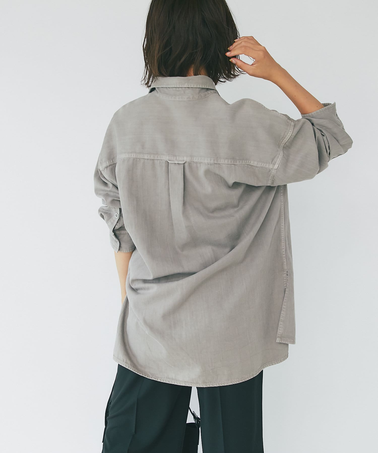 • オーバーサイズでサイドにスリットがあり抜け感のあるデニムシャツ