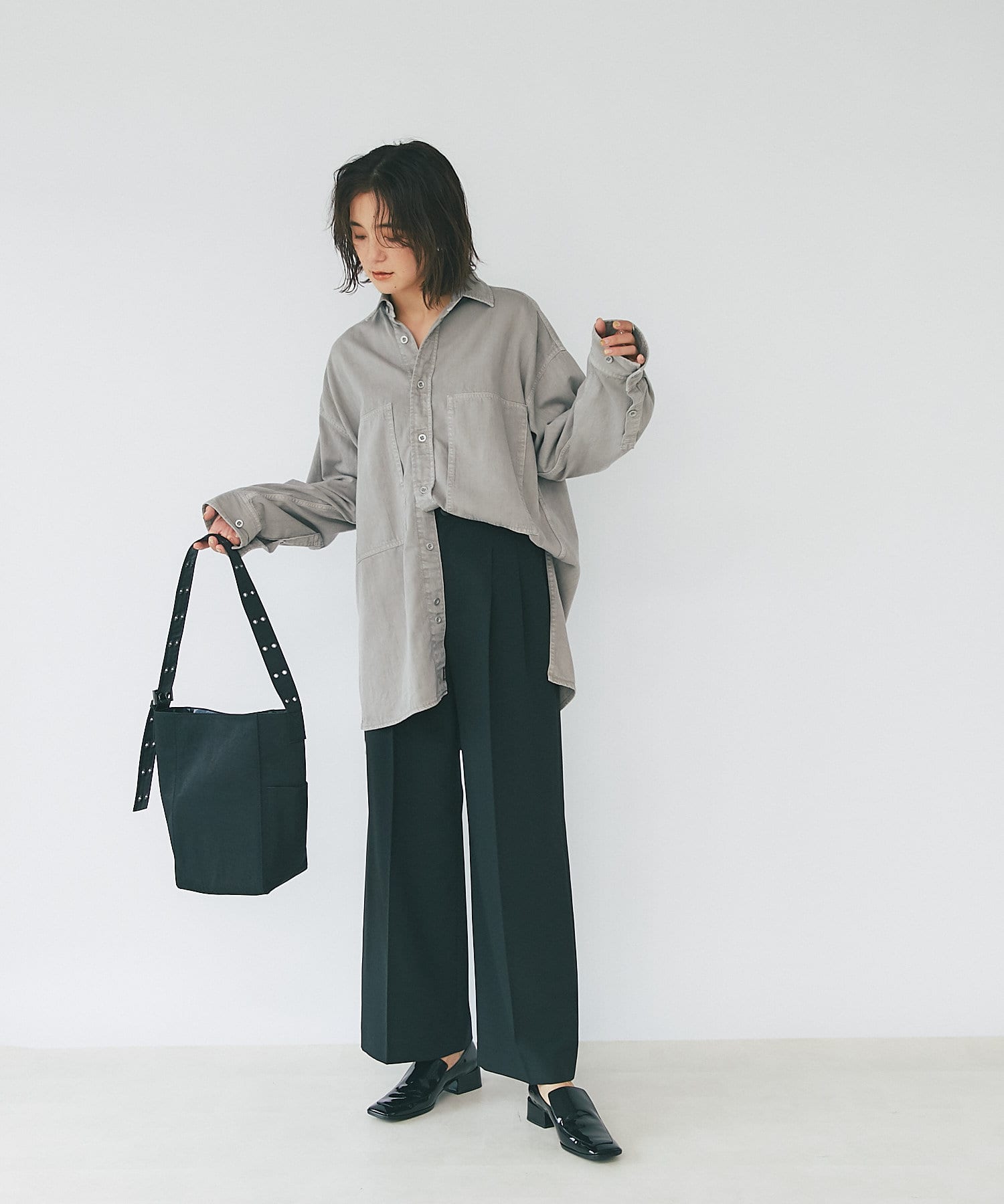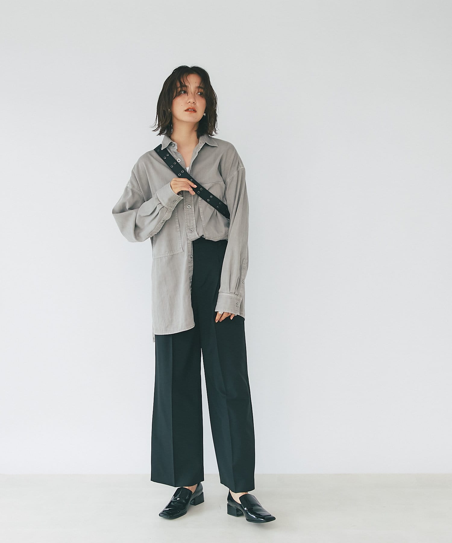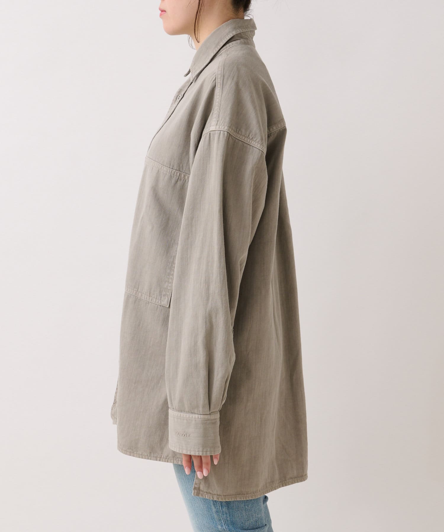 • オーバーサイズでサイドにスリットがあり抜け感のあるデニムシャツ