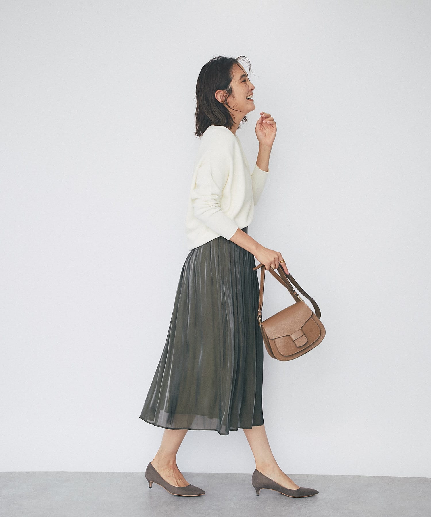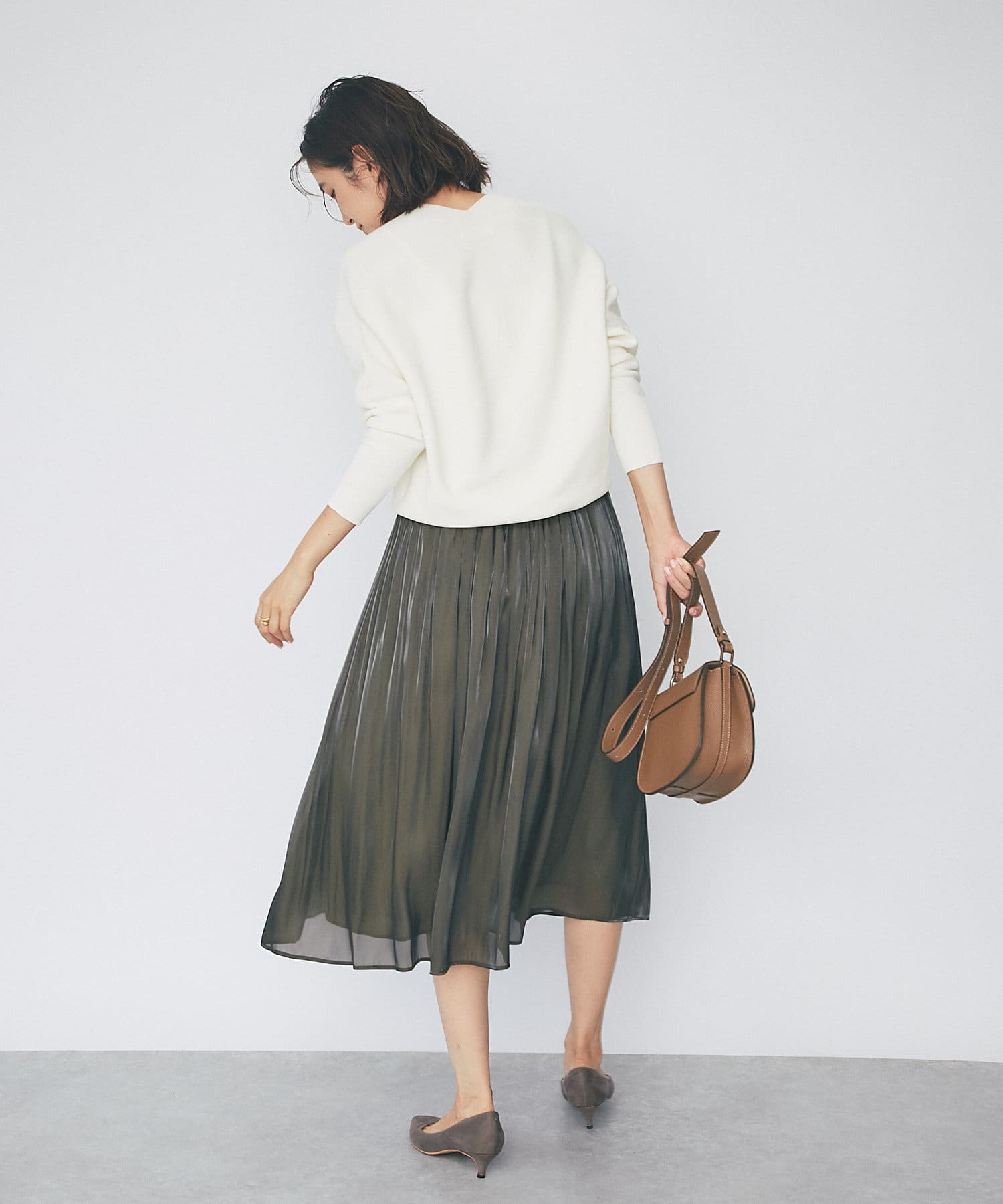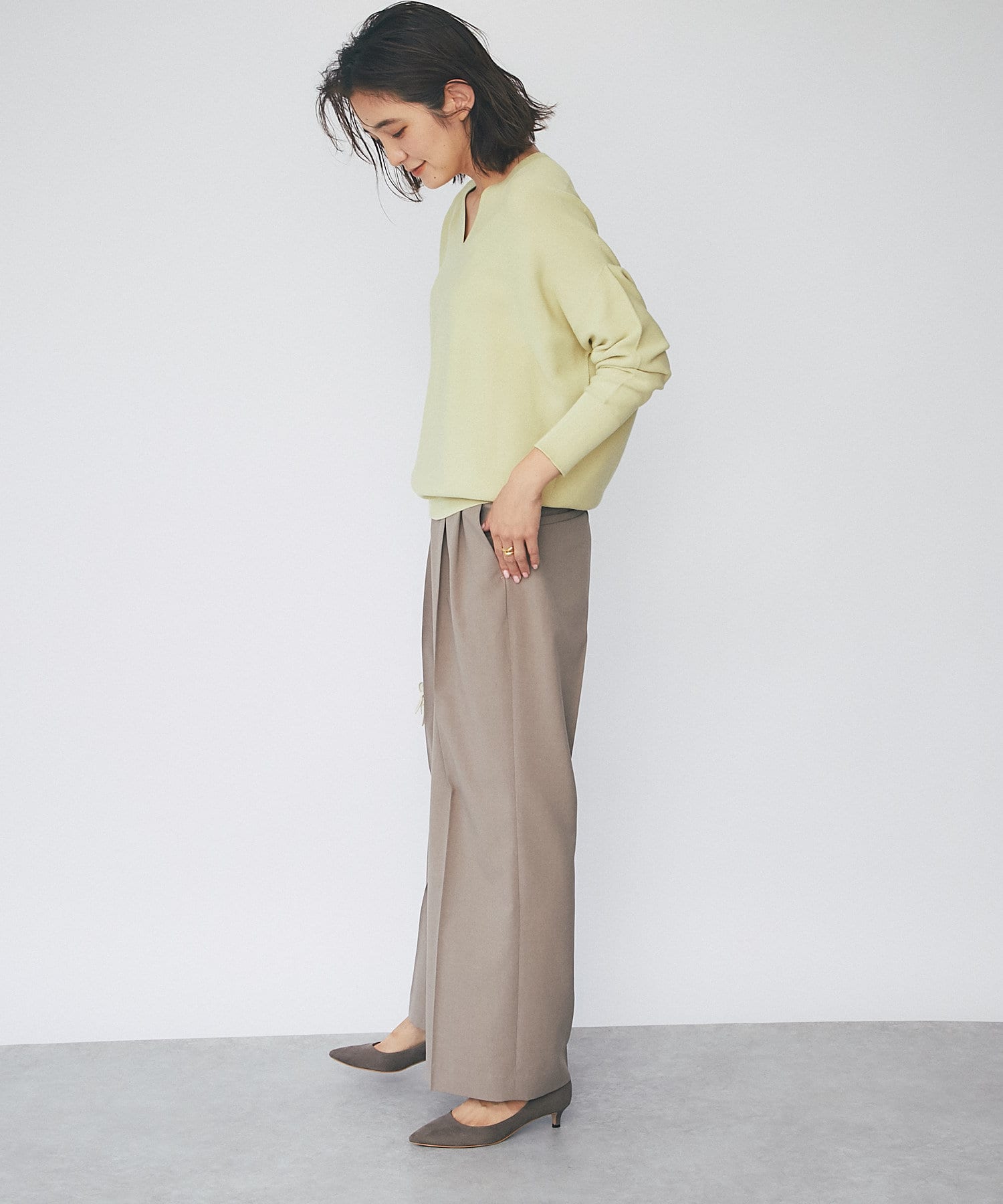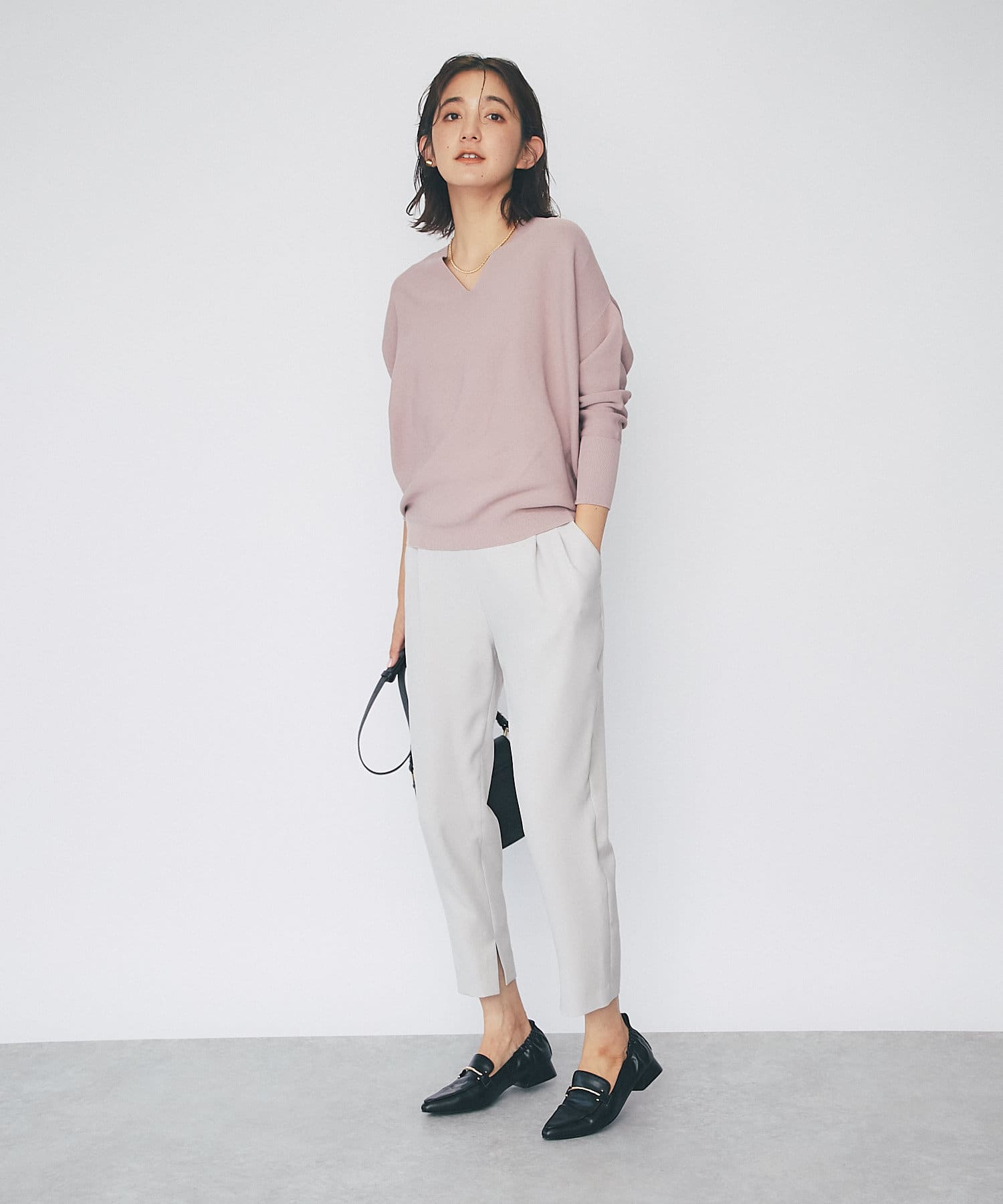 オンオフ兼用でボトムを選ばずに使えるシンプルさが引き立つニットは、今季一枚は持っておきたいアイテム。