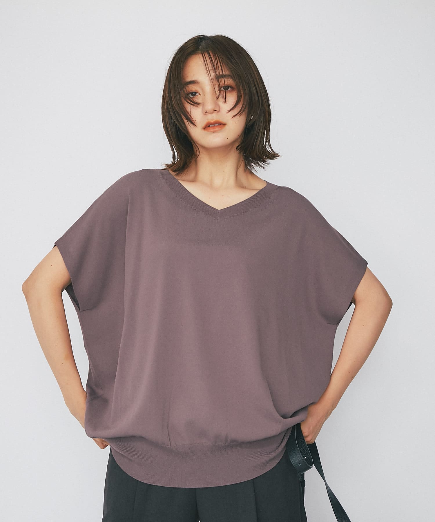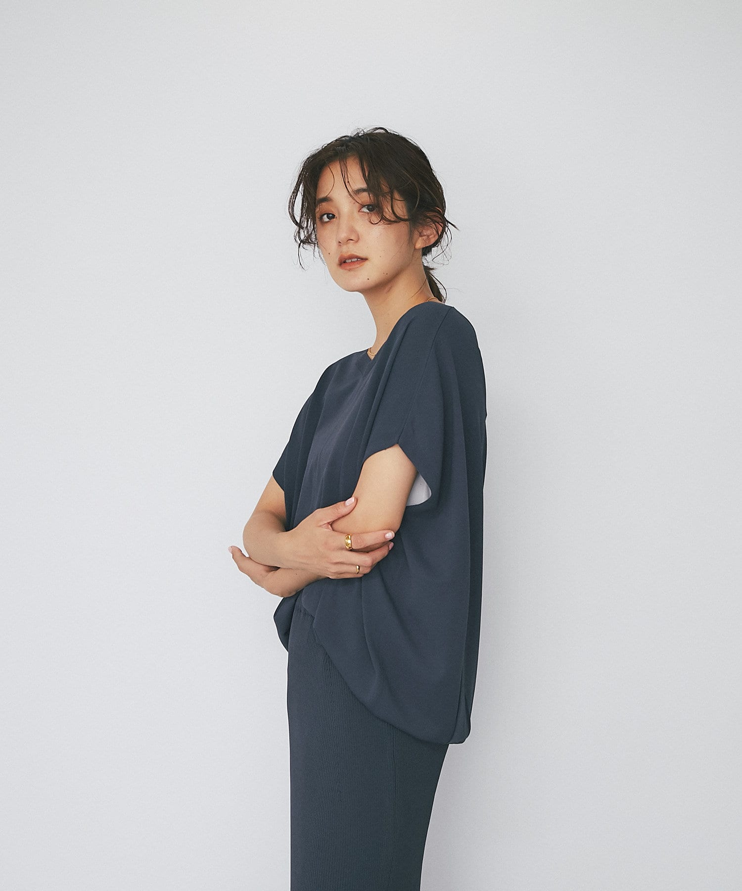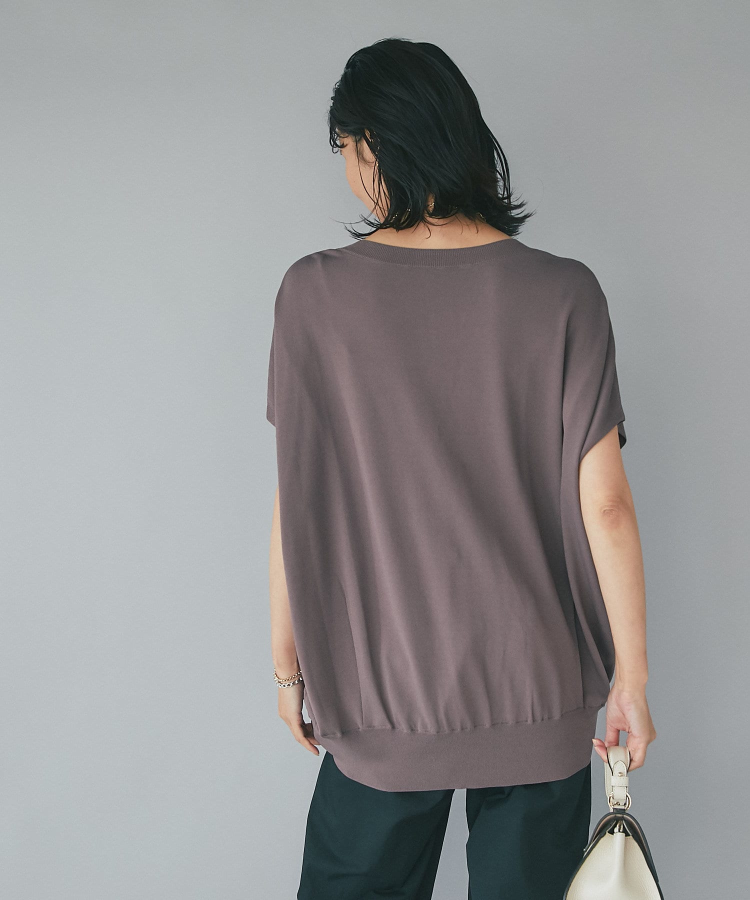 たっぷりしたシルエットで安心感も抜群。二の腕の隠れる袖丈でスッキリ見えと体系カバーも叶います。