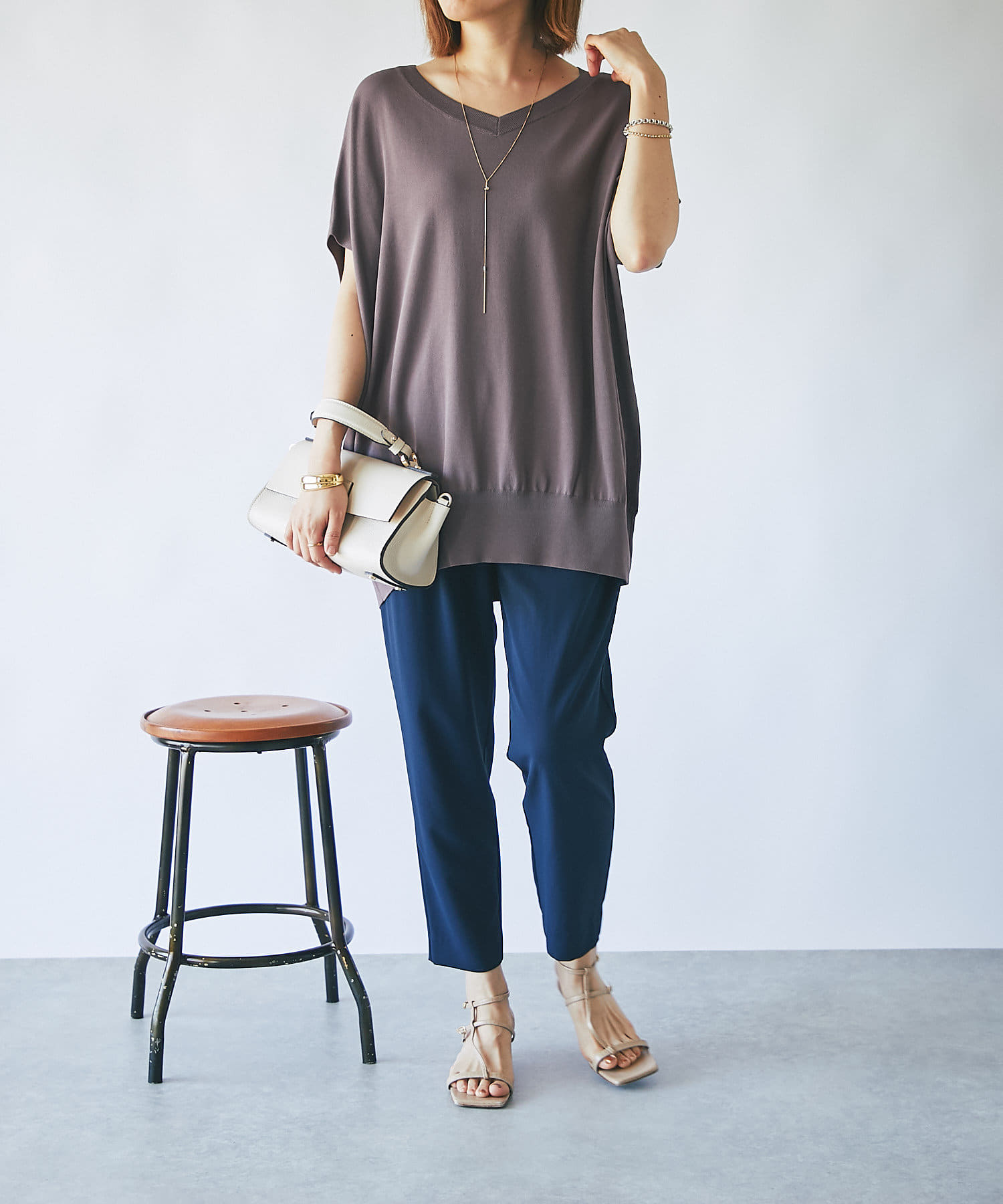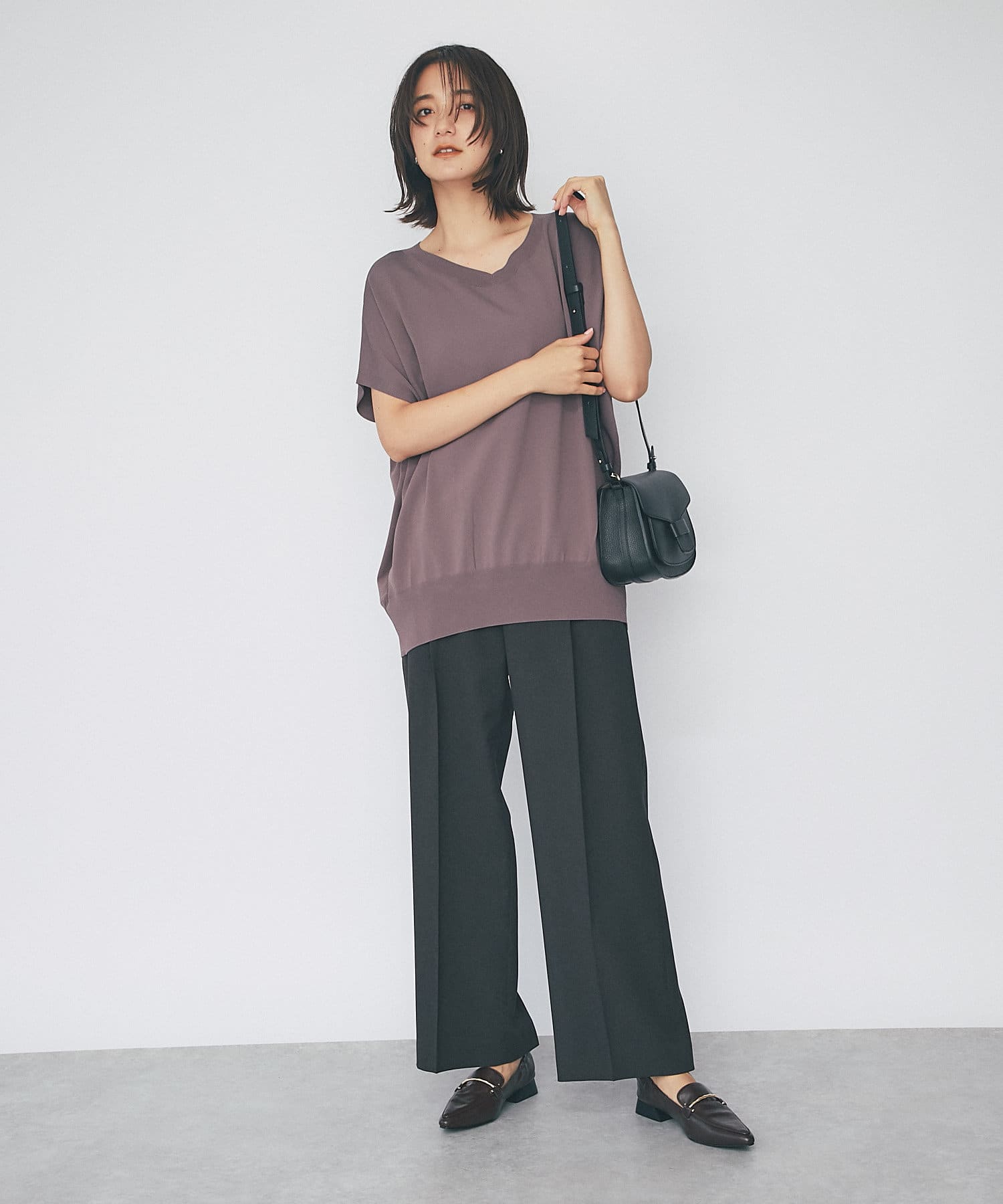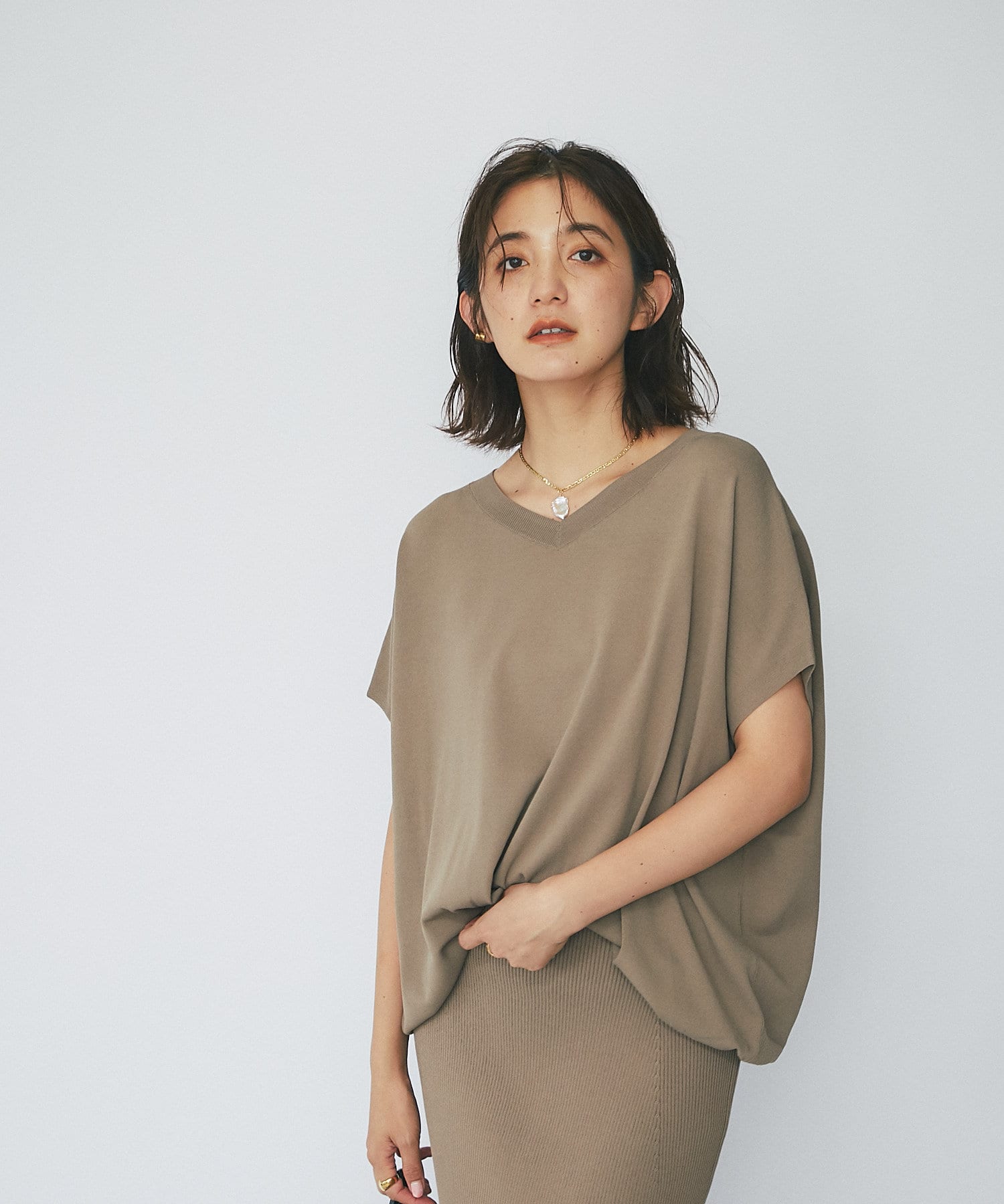 たっぷりしたシルエットで安心感も抜群。二の腕の隠れる袖丈でスッキリ見えと体系カバーも叶います。