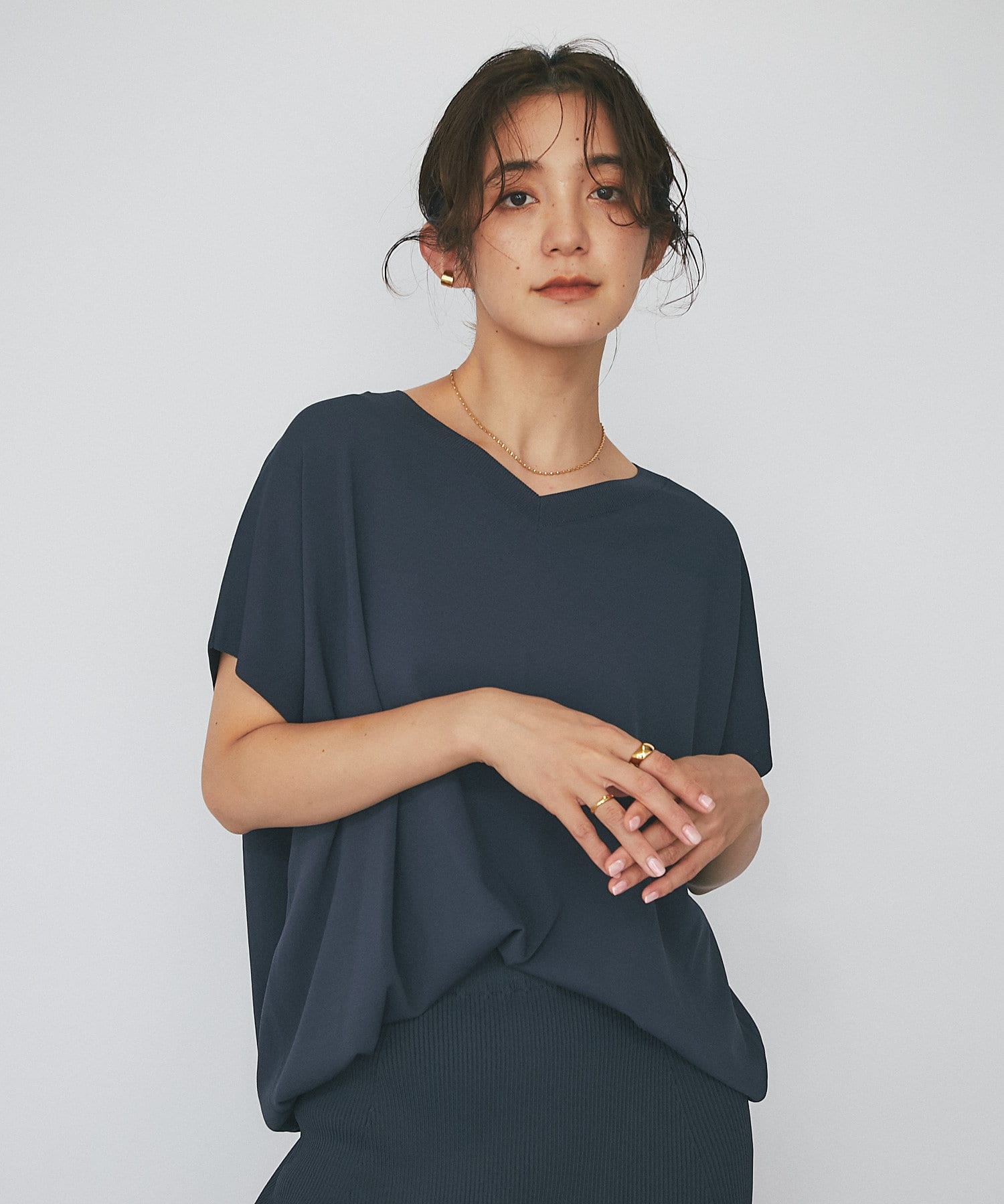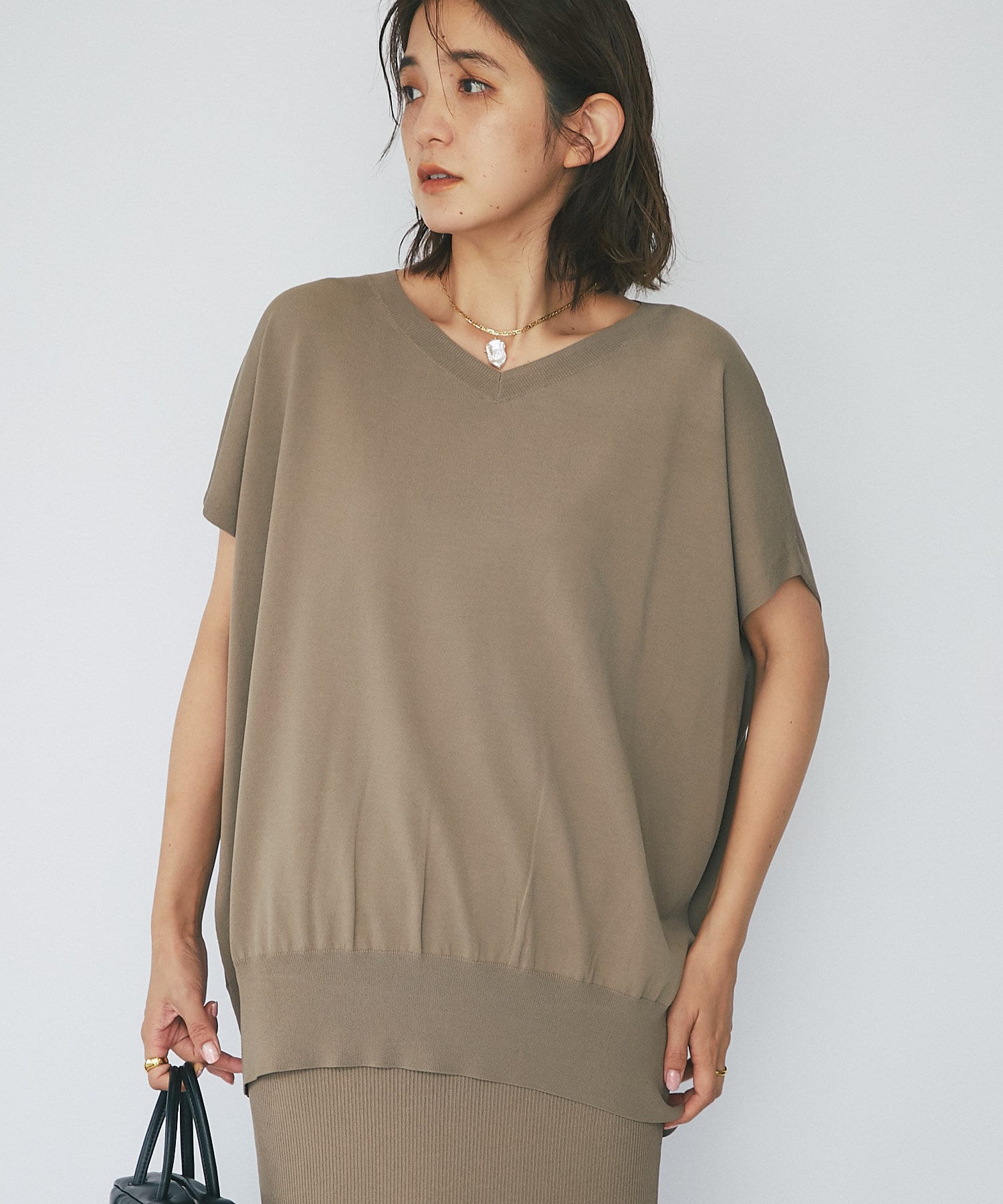 デコルテを美しく見せるVネックライン。