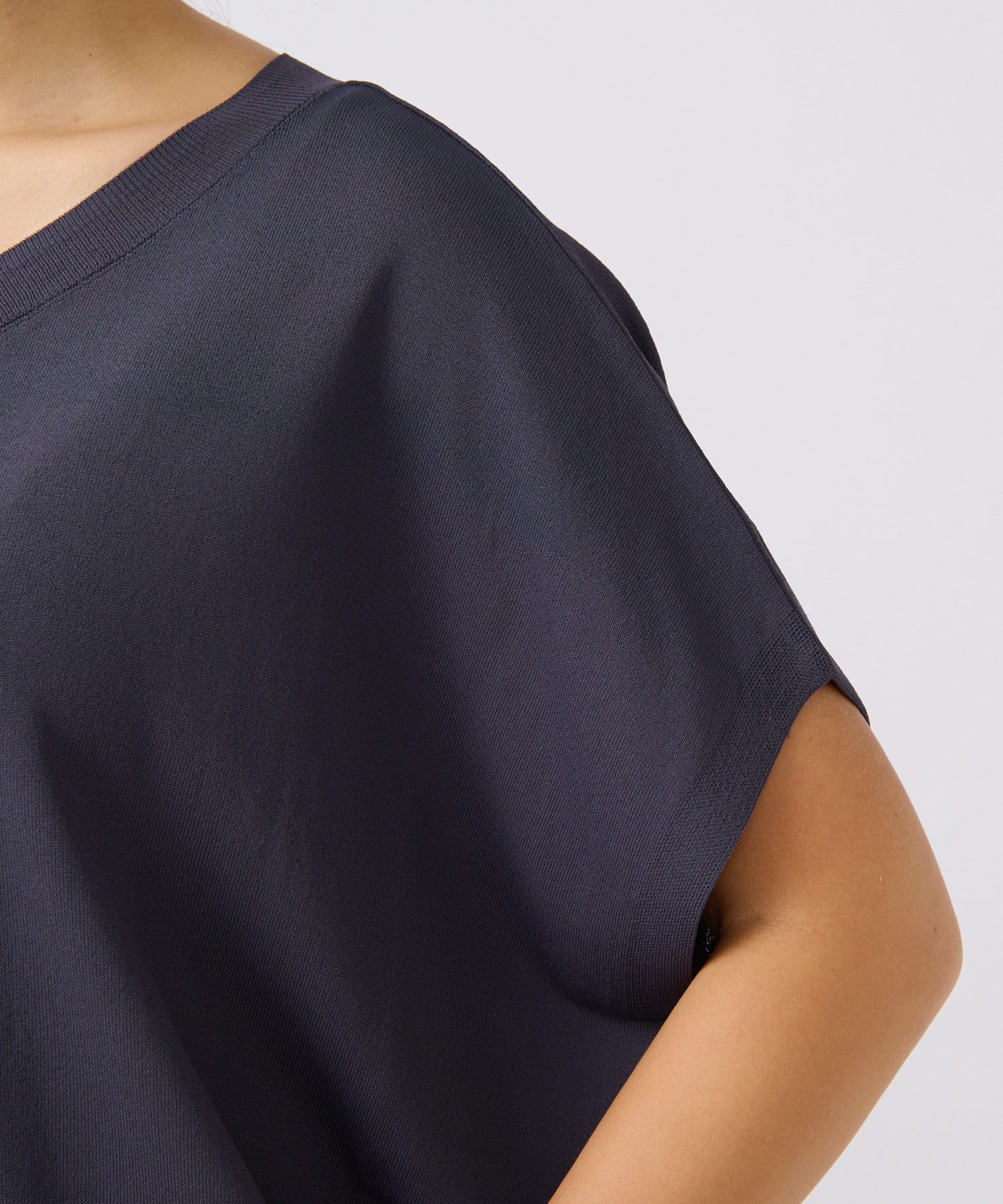 ややハリのあるヴィスコースナイロンの糸を使用したハイゲージニット。