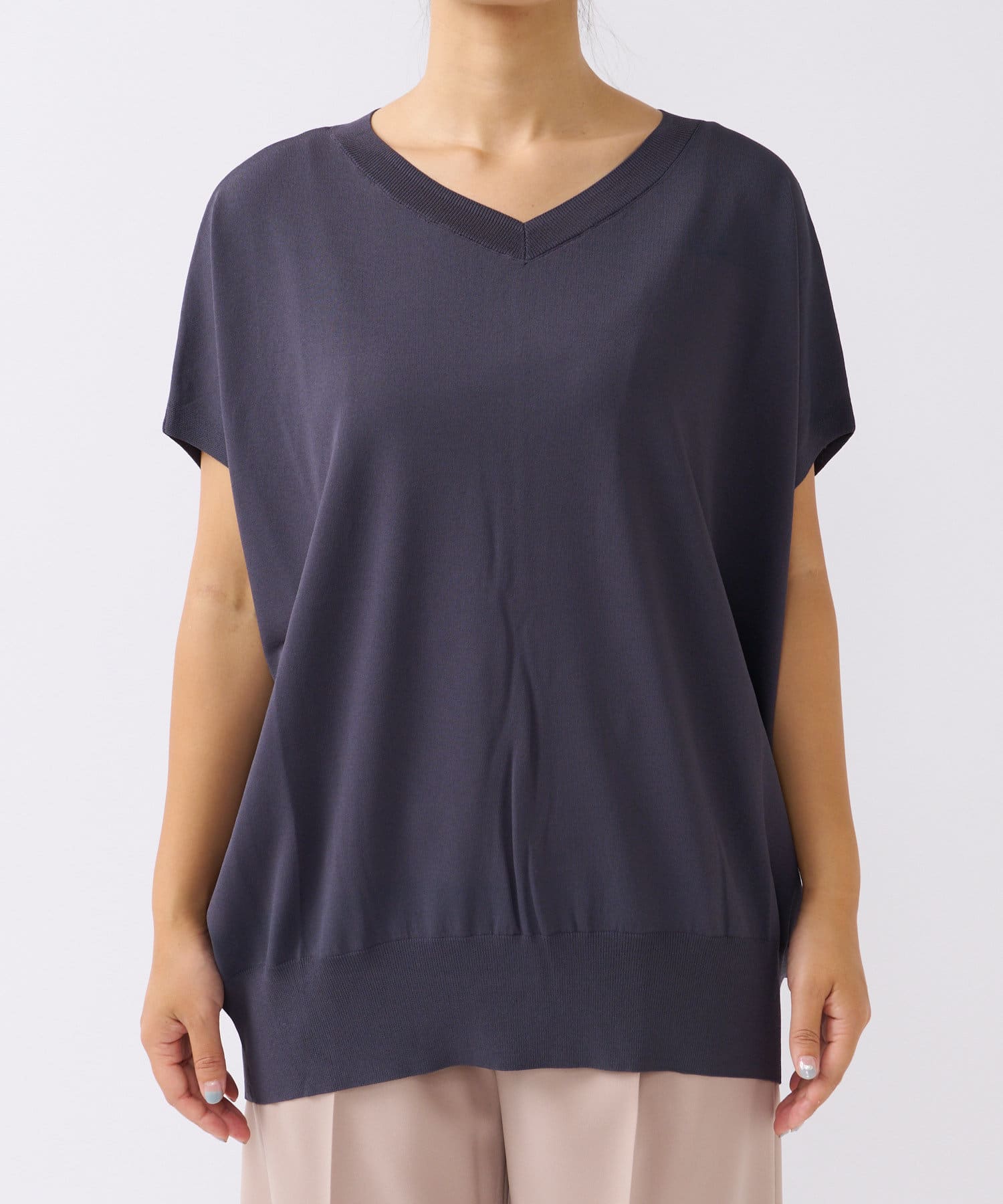 【羽織りのインナーにも最適!】バックタック浅Vネックニット