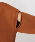 ストレッチポリエステルとコットンを使用したスリットショルダーカーデ。