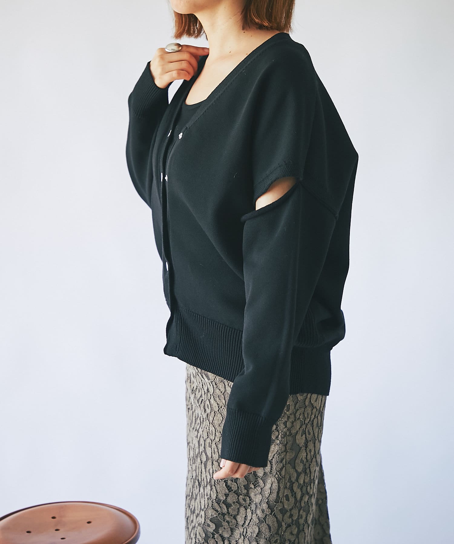 RIVE DROITE(リヴドロワ) 【今季らしいデザインが目を惹く】スリットスリーブカーデイガン