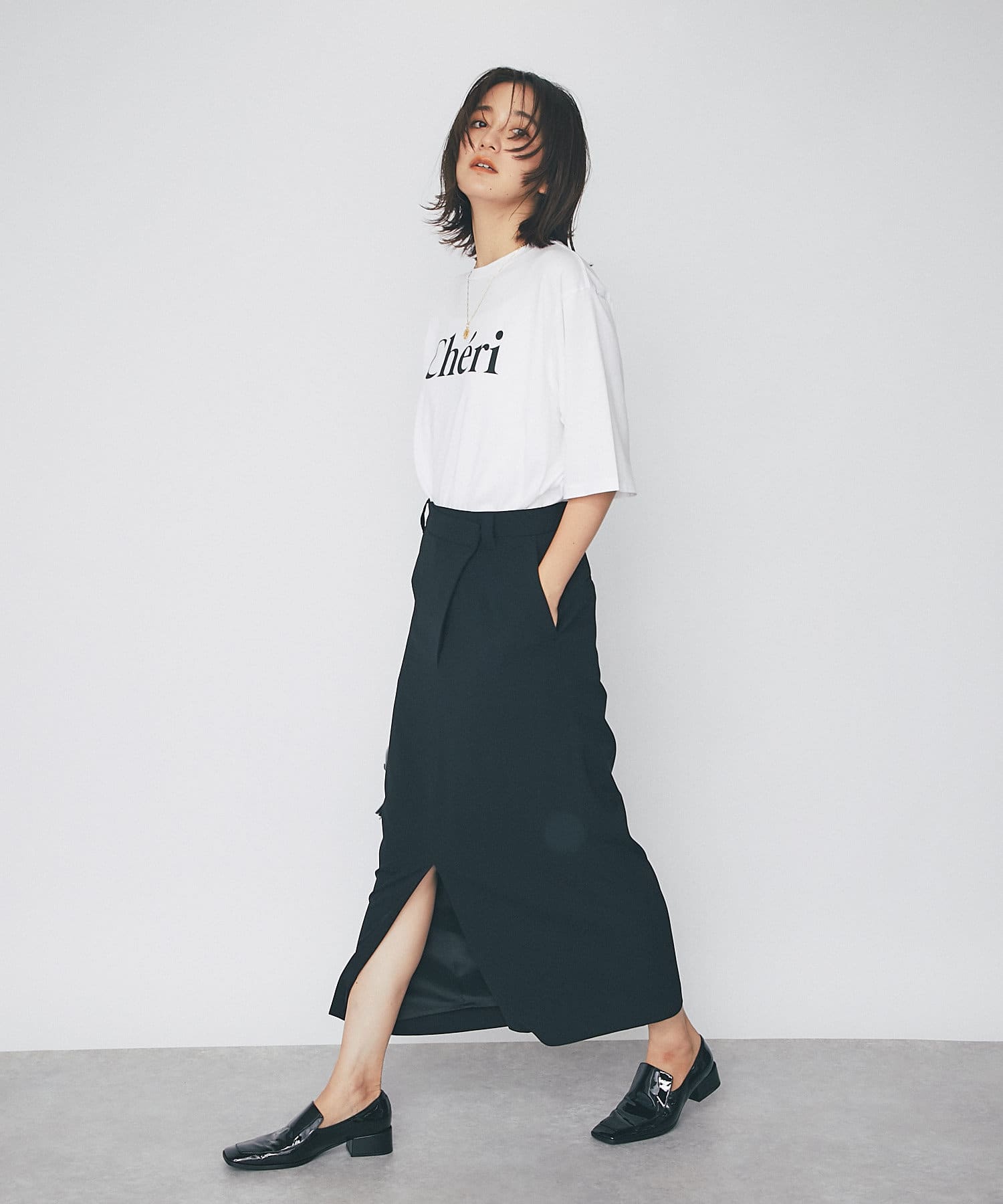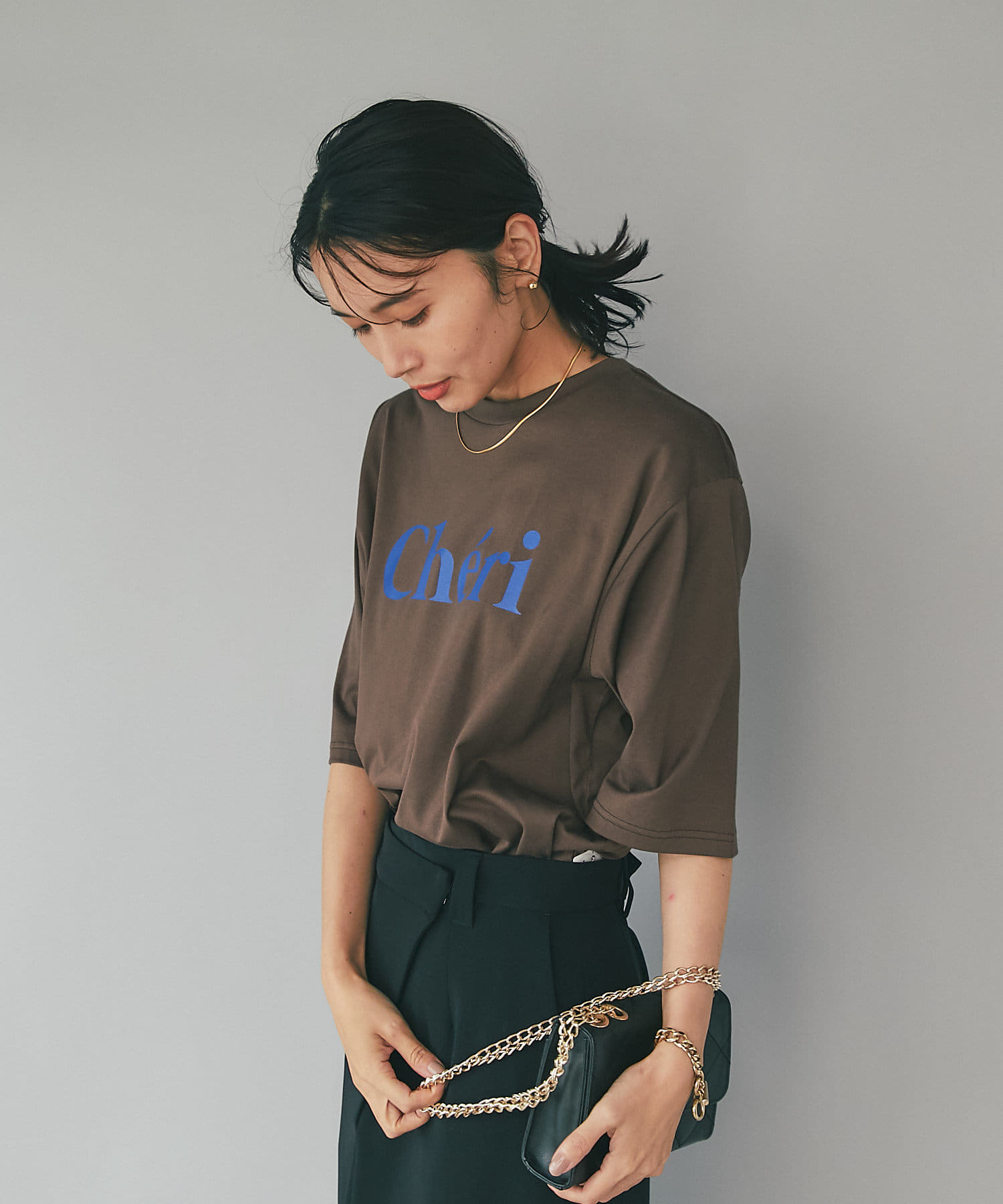 フェミニンなロゴとリラックス感のあるシルエットで一枚でサマになるカットソー。