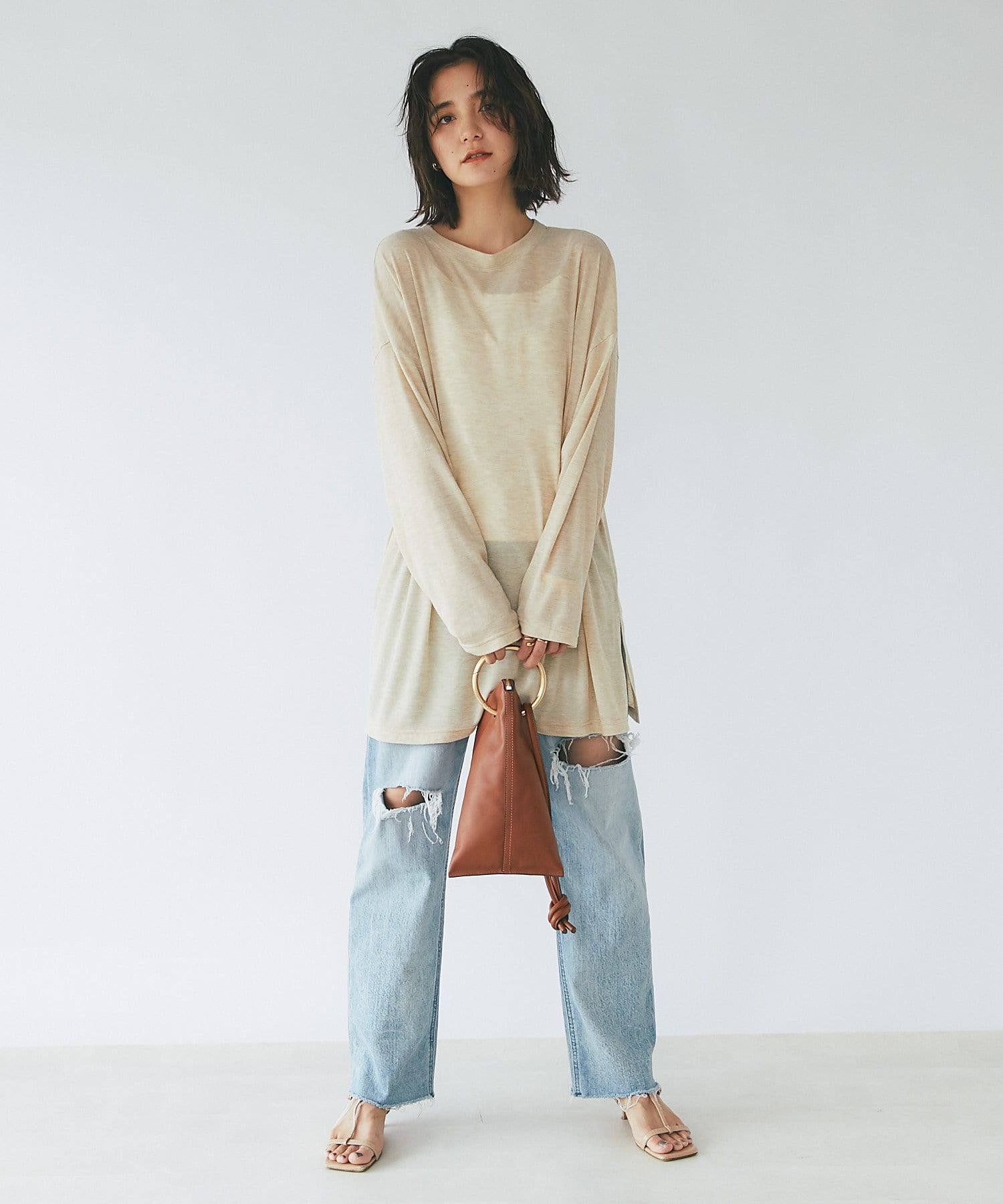 【トレンドのシアー素材】シアーオーバーロンTシャツ