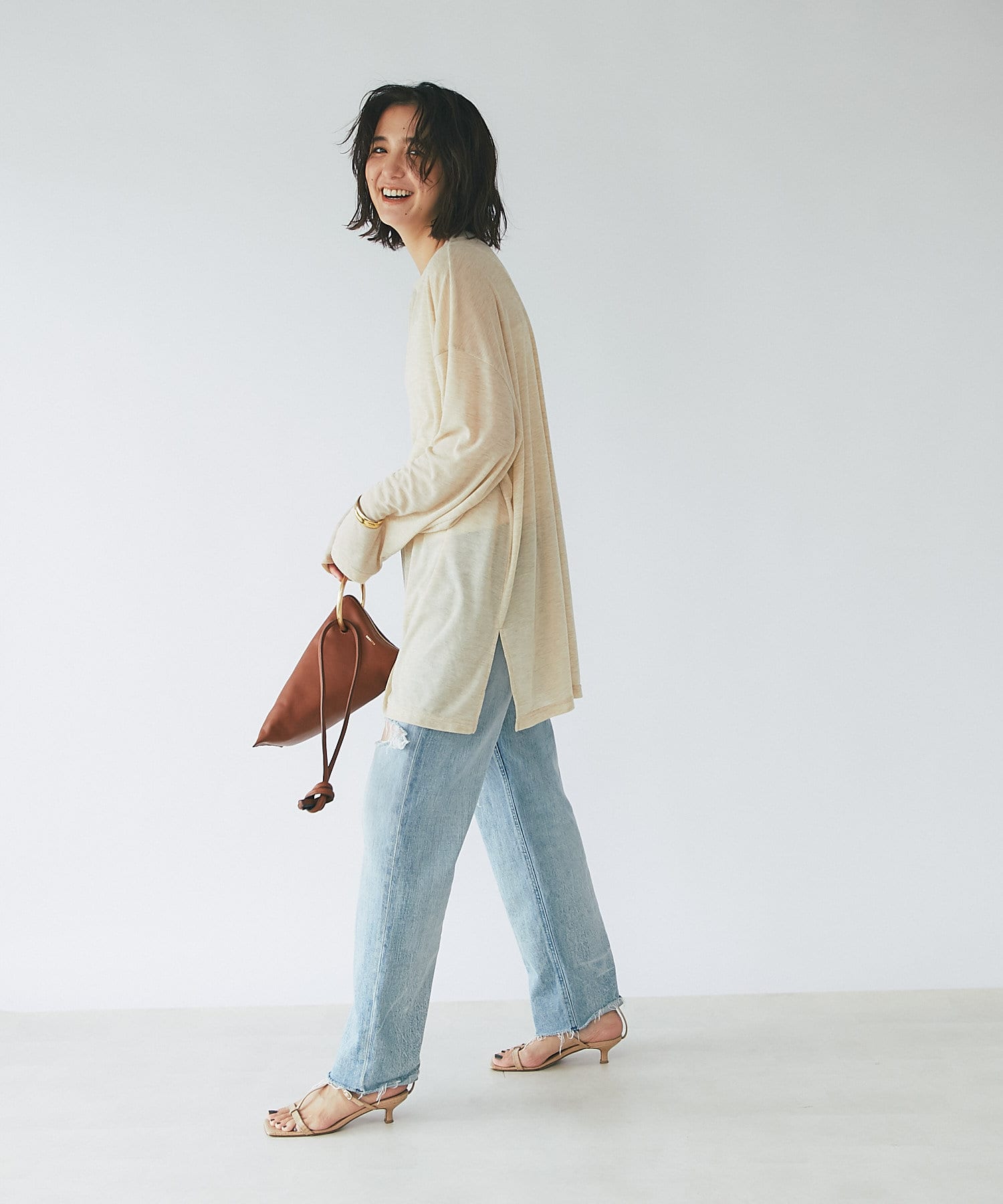 インナーにキャミソールやタンクトップを着用して透け感を楽しめます。