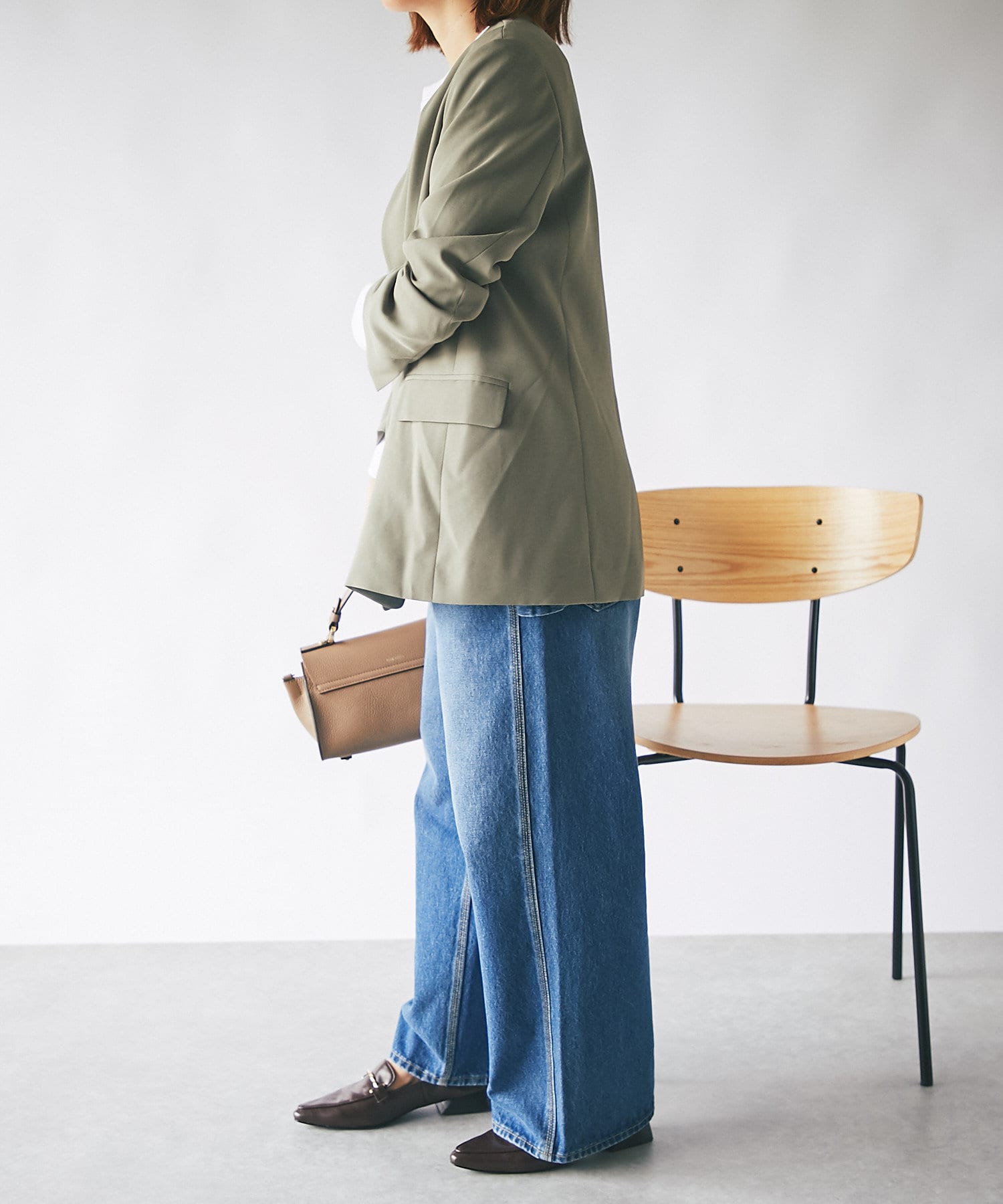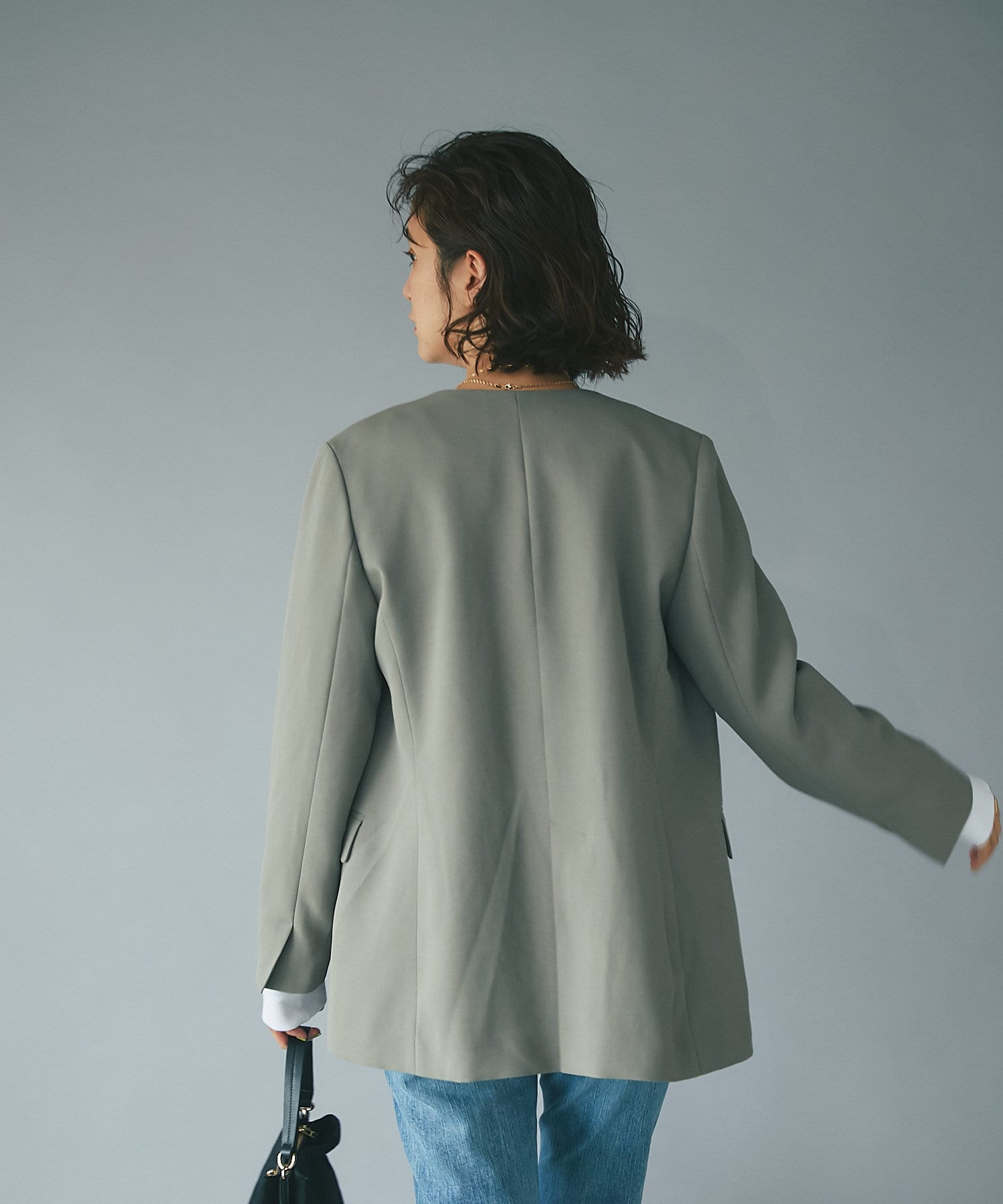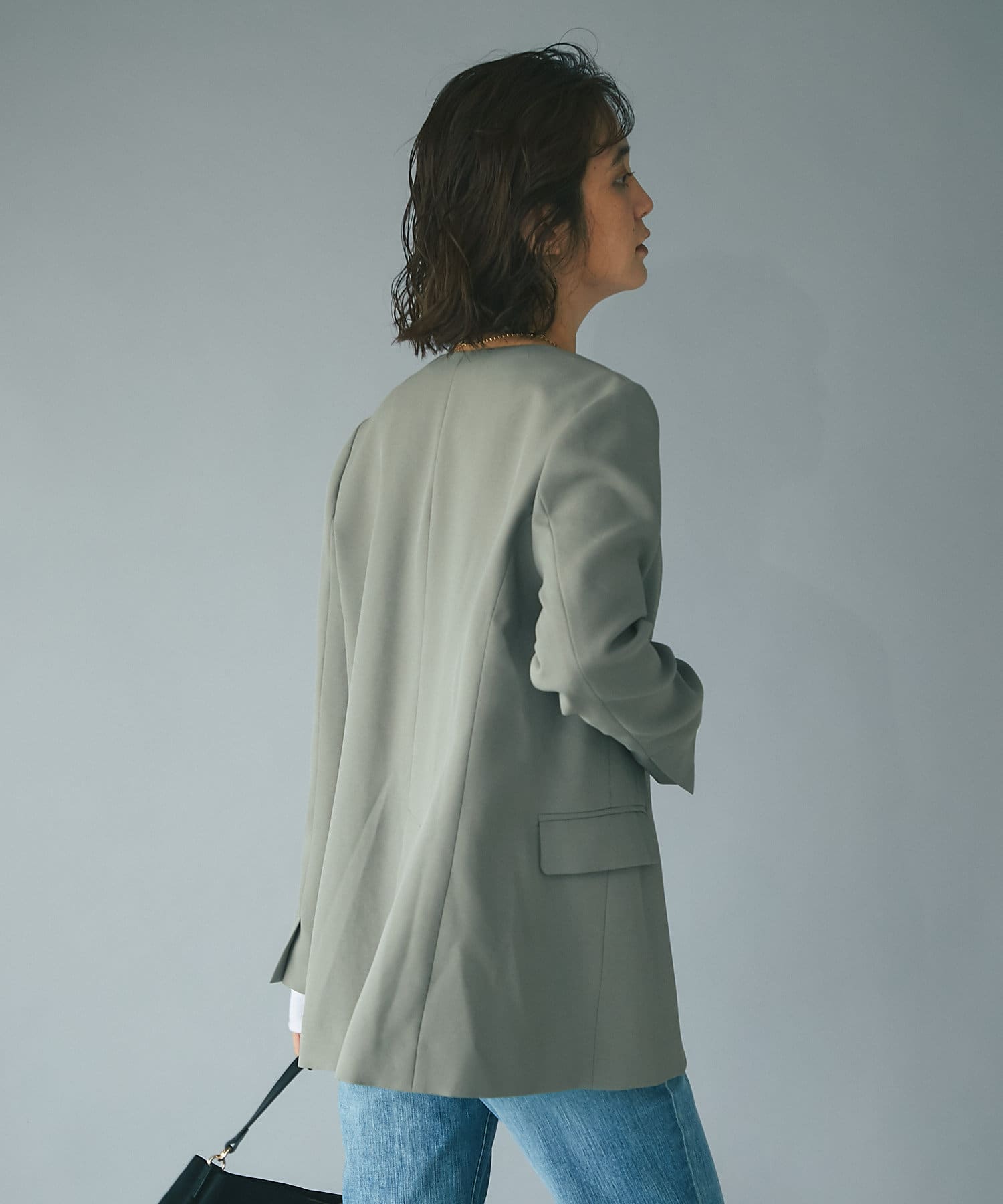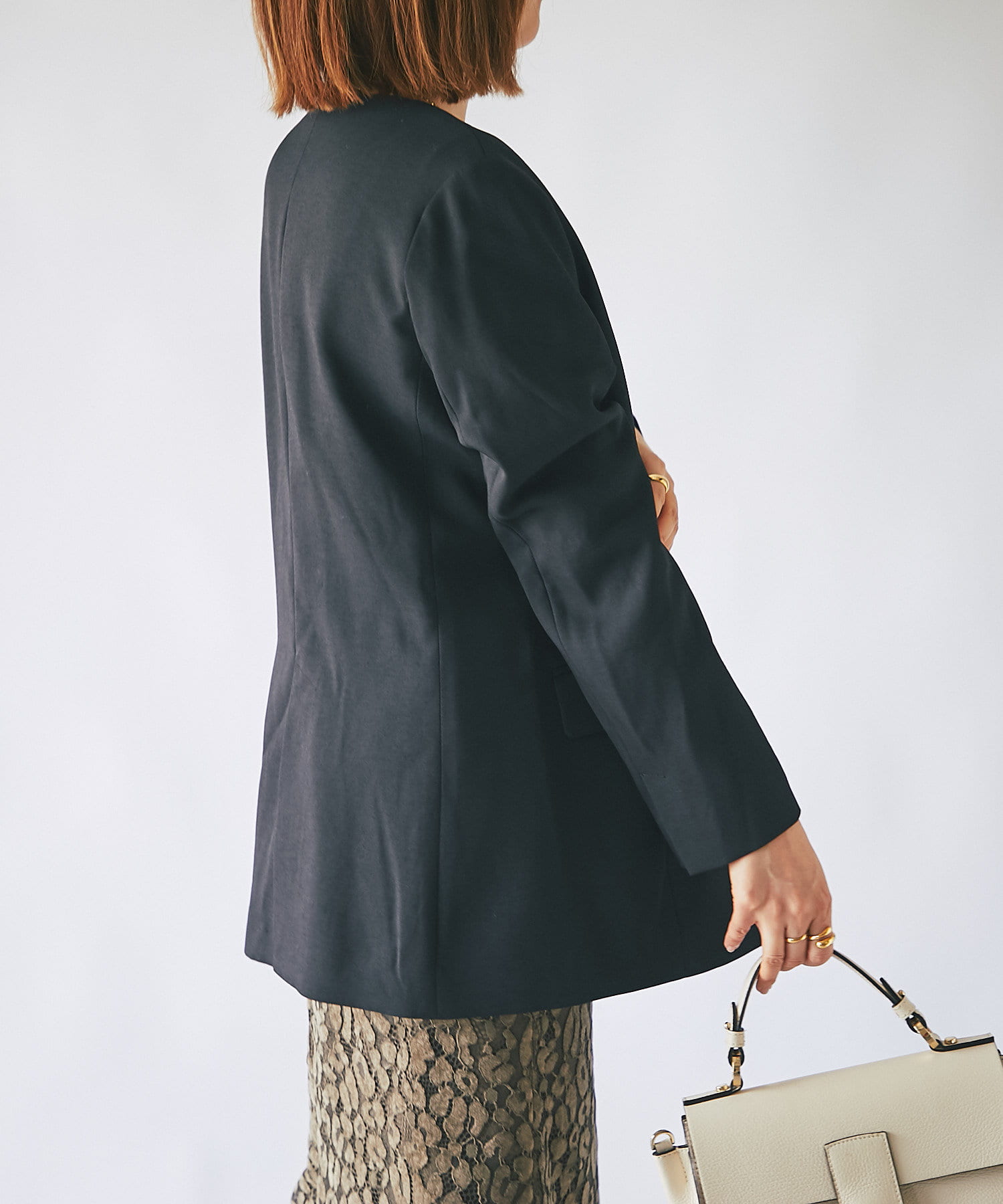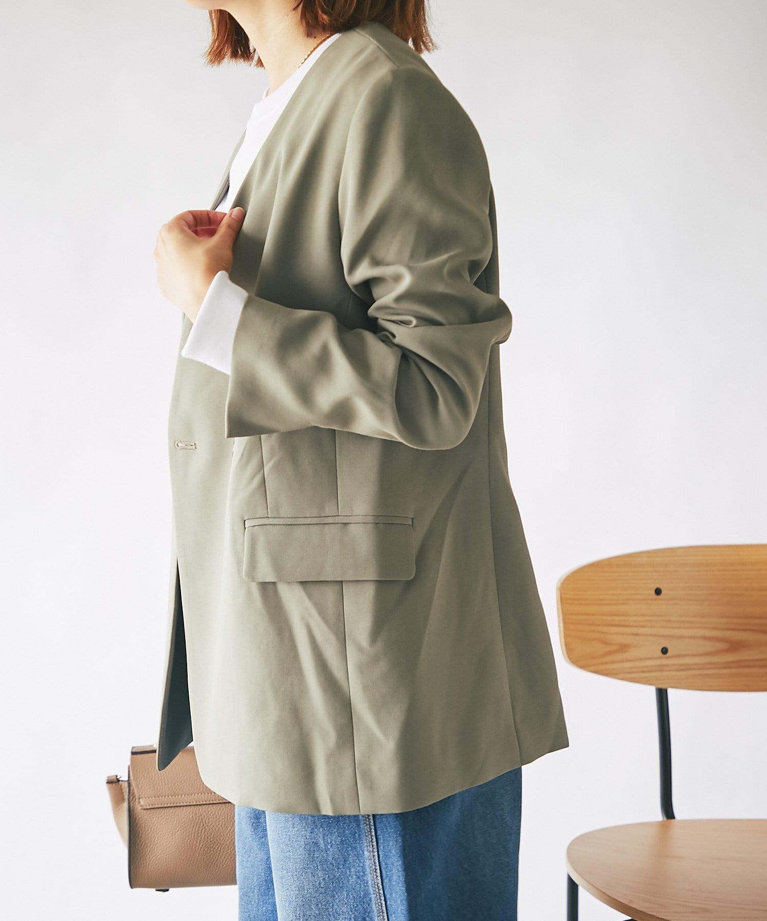 2つ釦がアクセントになり、畏まりすぎずに着ていただけるデザインです。