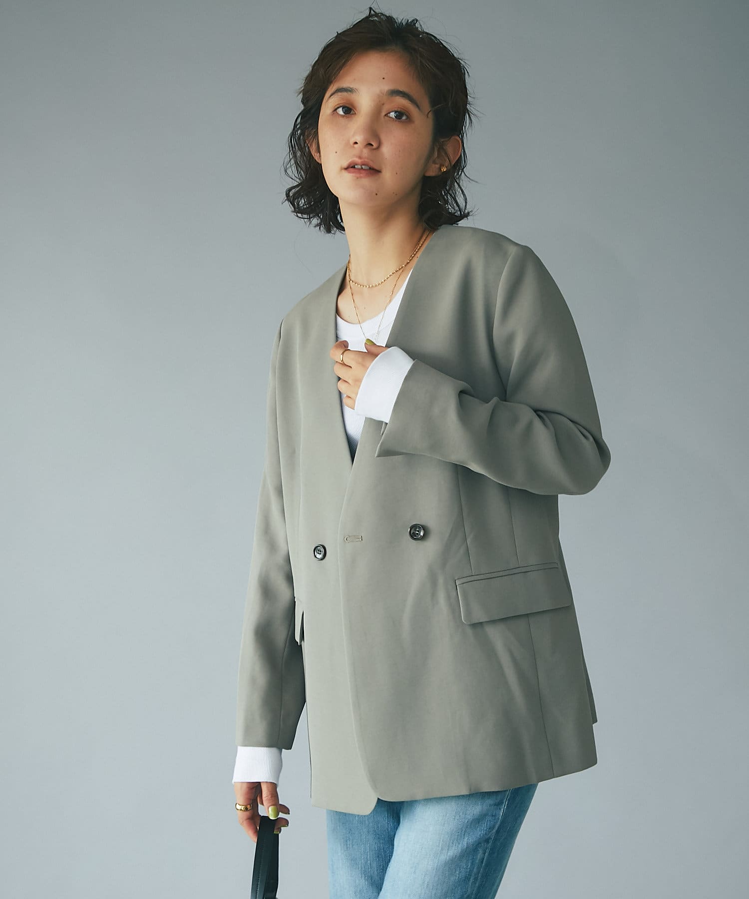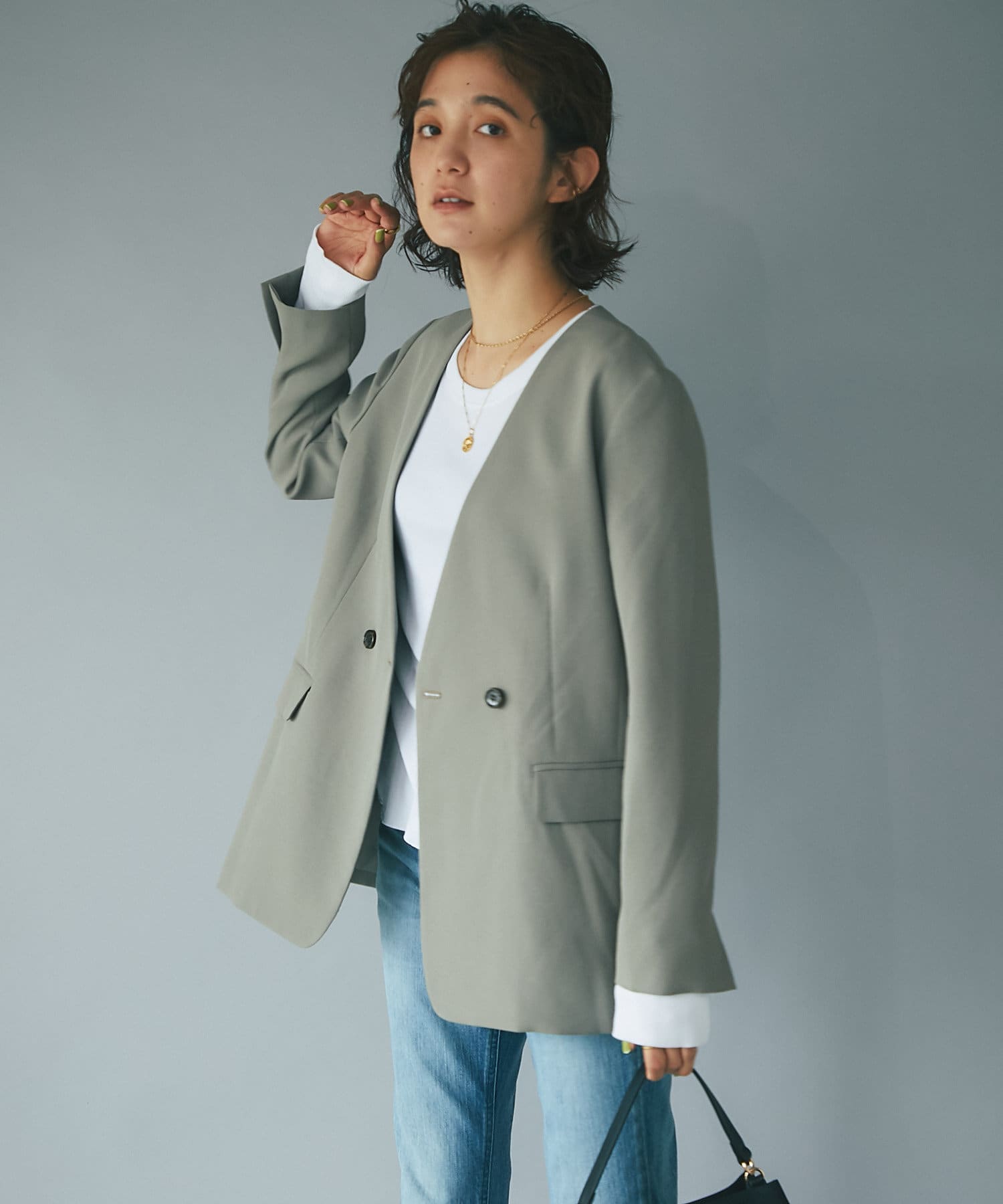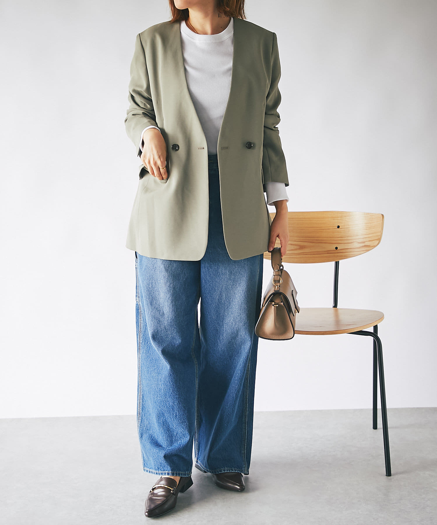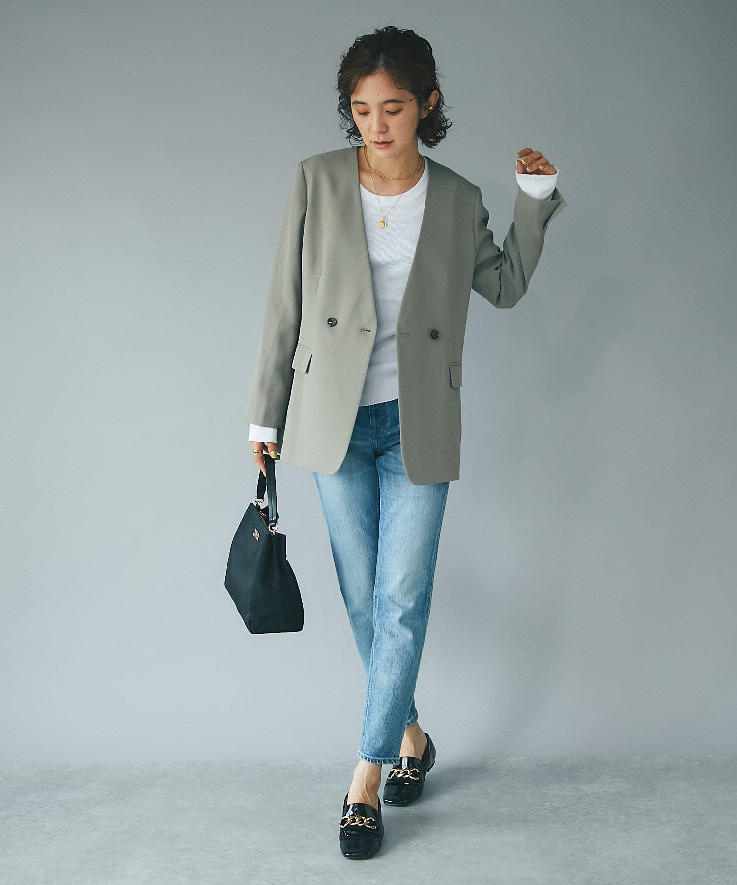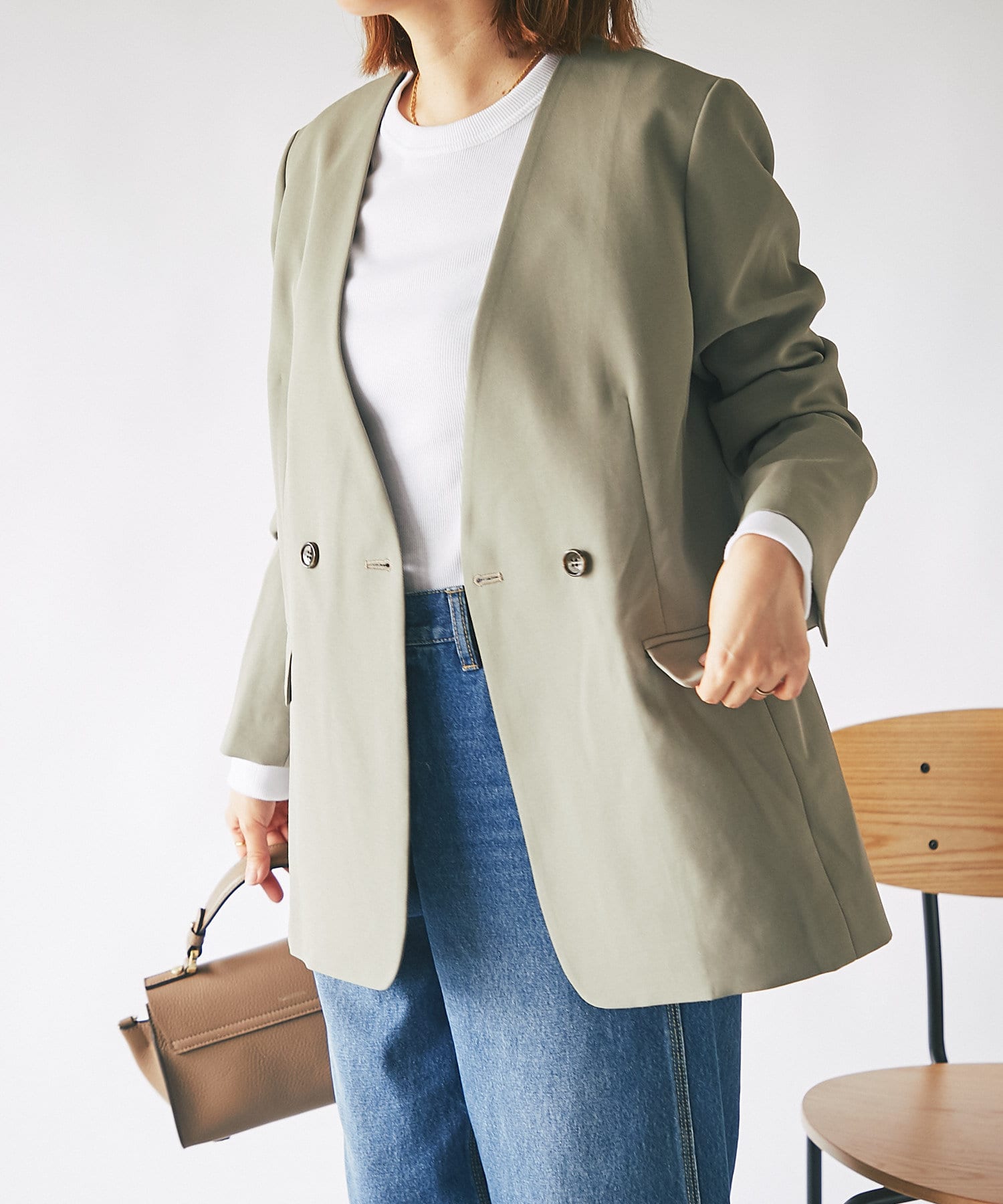 2つ釦がアクセントになり、畏まりすぎずに着ていただけるデザインです。