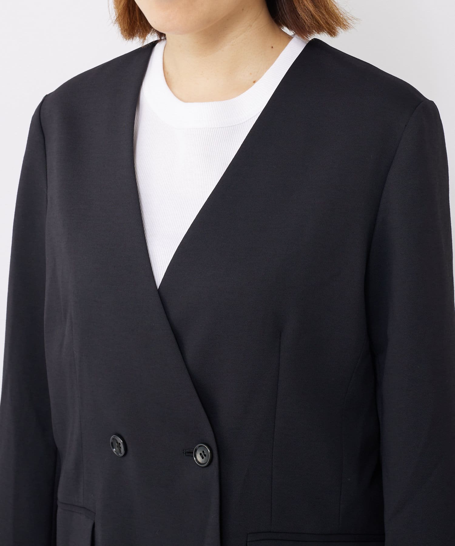 【シワになりにくい嬉しい素材】ツイルストレッチVネックジャケット