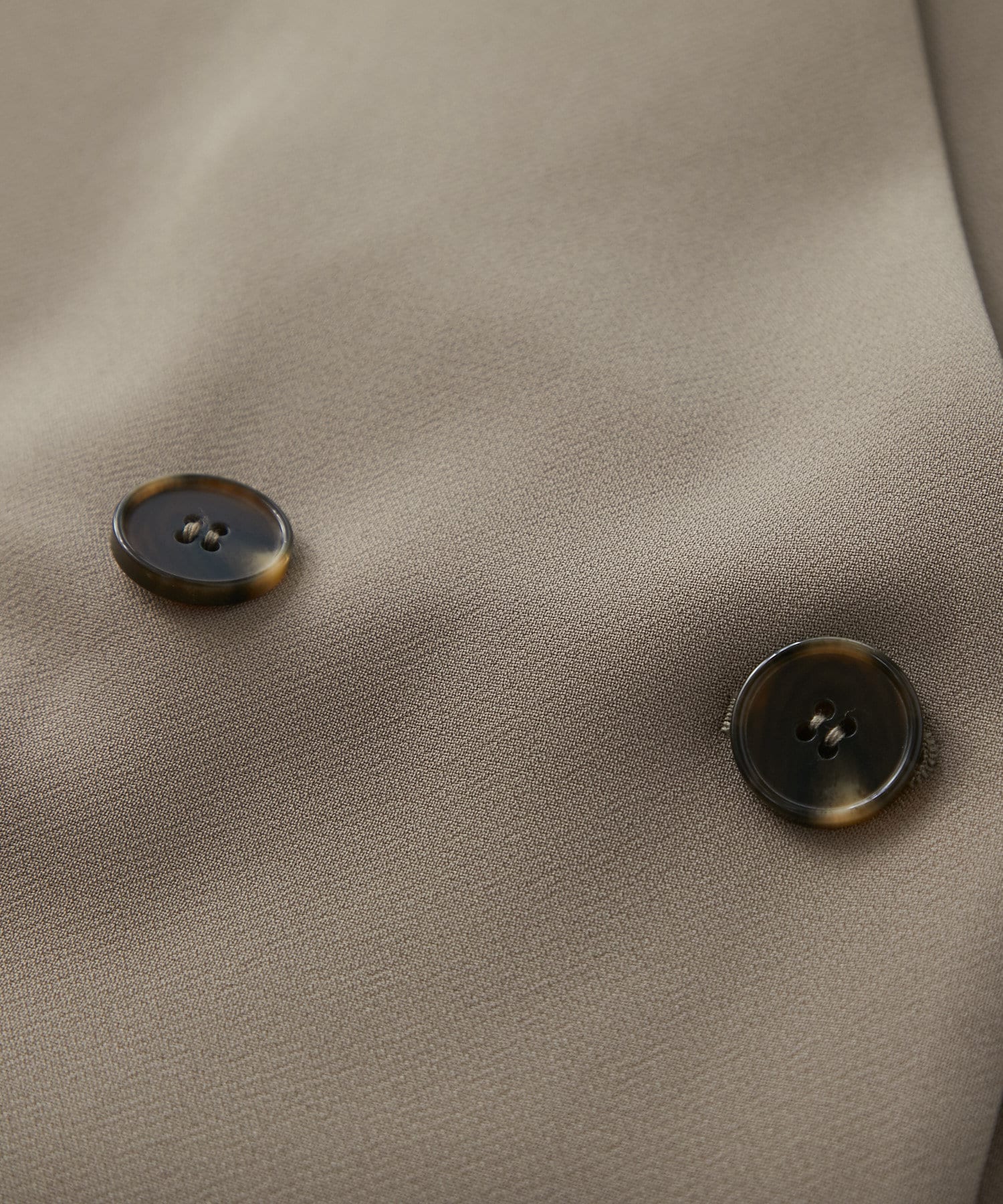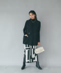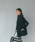 トレンド感のあるやや大きめのサイズ感ですが、衿元はノーカラーとスッキリしており、縦長効果もあるので細見えします。