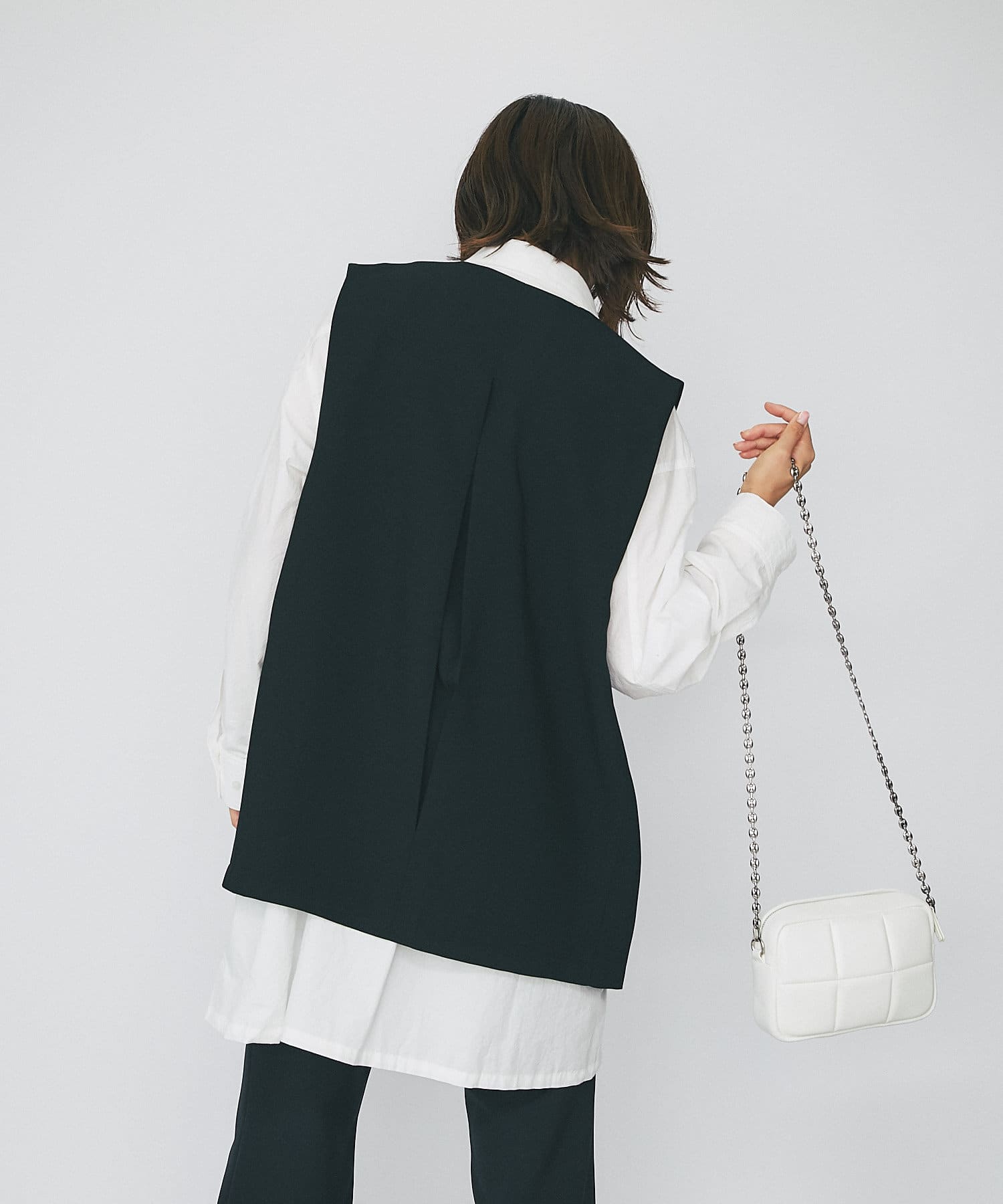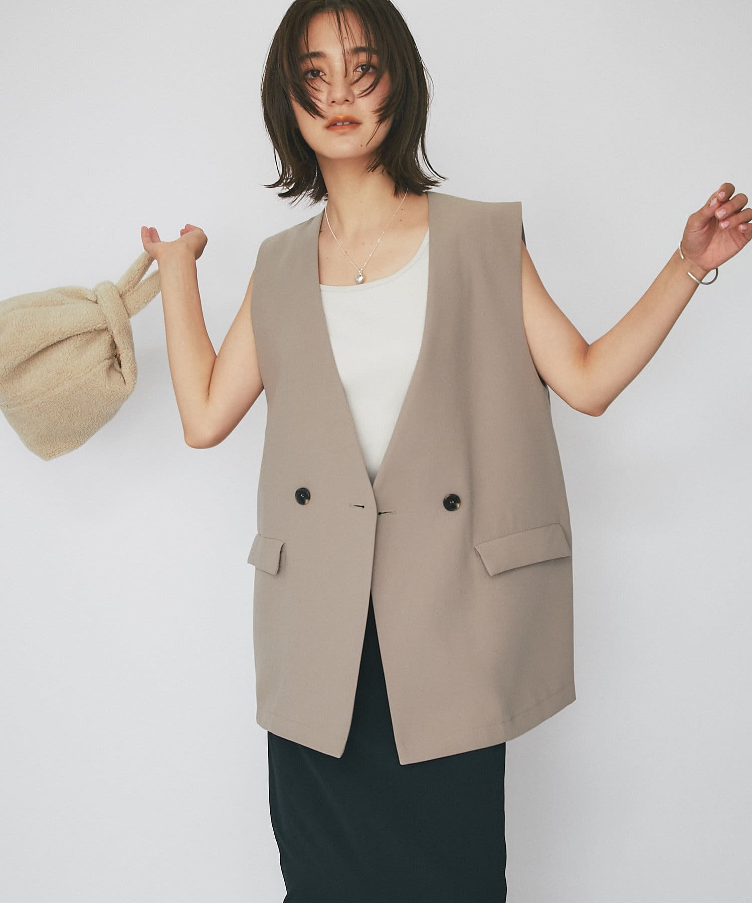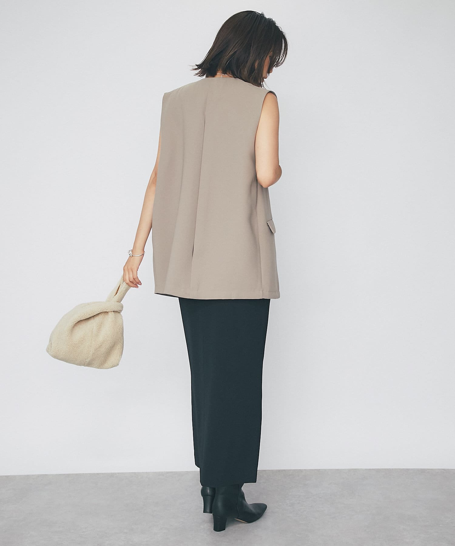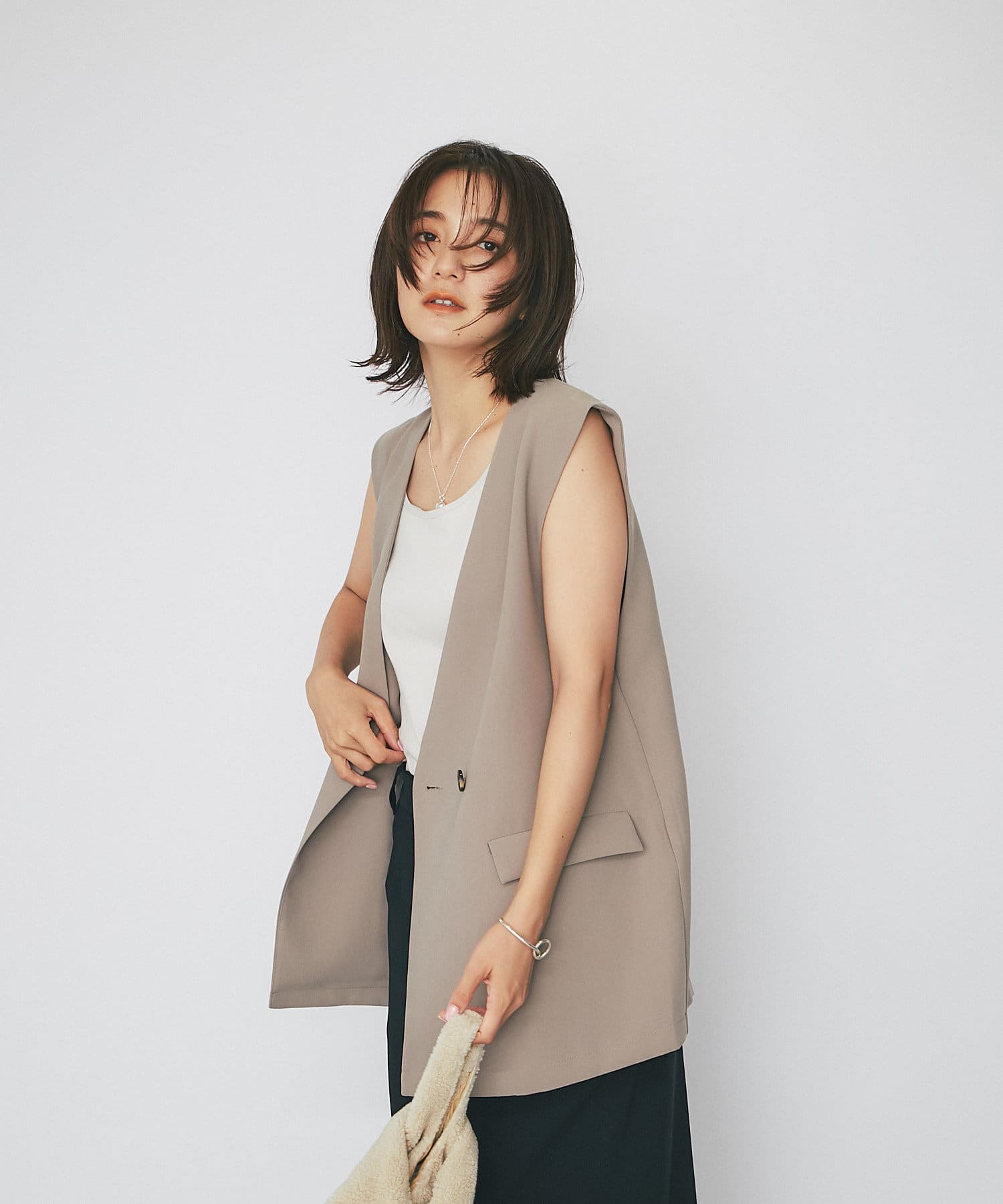 程よくオーバーなシルエットで大人な印象のノーカラーベスト。