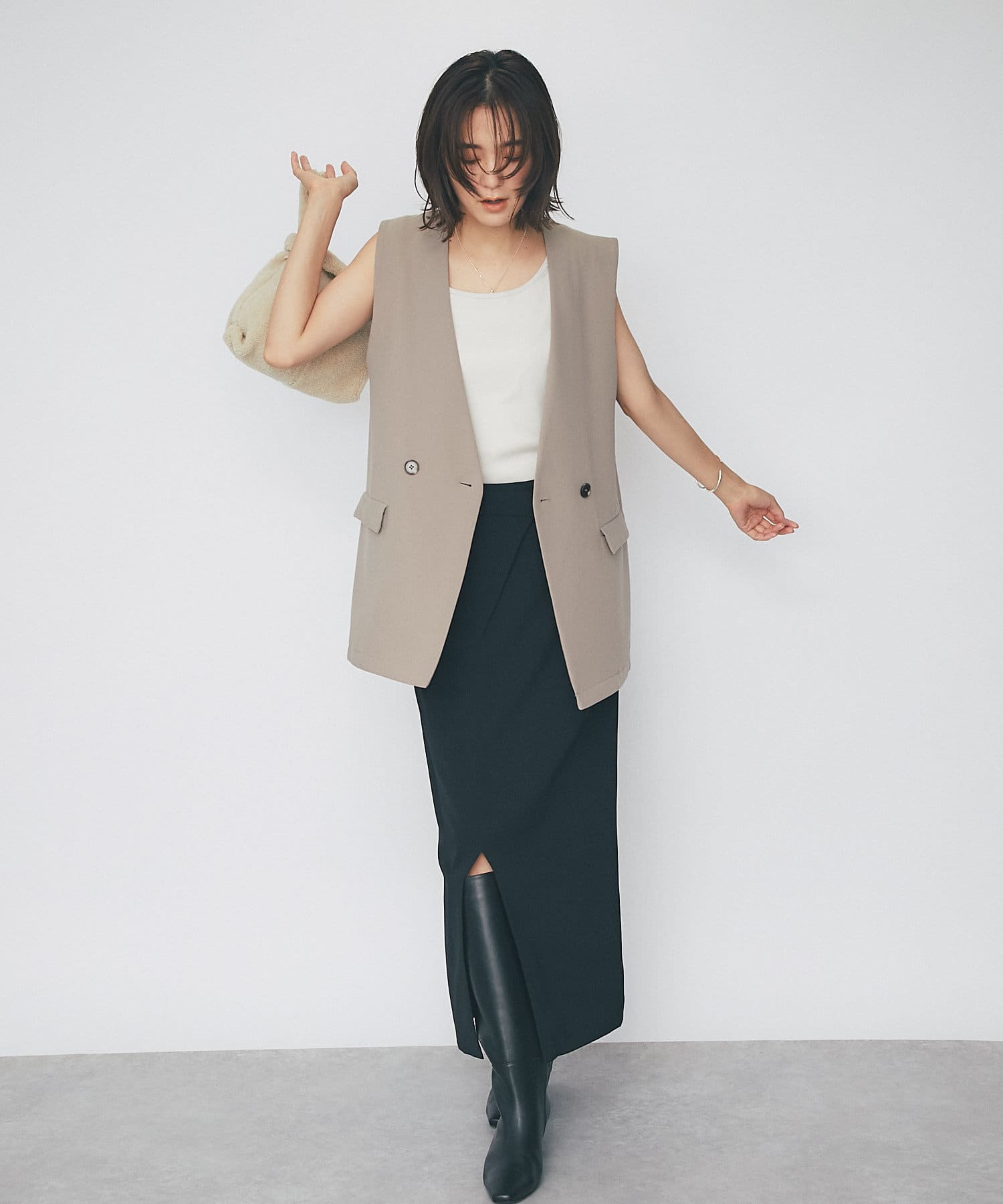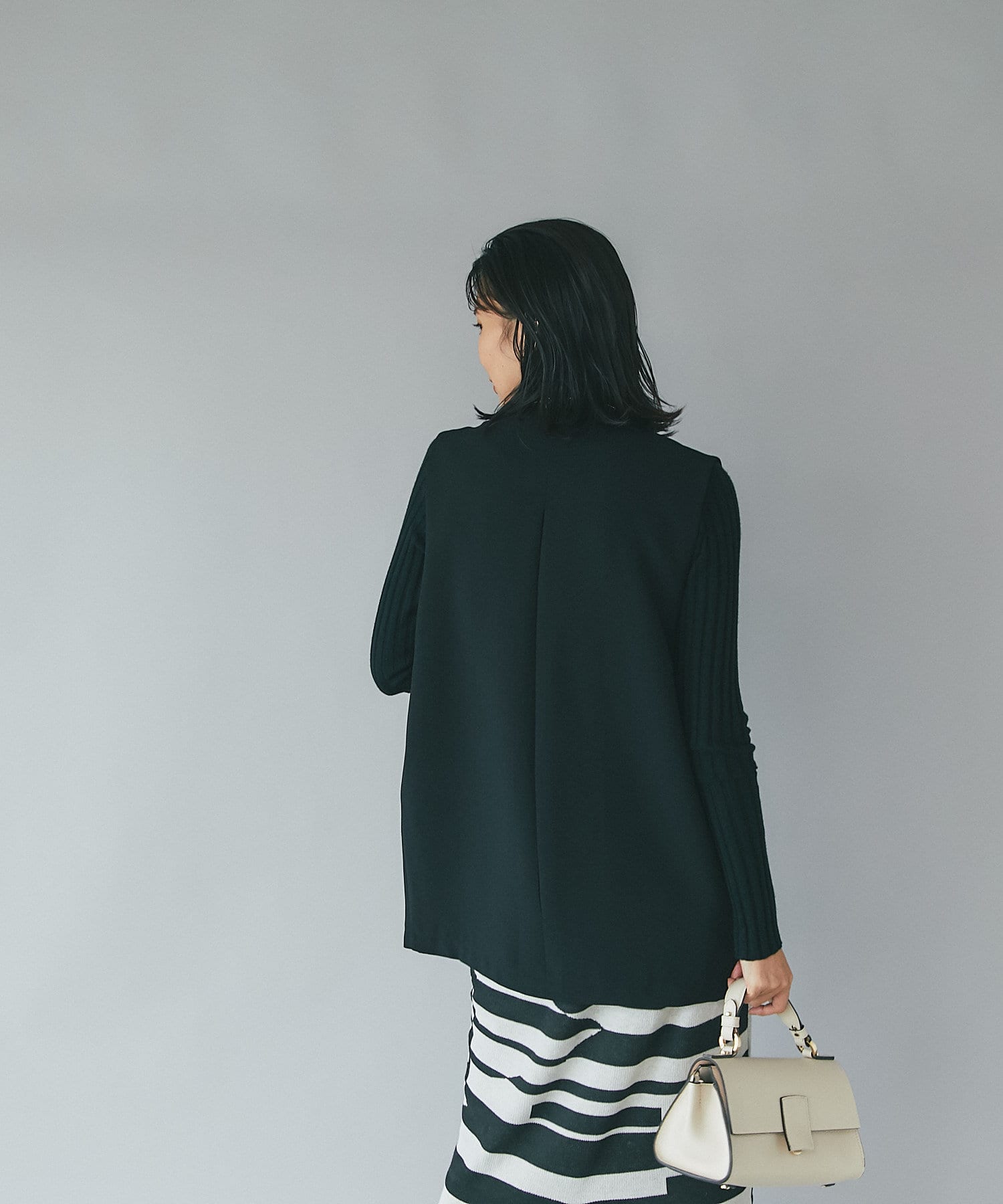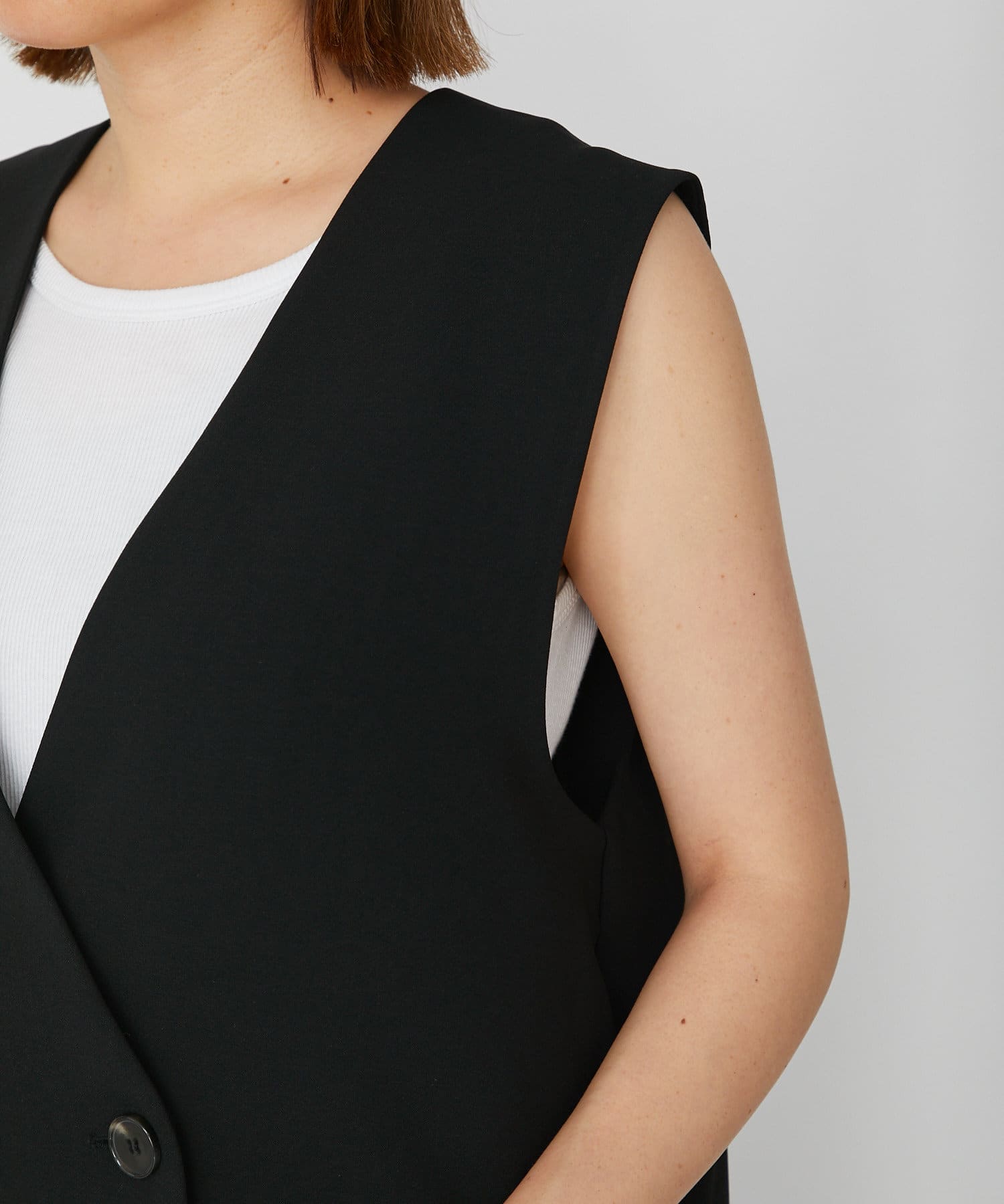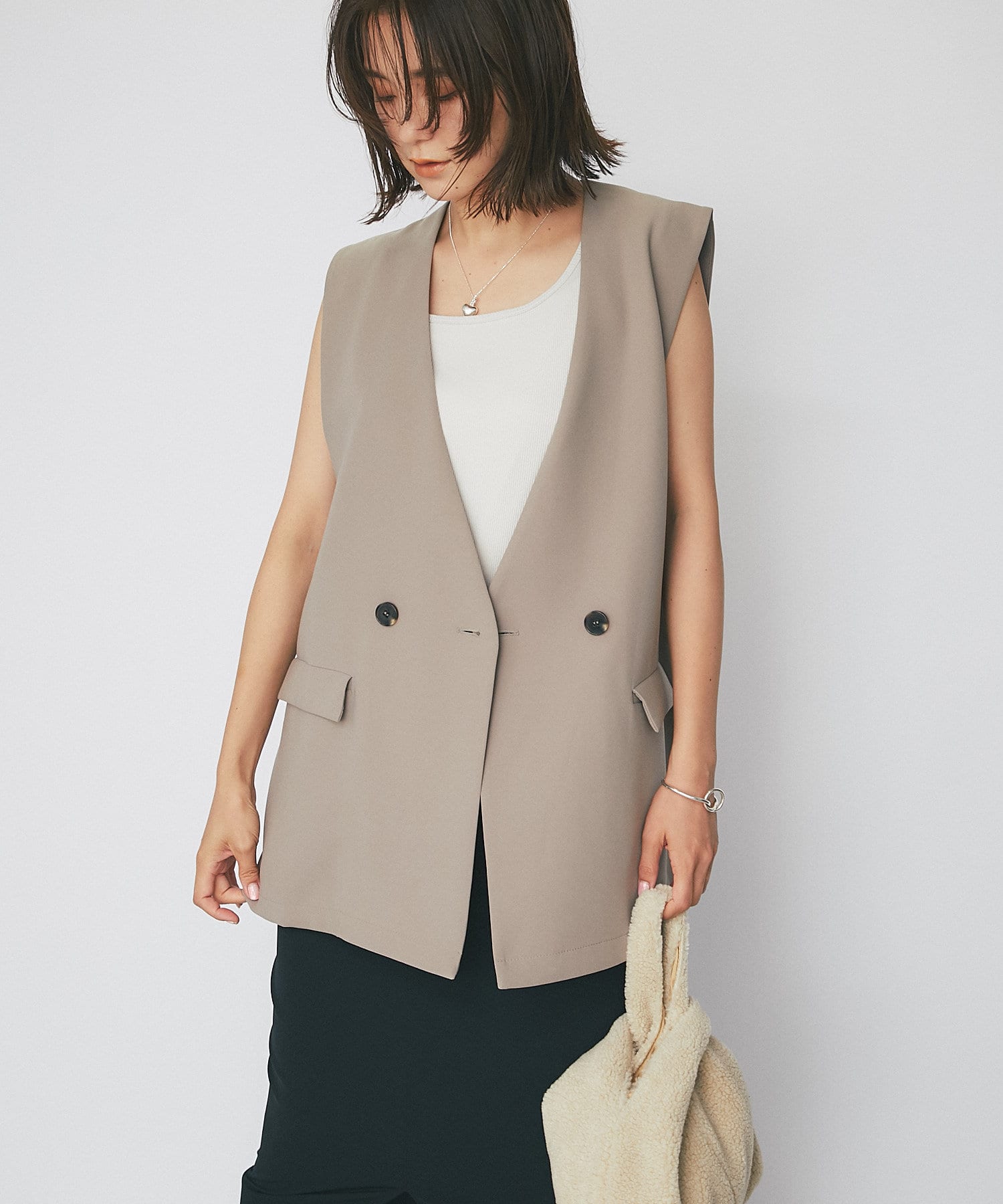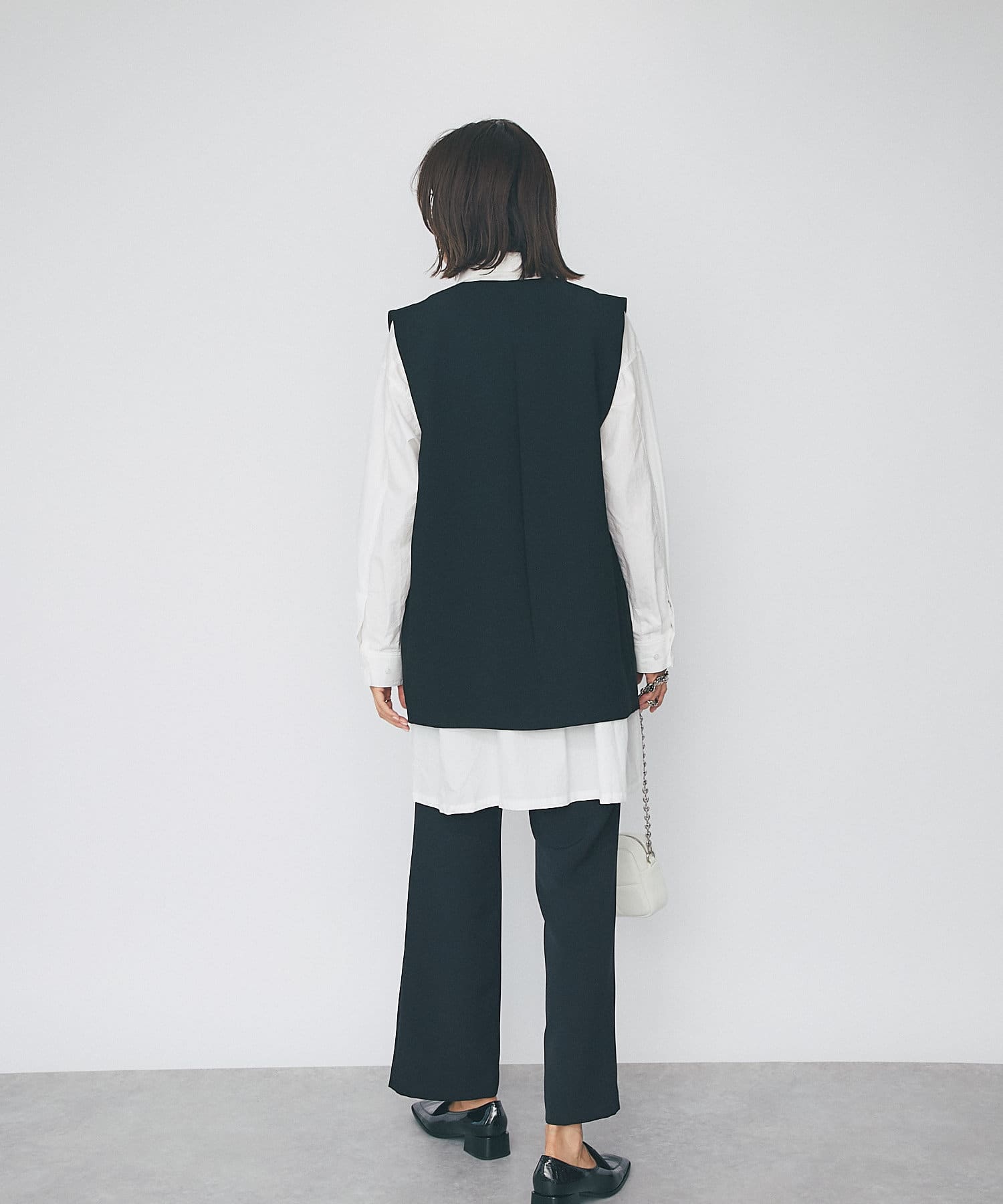 程よくオーバーなシルエットで大人な印象のノーカラーベスト。