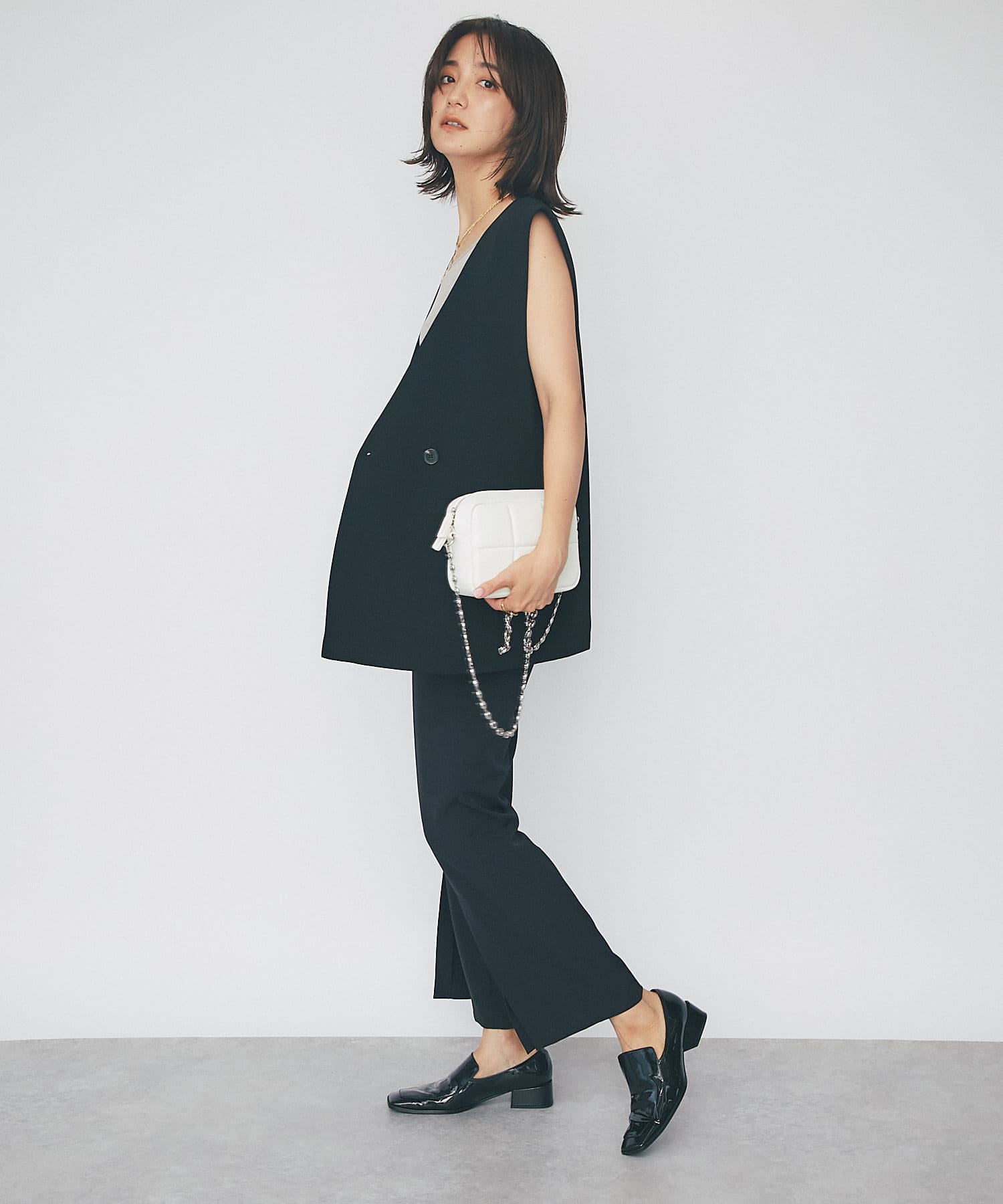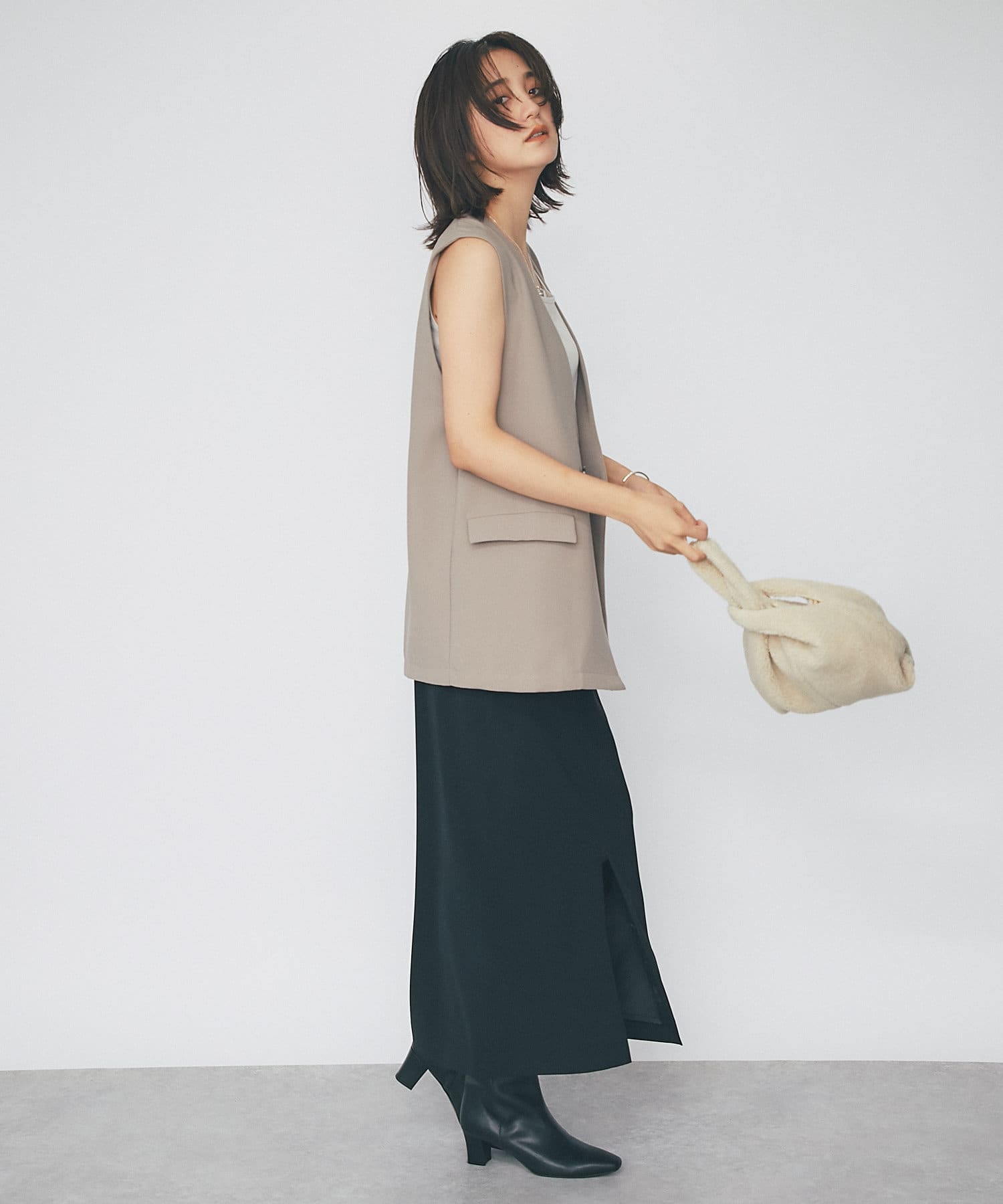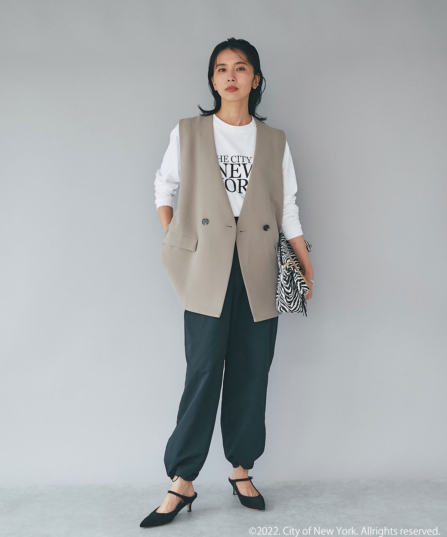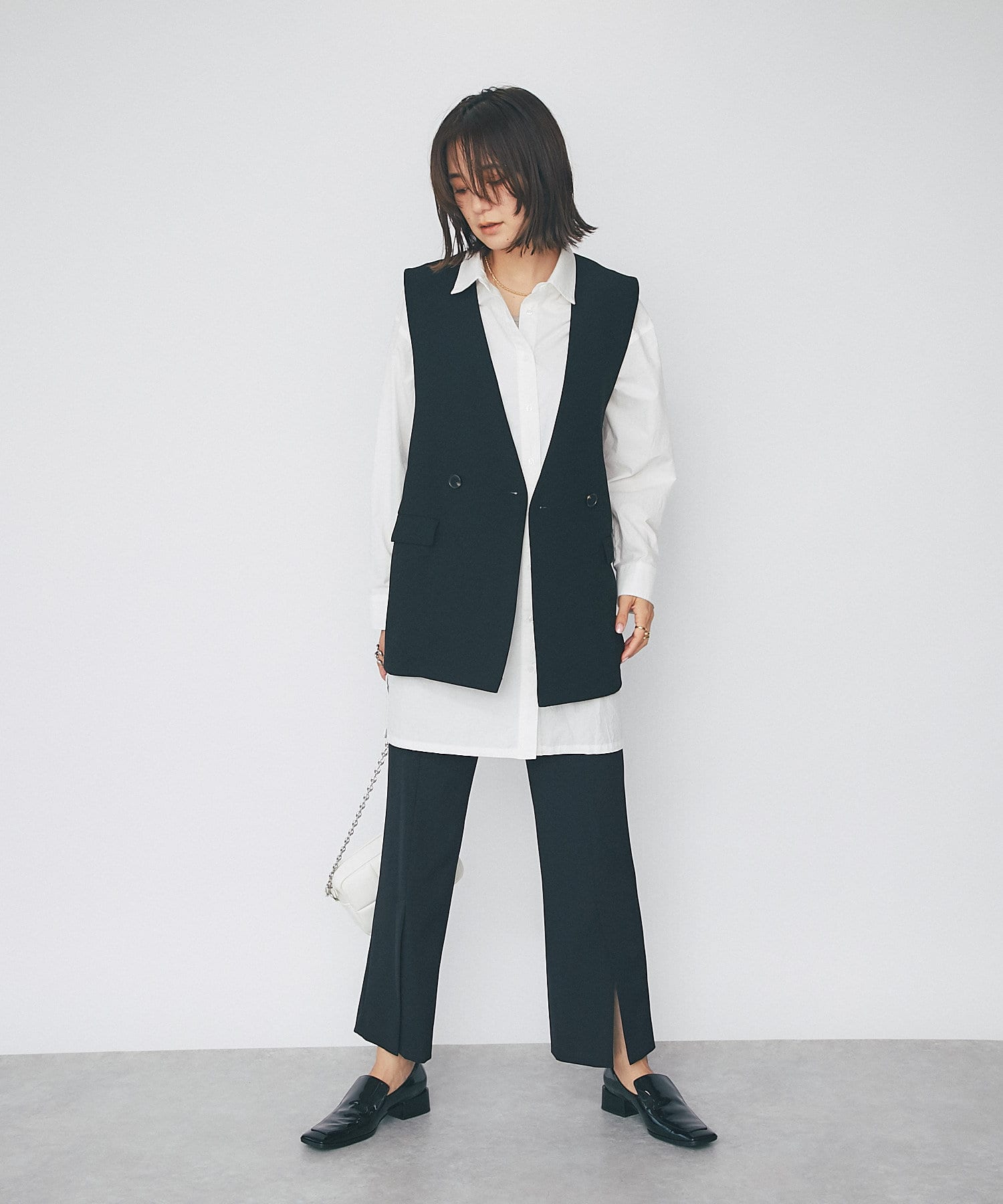 程よくオーバーなシルエットで大人な印象のノーカラーベスト。
