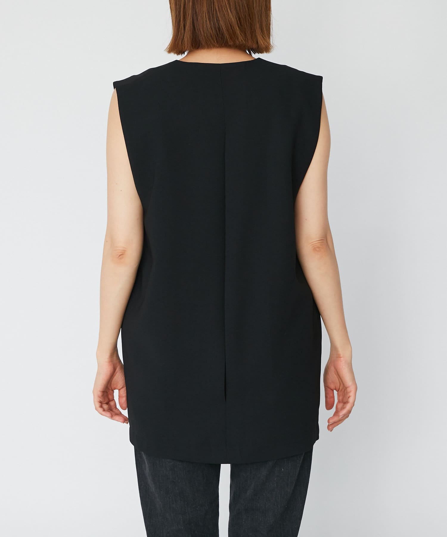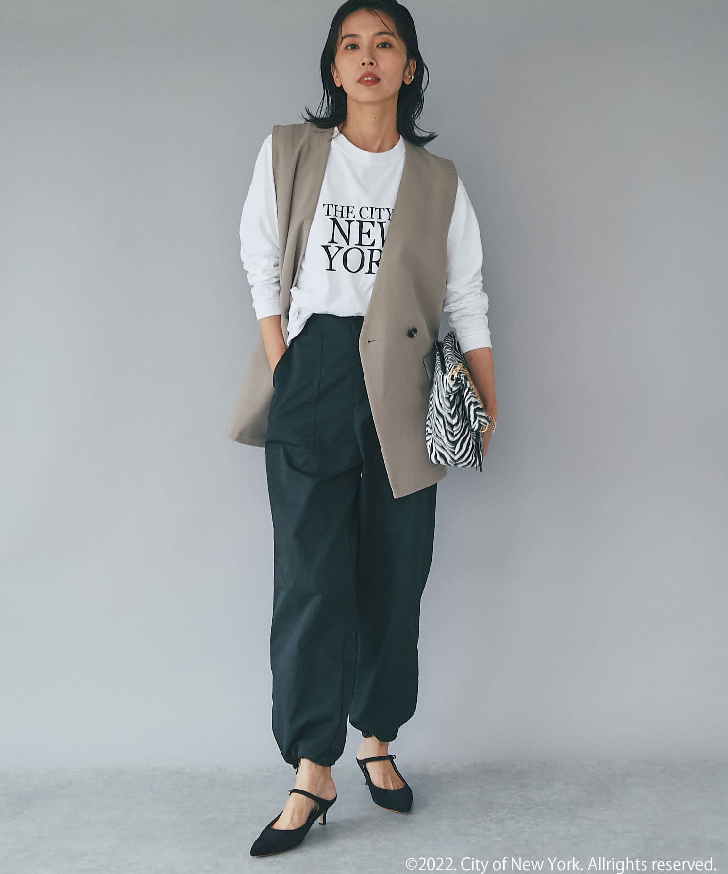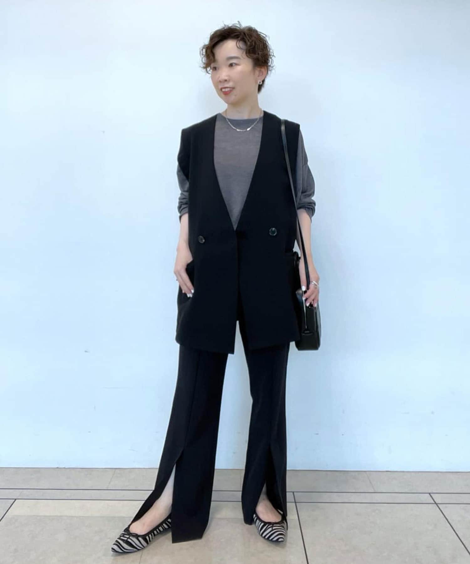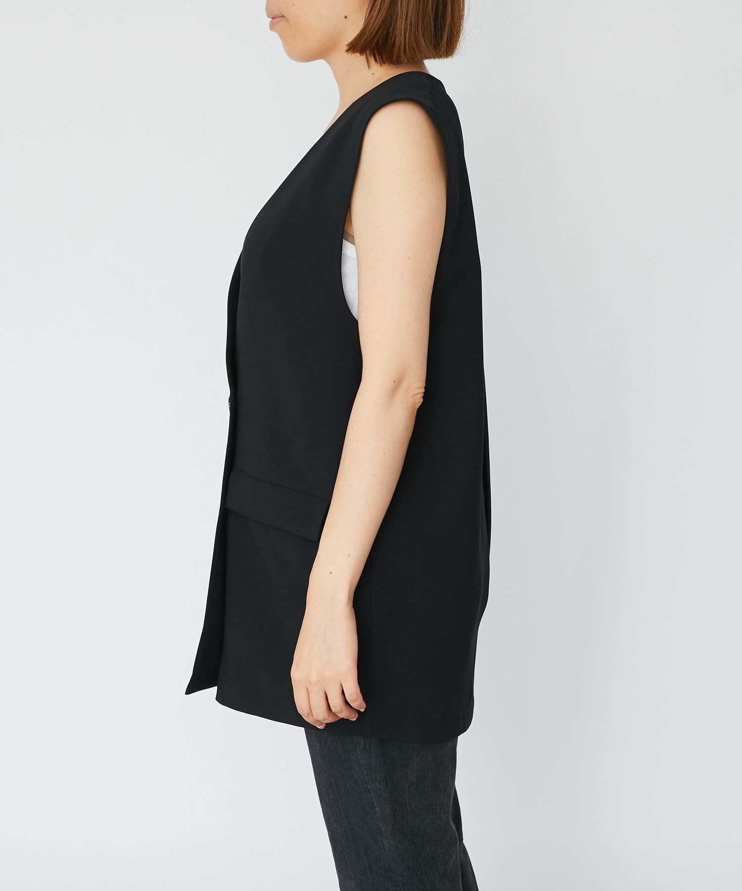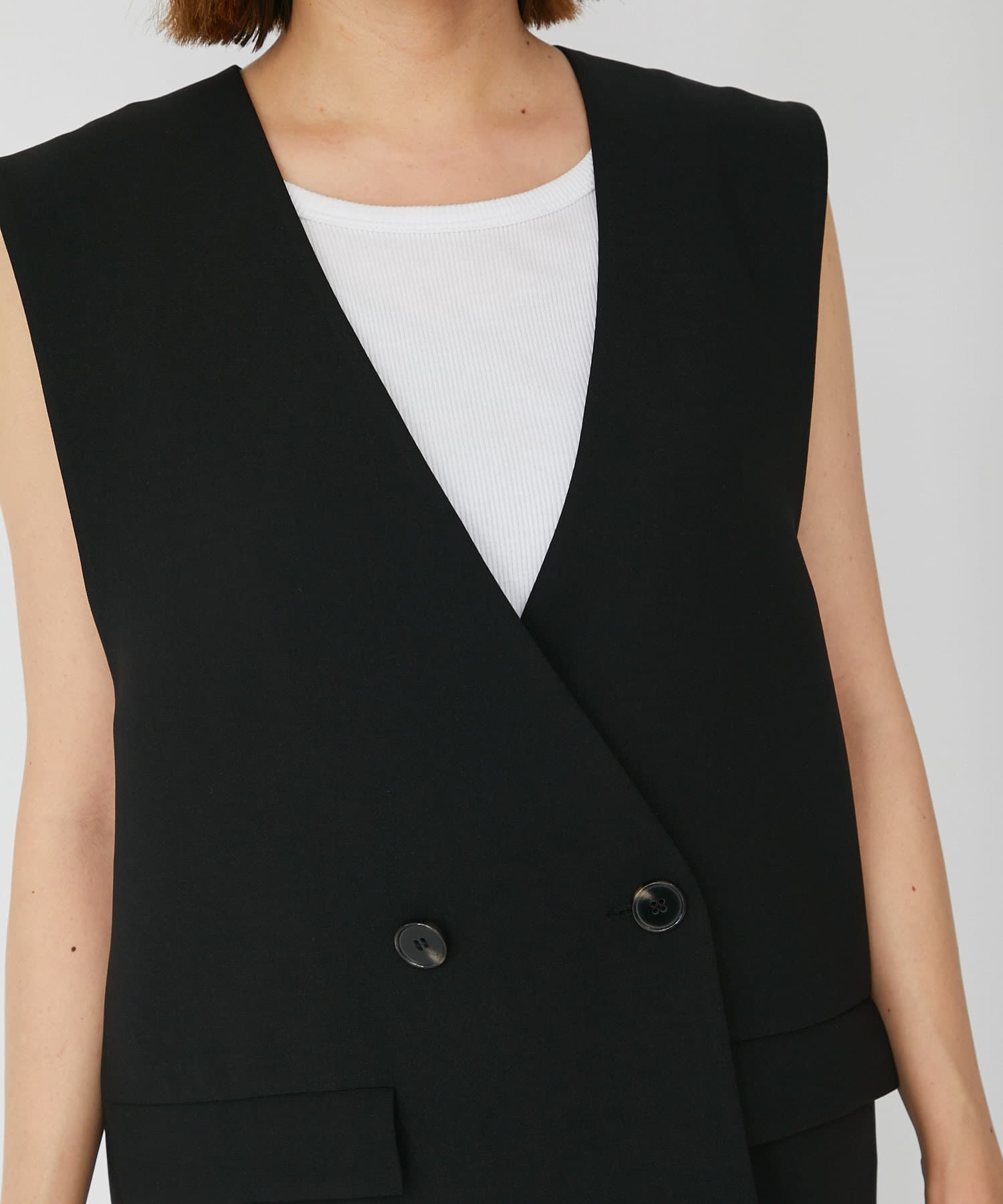 程よくオーバーなシルエットで大人な印象のノーカラーベスト。