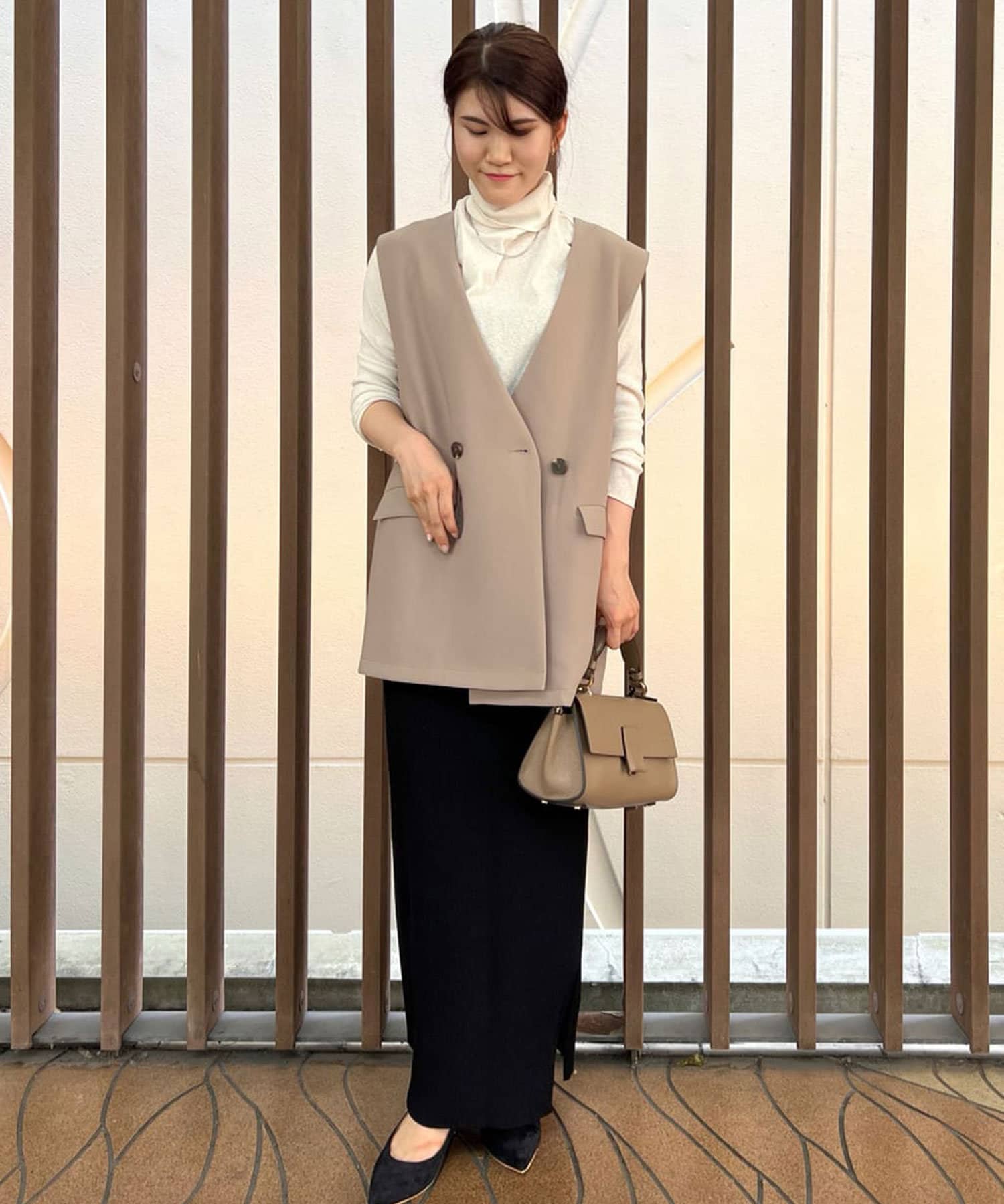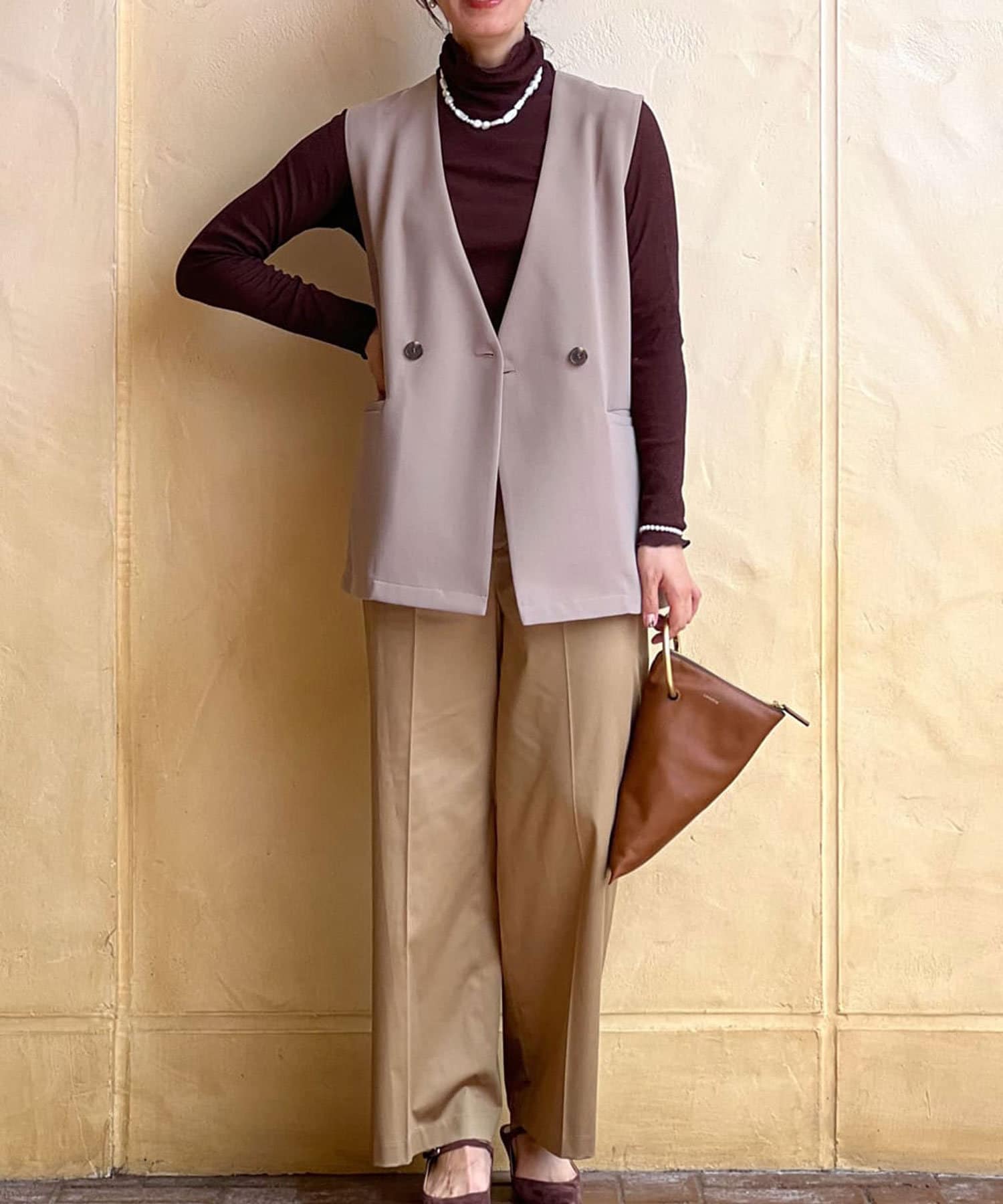 インナー次第で長く着ていただけるので、冬はタートルネックなどの温かみがある素材で合わせると◎