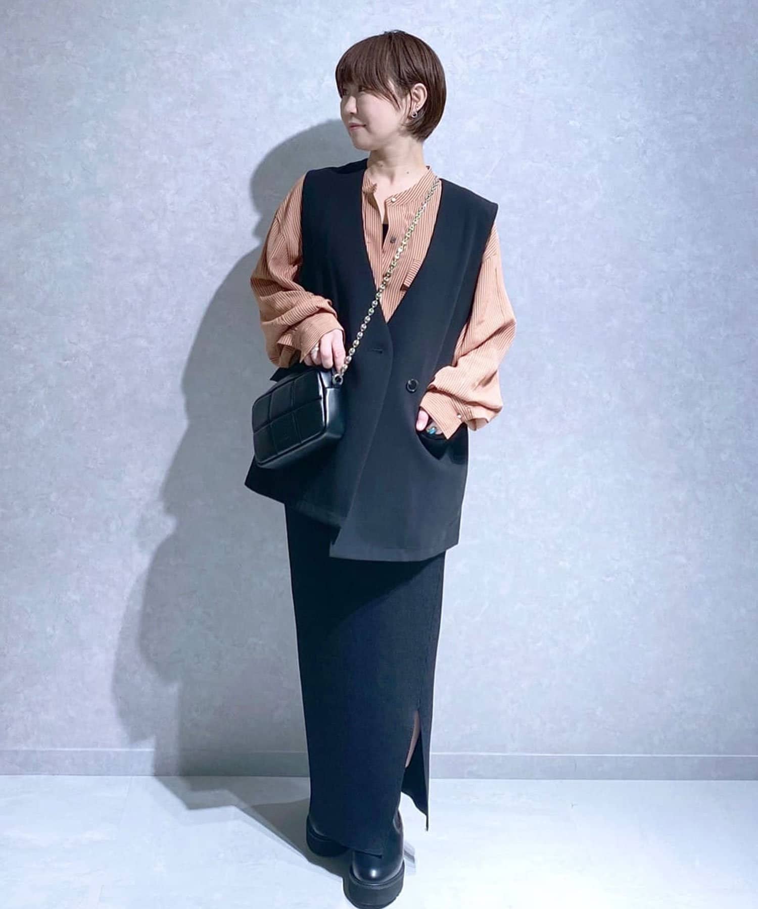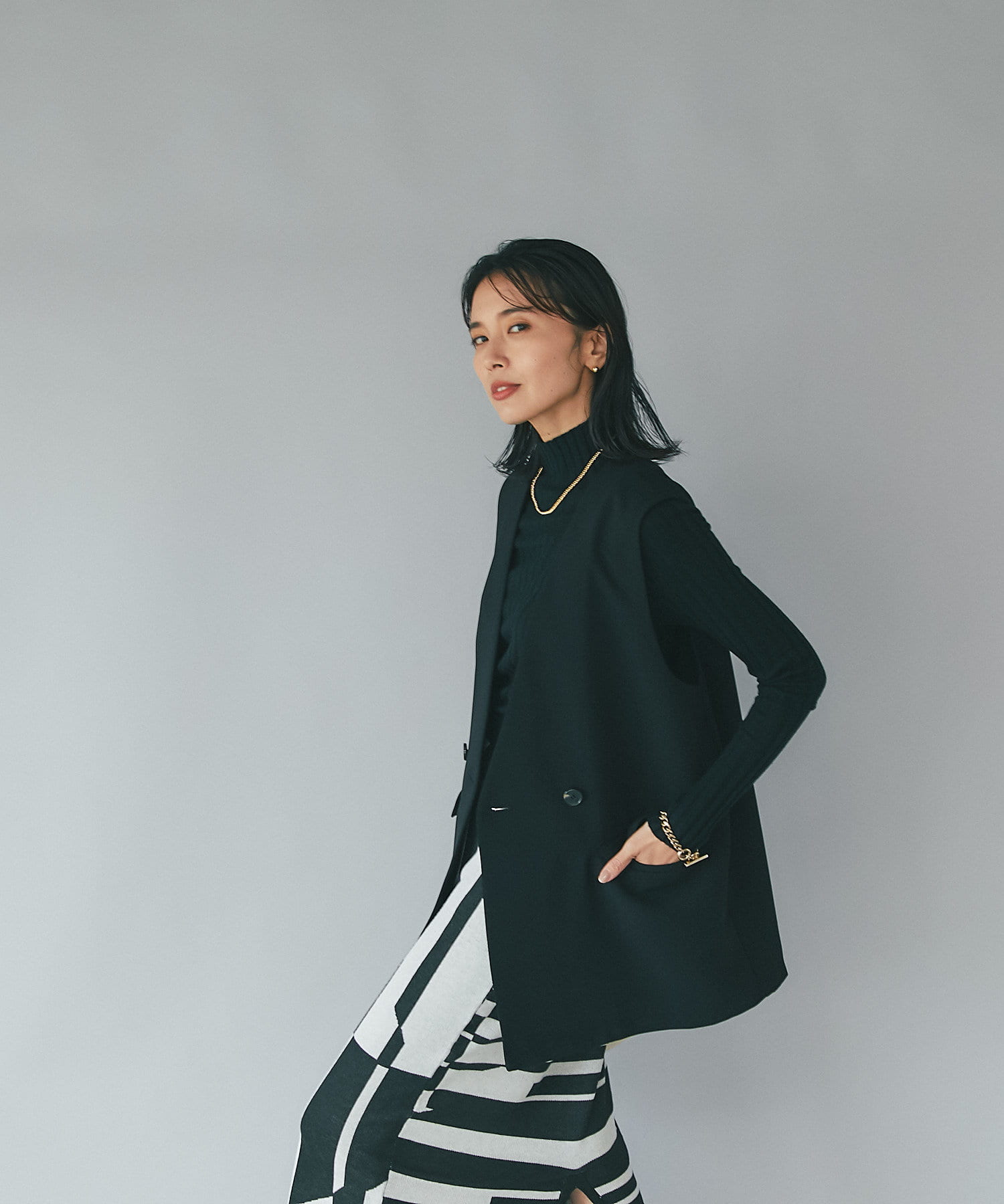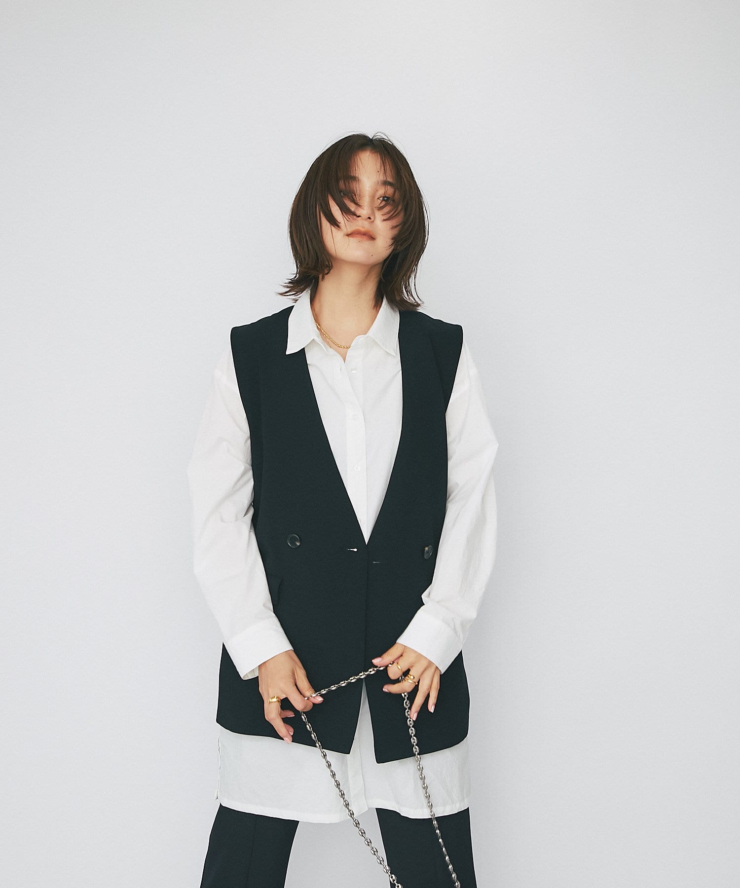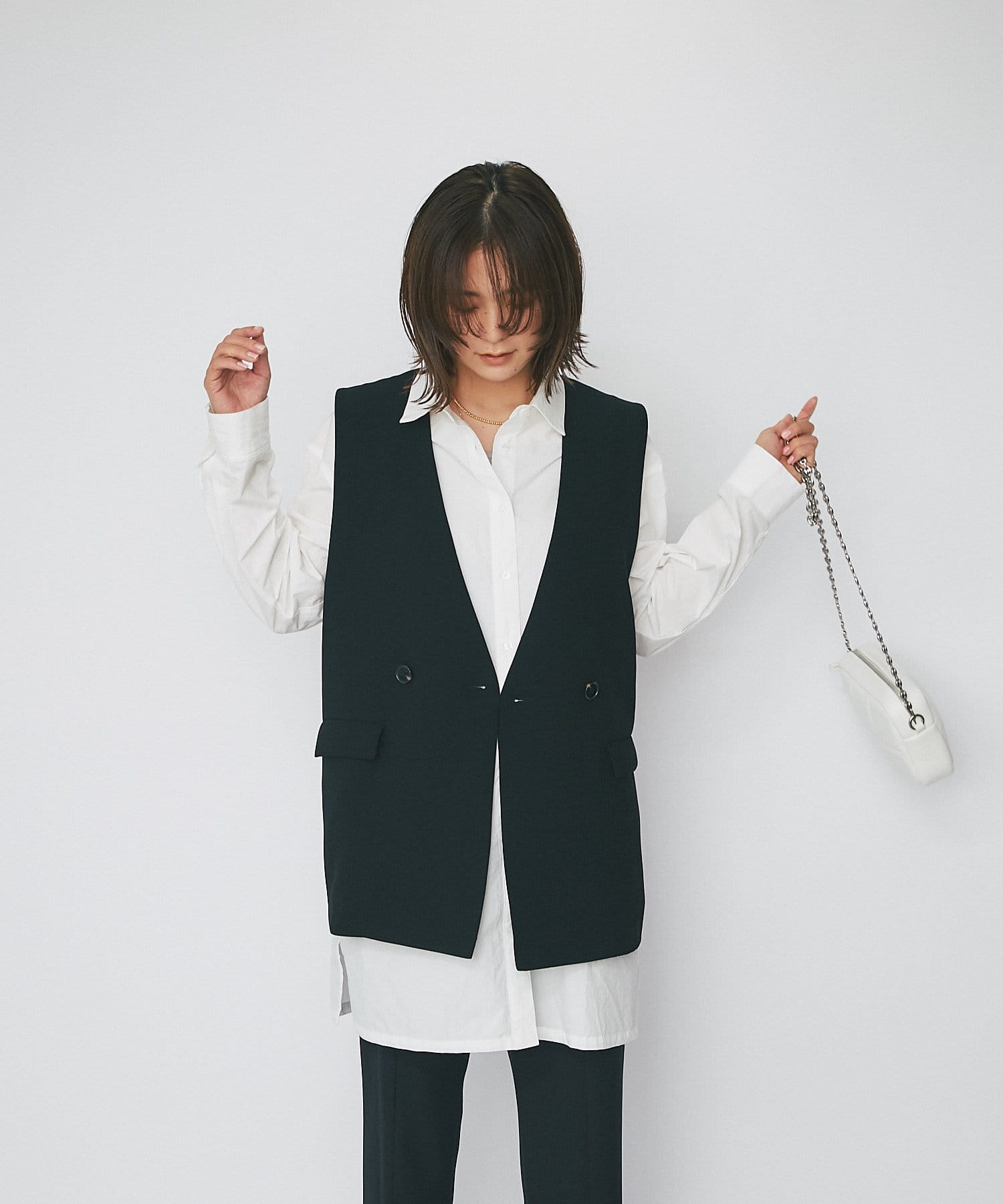 【トレンドライクな着こなしに欠かせない!】ノーカラーオーバーベスト