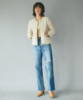 定番のデニムでもバランスよく着用でき、ワンピースやフレアスカートなどのエレガントな着こなしにもマッチする一枚です。