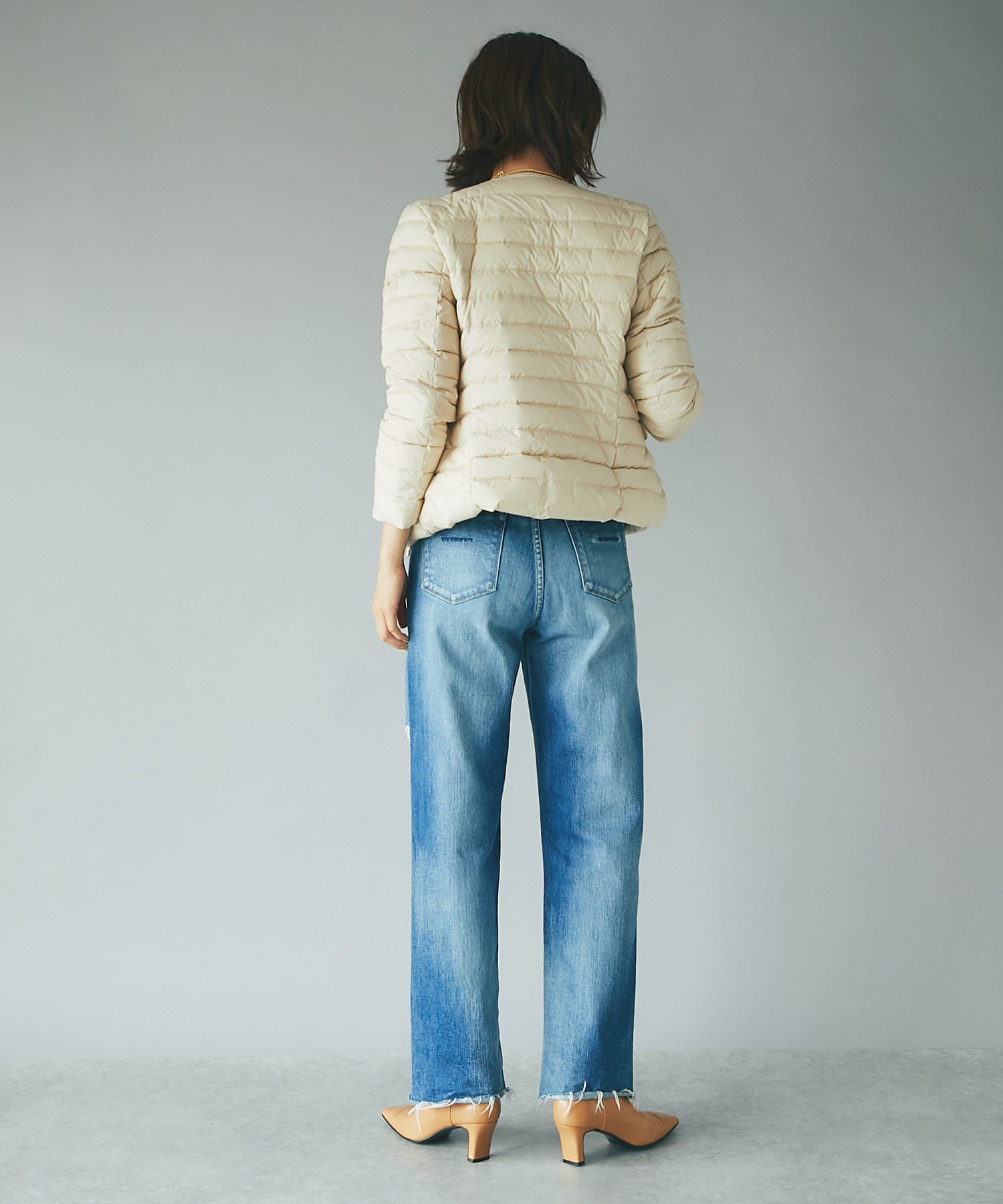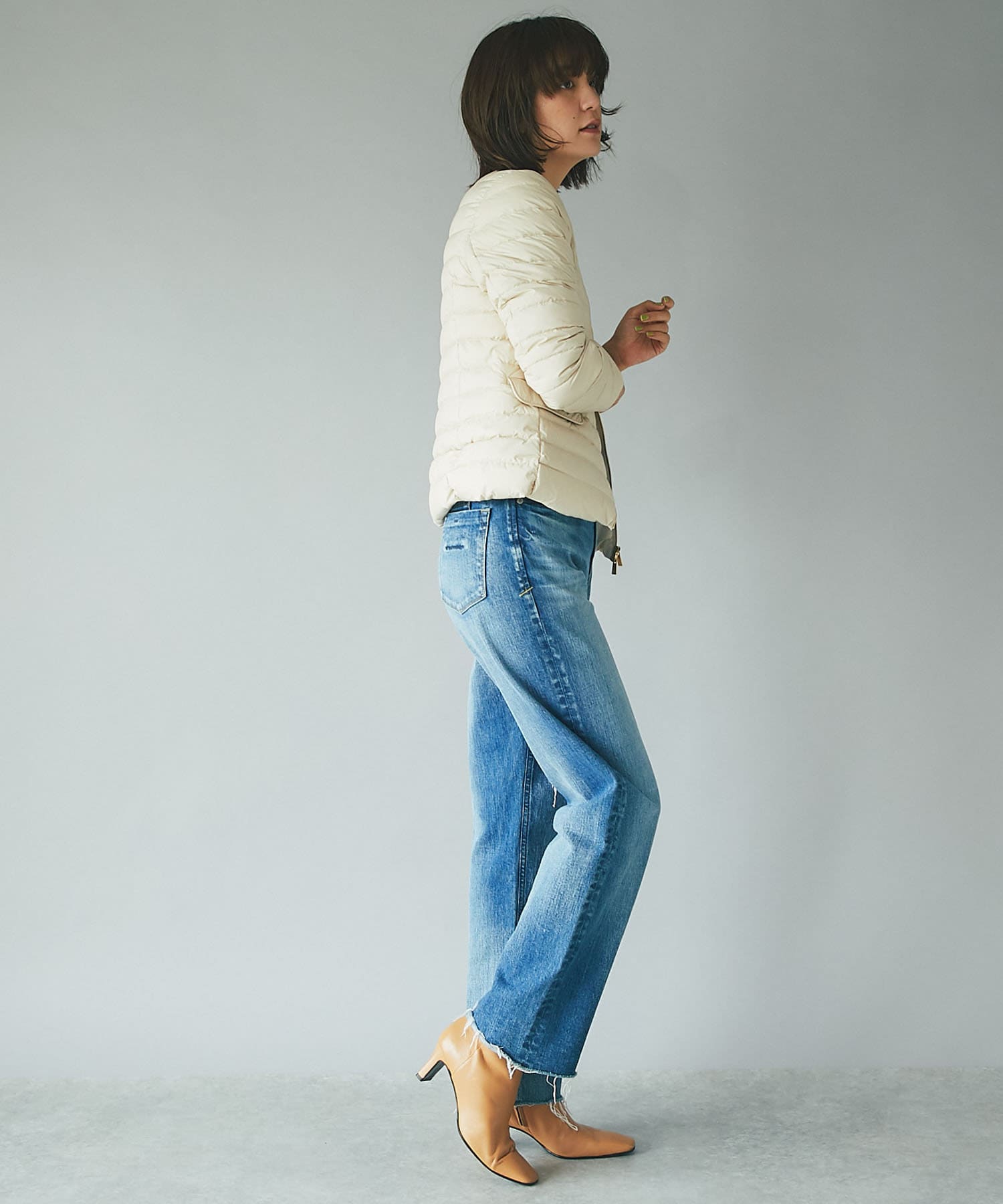 • 定番のデニムでもバランスよく着用でき、ワンピースやフレアスカートなどのエレガントな着こなしにもマッチする一枚です