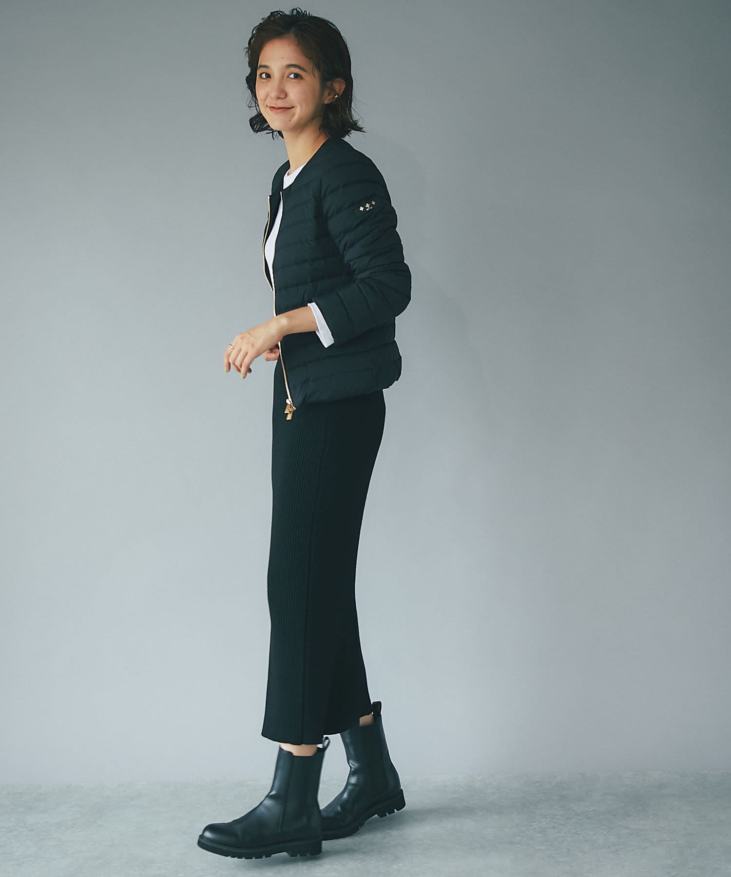 前後で大きく絞られたウエストがメリハリのある美しいシルエットを実現し、アウターとしても、インナーダウンとしても幅広いシーンで着用可能となっております。