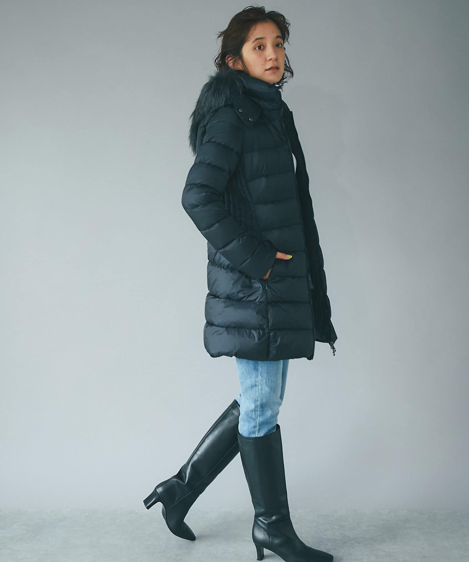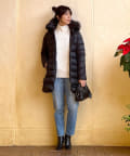 フード周りにはボリュームのあるファーをあしらい、華やかな印象に。
