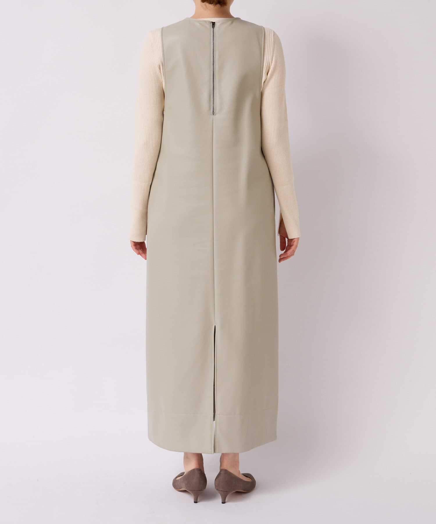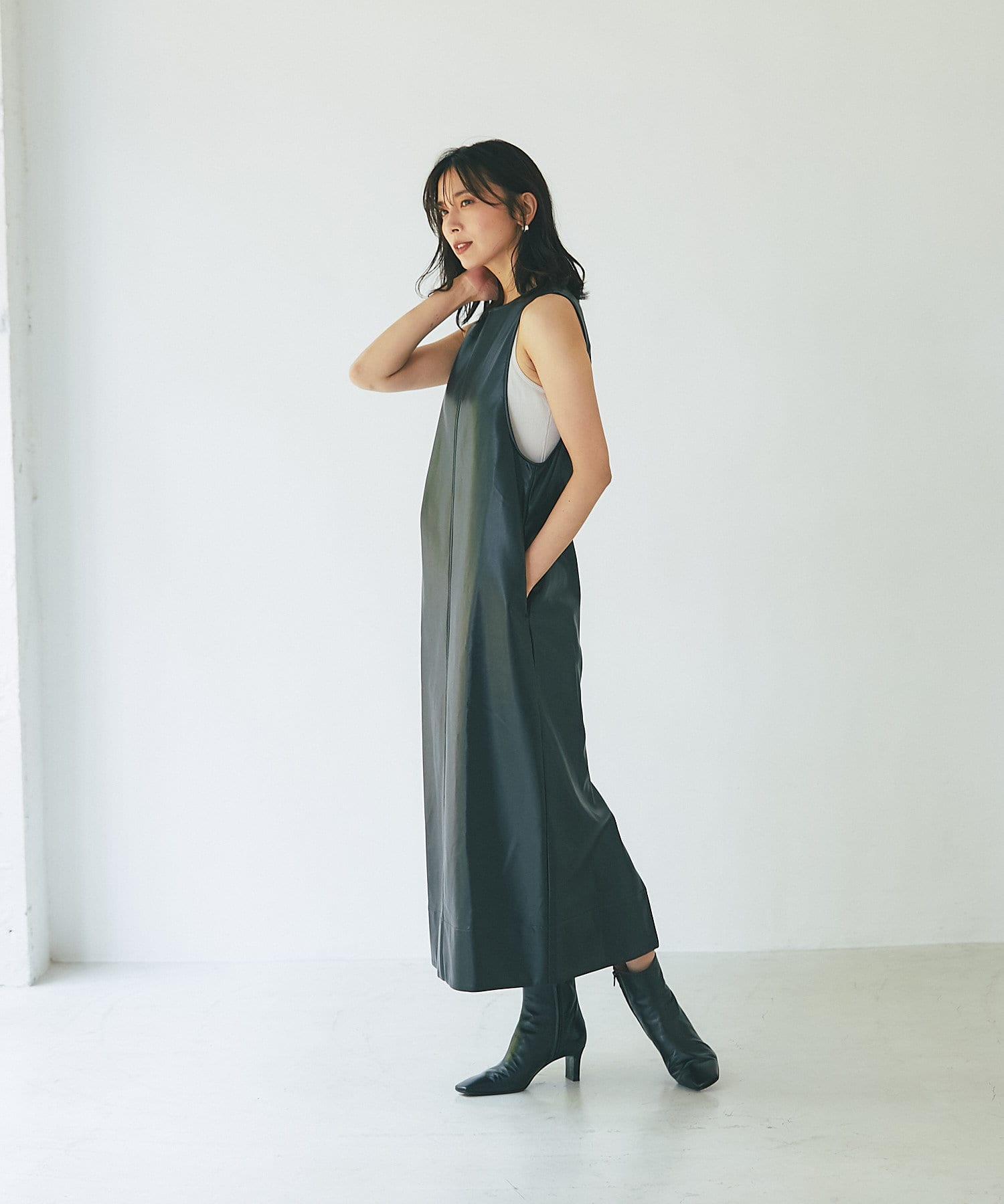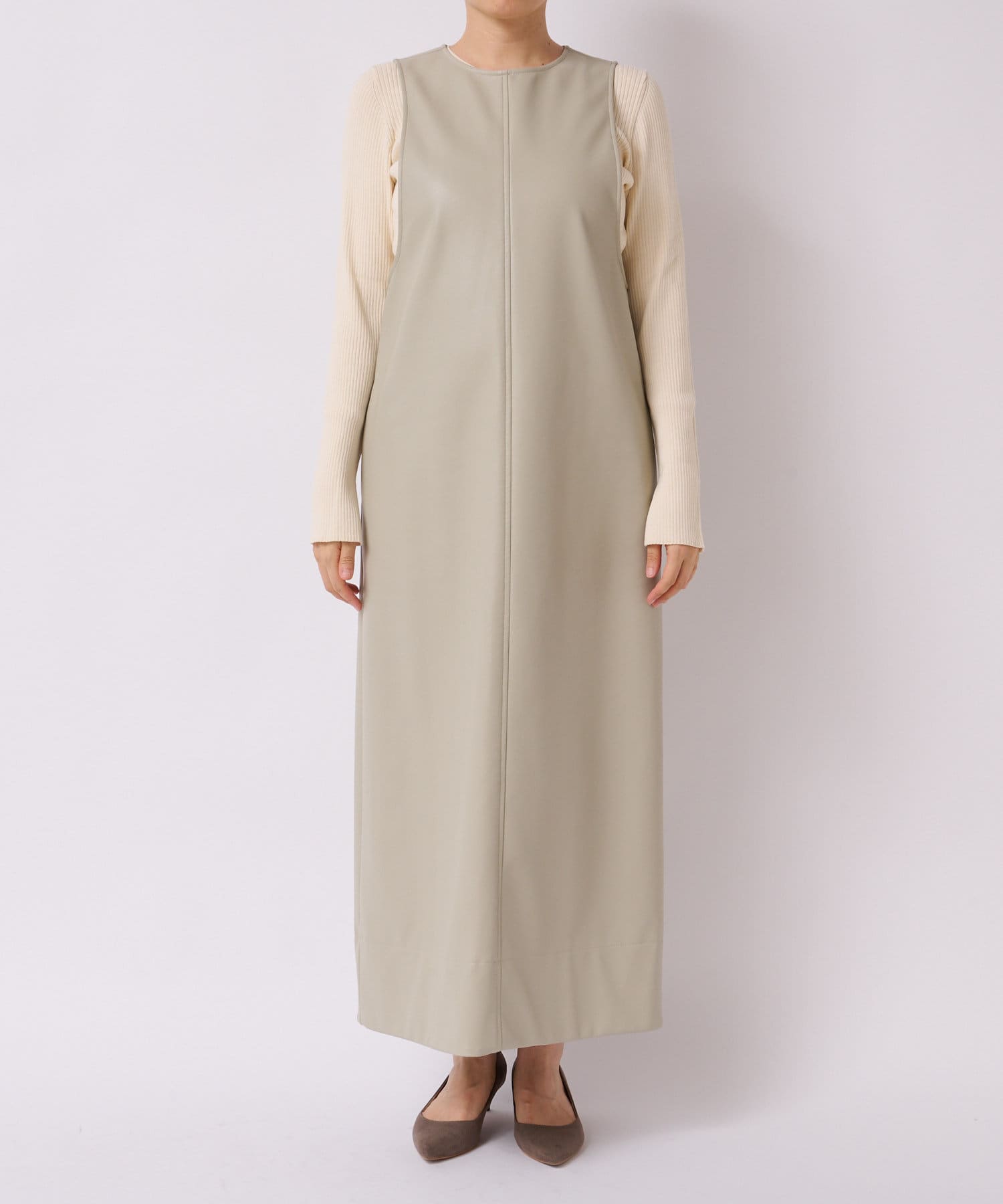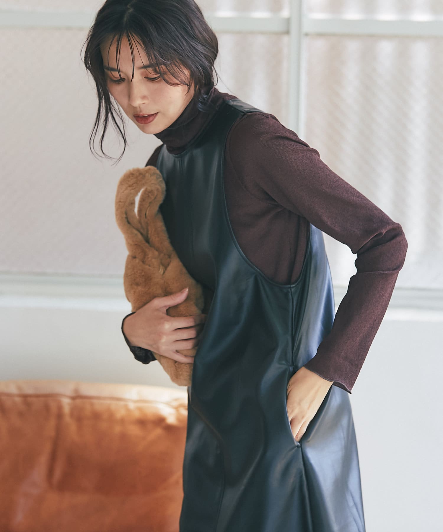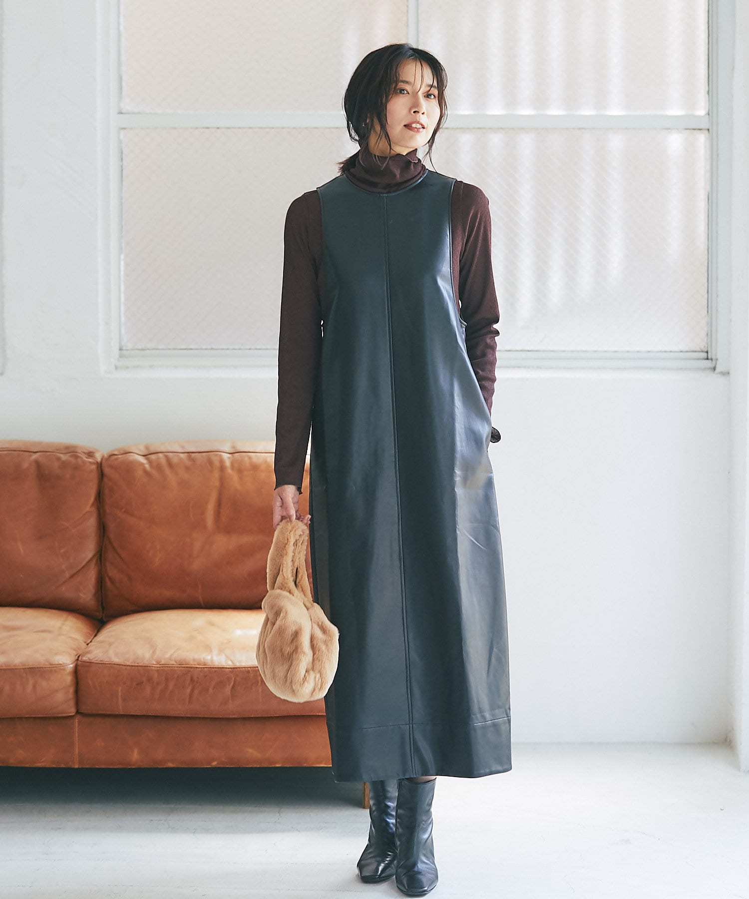 リアルレザーのような柔らかくしなやか素材で仕立てたエコレザーワンピース。