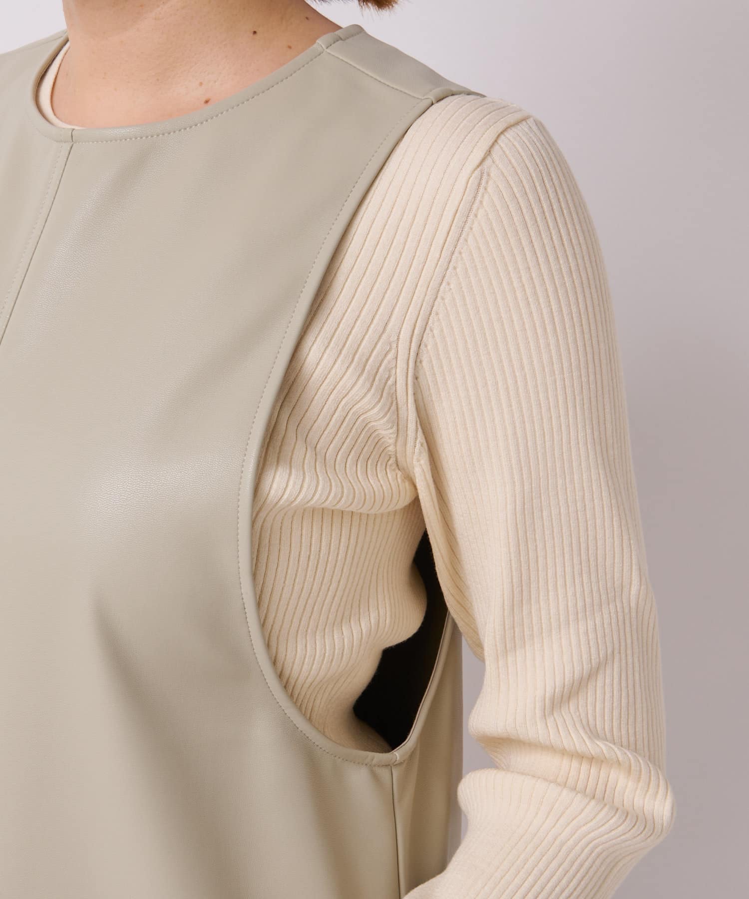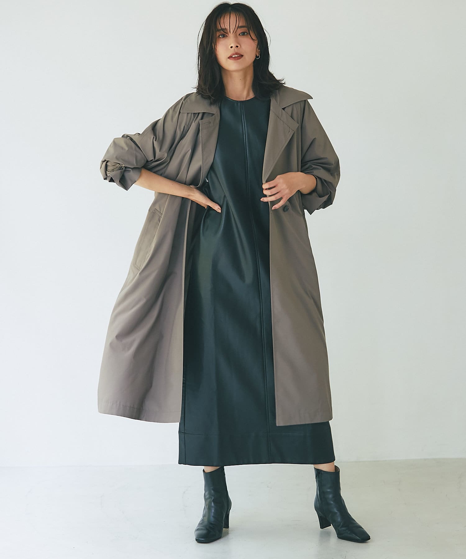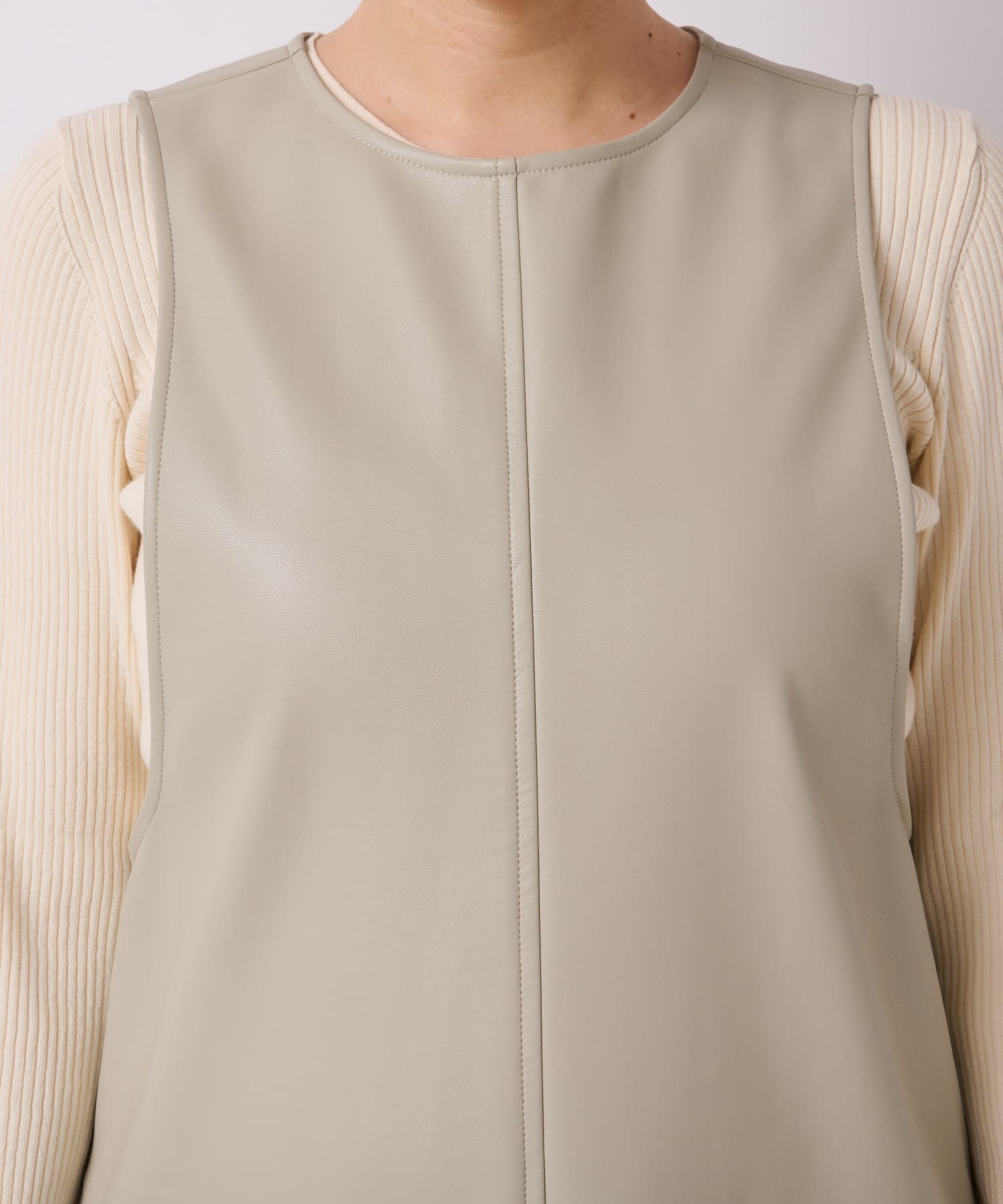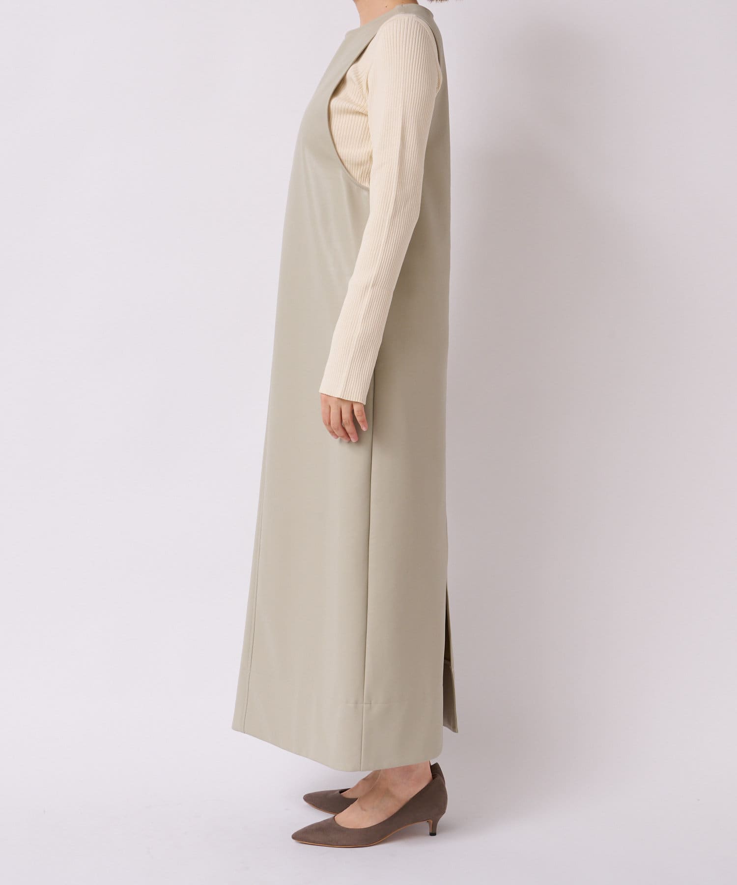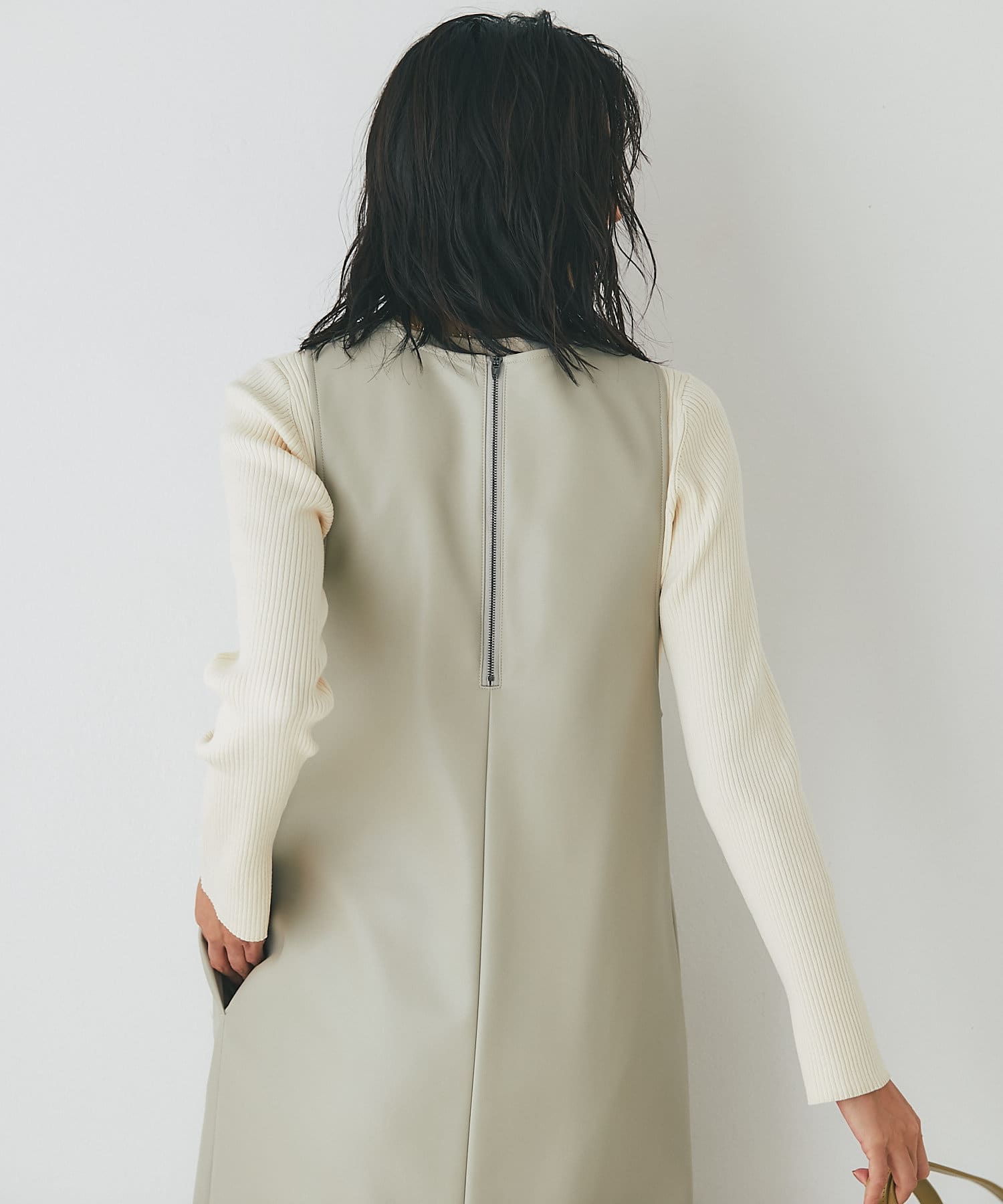 リアルレザーのような柔らかくしなやか素材で仕立てたエコレザーワンピース。