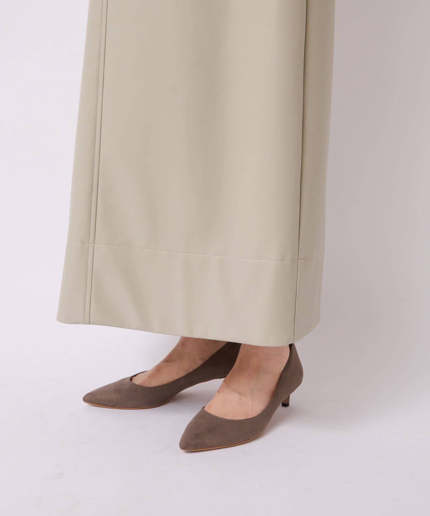 詰まった首元とややゆとりのあるIラインシルエットは程よく女性らしさを演出し、センターシームでより細見え効果を実現。