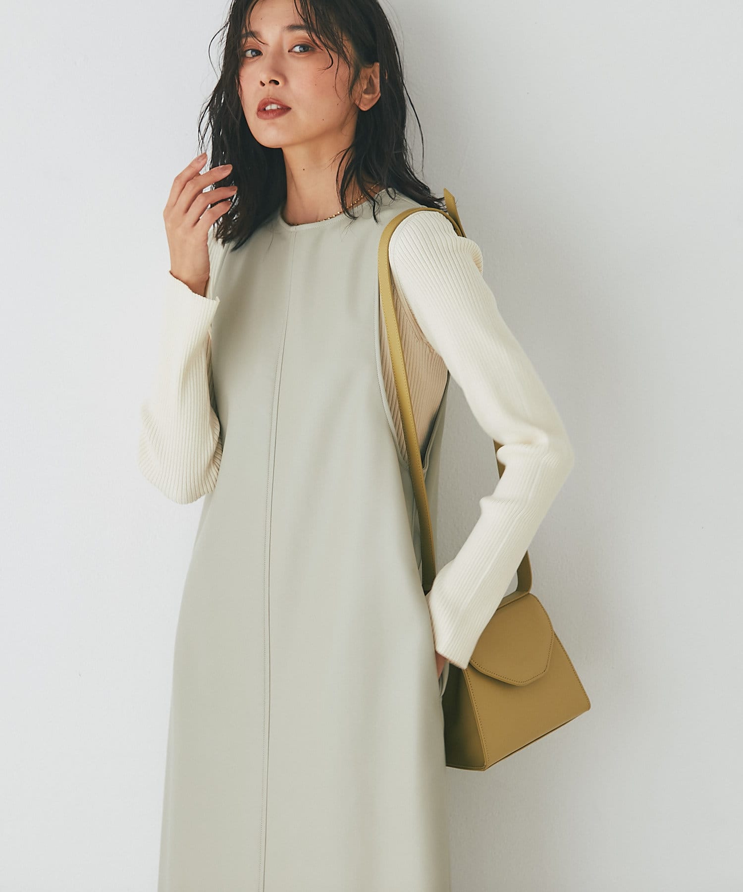 また、大きく開いたアームホールはロング丈でも抜け感があり、晩夏にはノースリーブ、秋冬にはニットやロンTなどを合わせる事で様々なコーディネートに相性良く合わせられます。