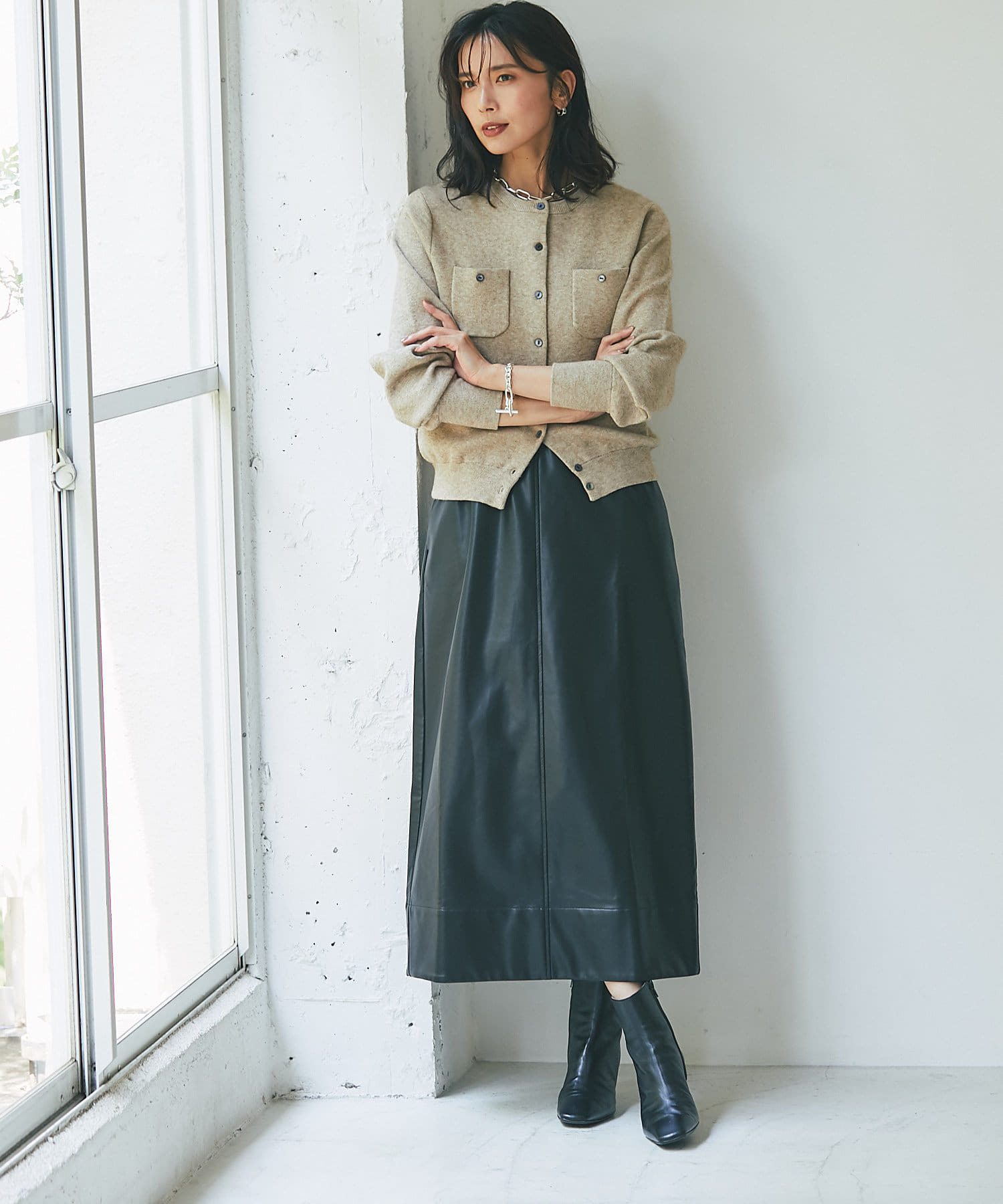 秋冬本番は細身なニットやシアートップスなどでスマートに合わせるとコートインナーにもしやすく、イベントが増える時期にぴったりのコーディネートになります。