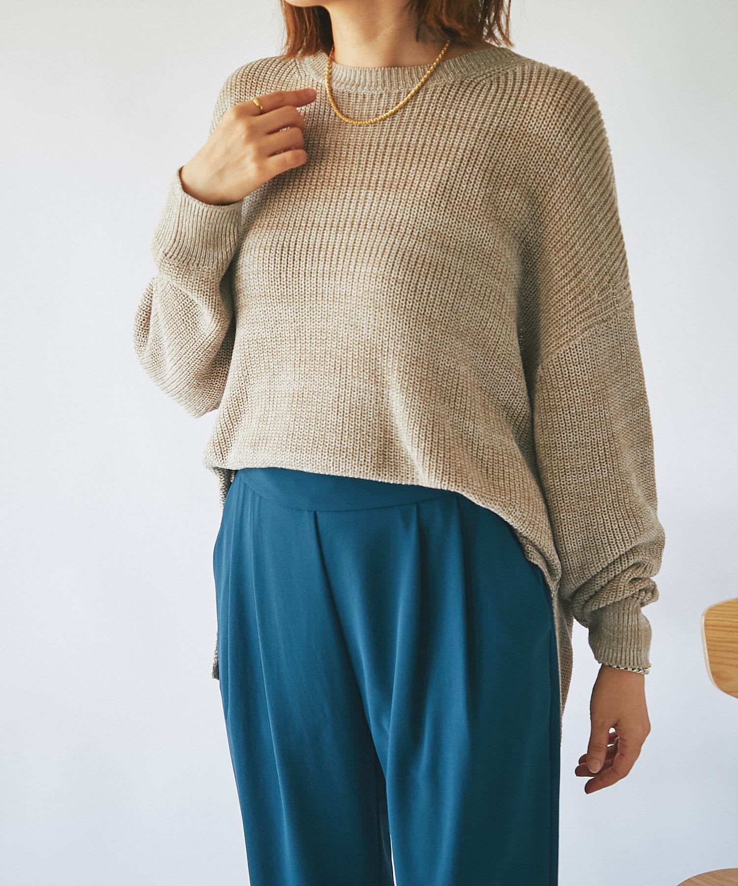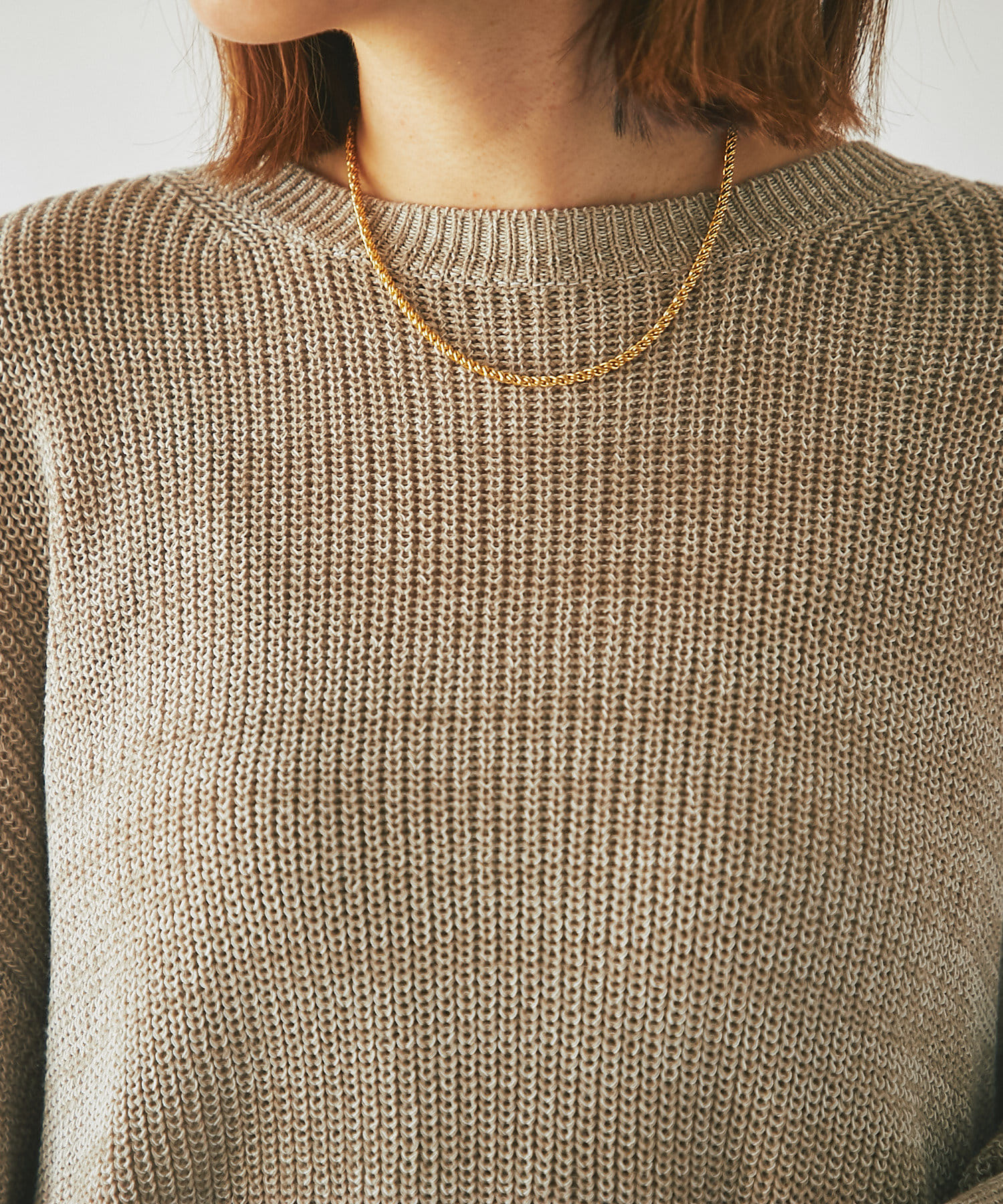 またVネックやハイネックなど幅広いネックデザインと相性の良い長さになっております。